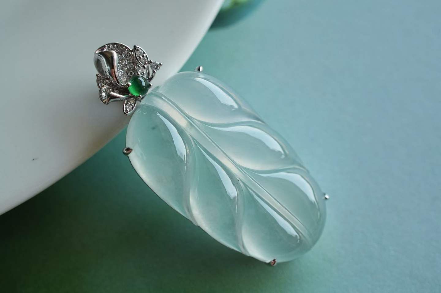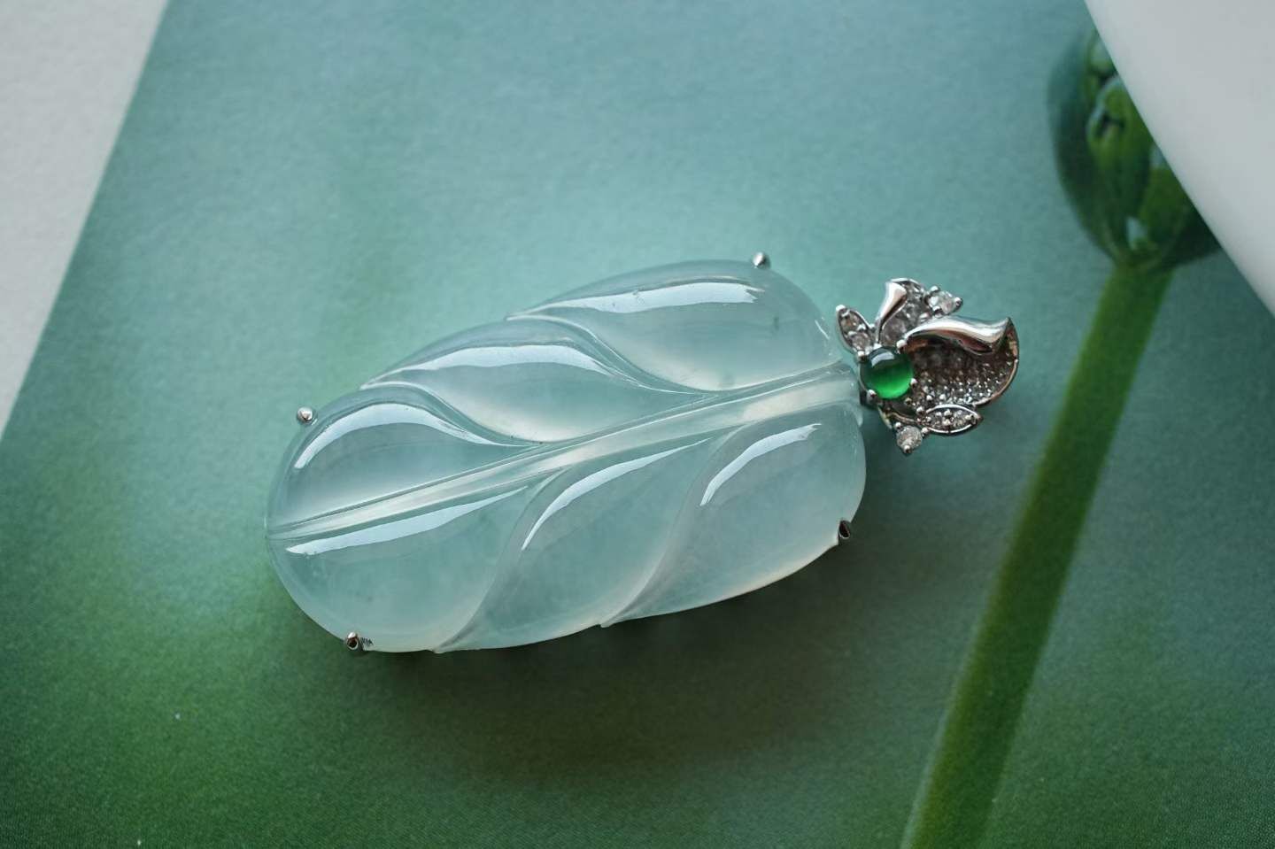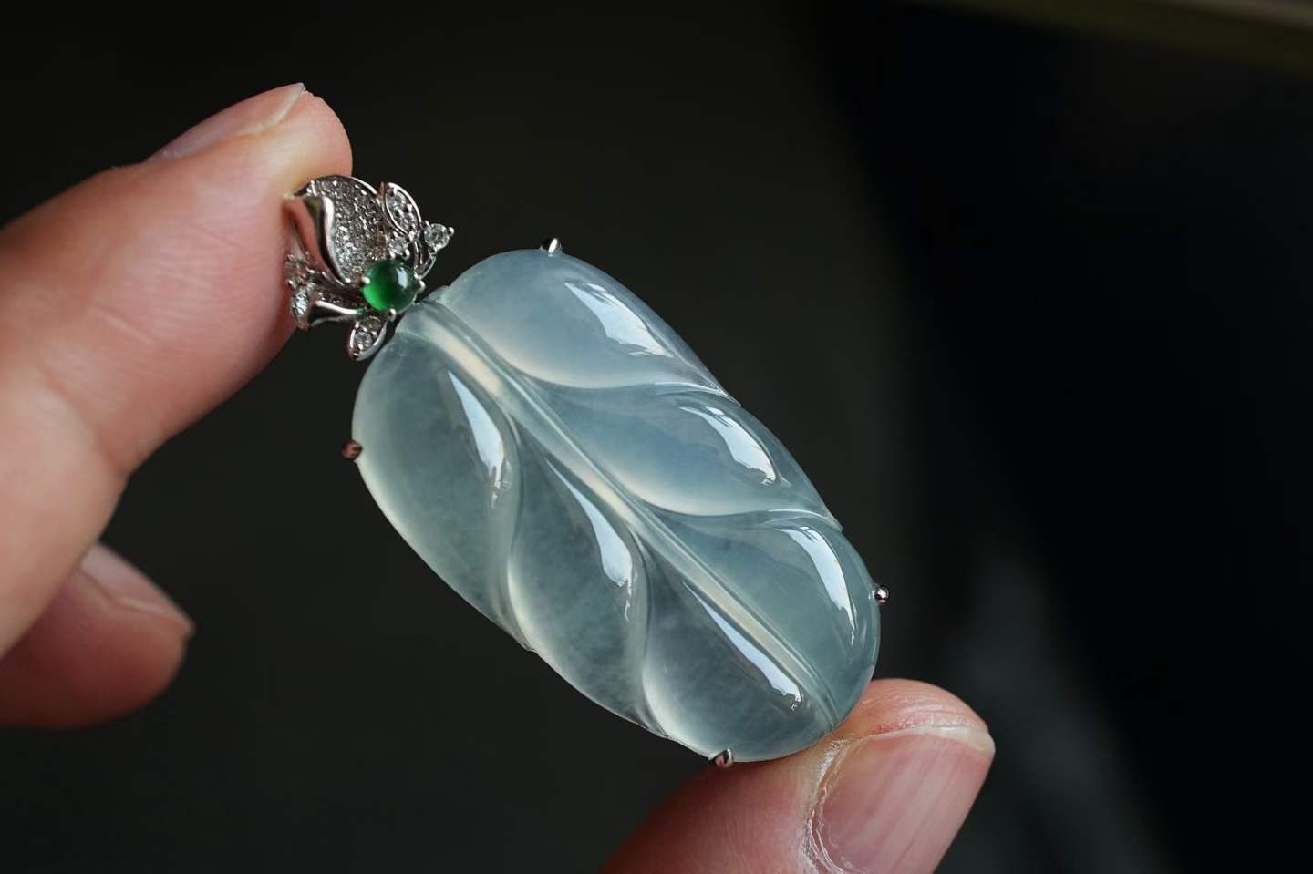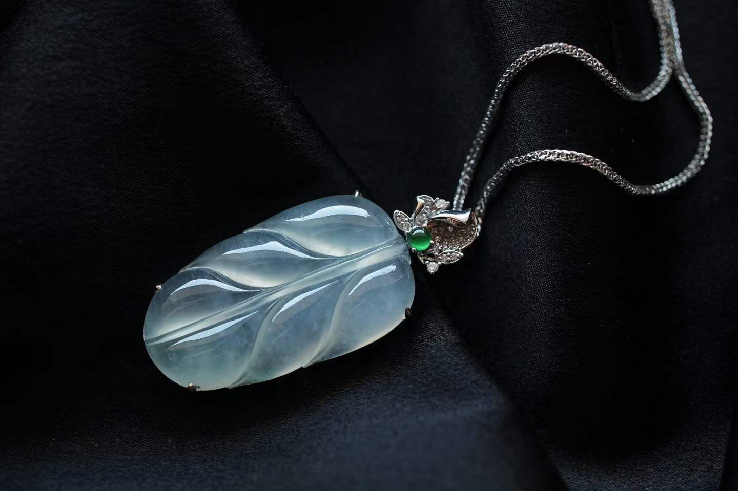 • 翡翠冰種葉子吊墜,天然翡翠A玉, 緬甸玉, Jade, Jadeite