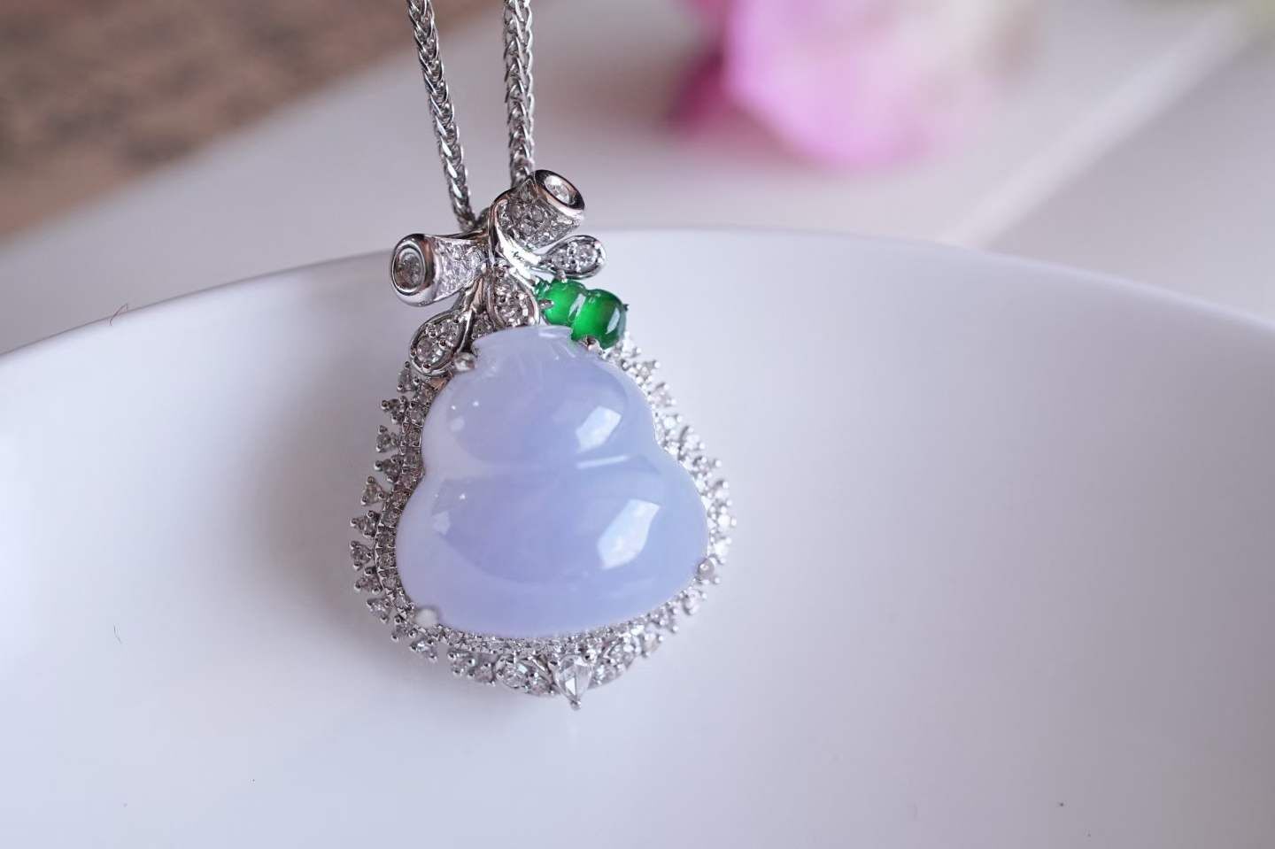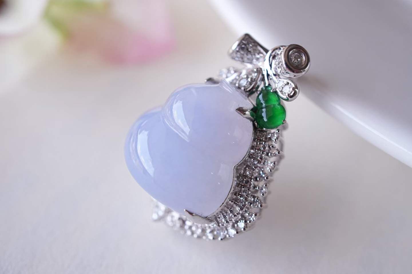 • 翡翠冰紫羅蘭葫蘆吊墜,天然翡翠A玉, 緬甸玉, Jade, Jadeite