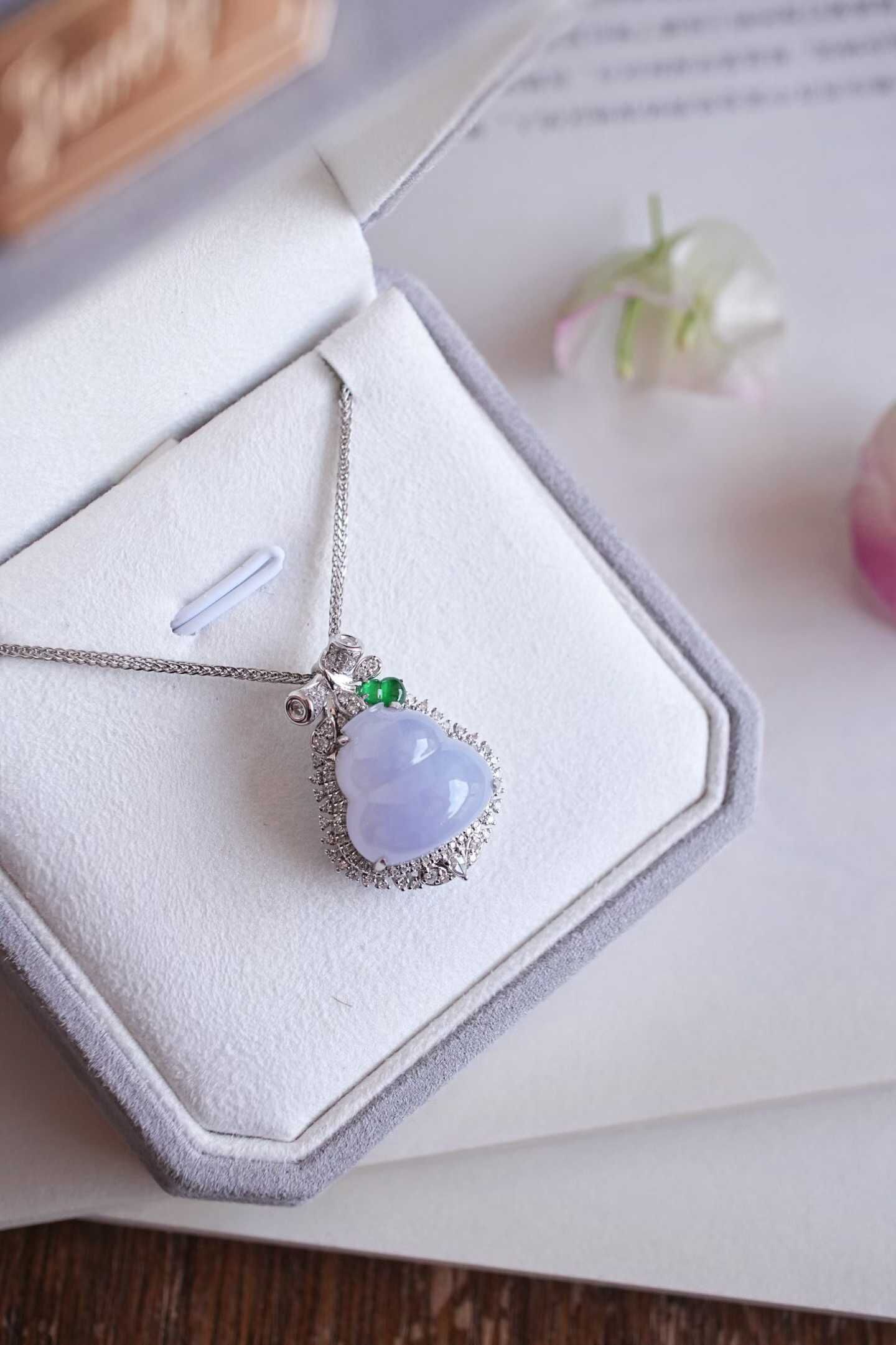 天然翡翠A玉,小胖“紫”來啦!紫氣東來,是哪位仙女的葫蘆呀。緬料老坑種冰紫羅蘭,飽滿圓潤的葫蘆,純天然的色,水汪汪的,太難得了!