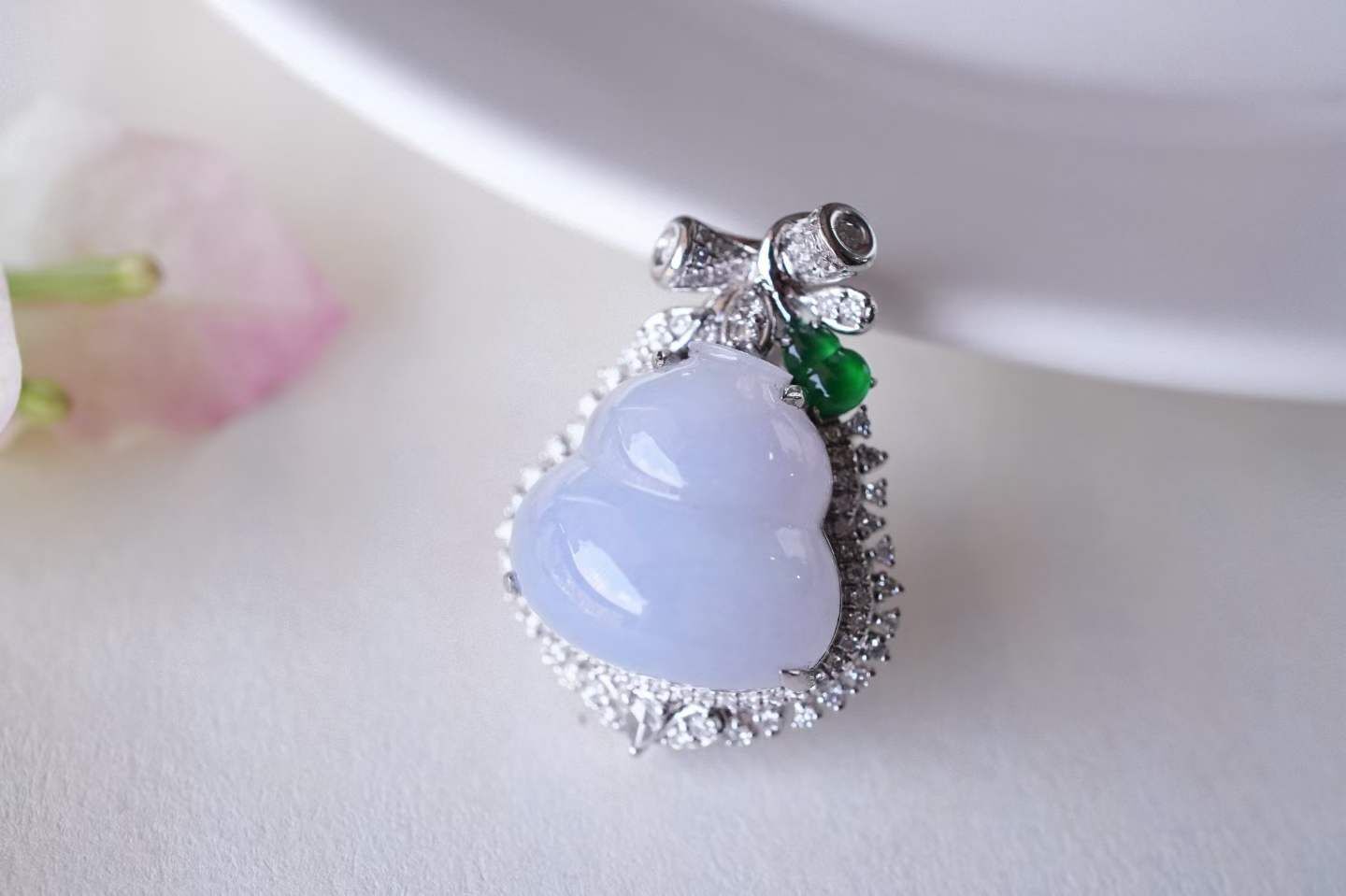 18K重金鑽石鑲嵌,點綴正陽綠小葫蘆,撞色設計超吸睛,精致貴氣,優雅又吉祥。