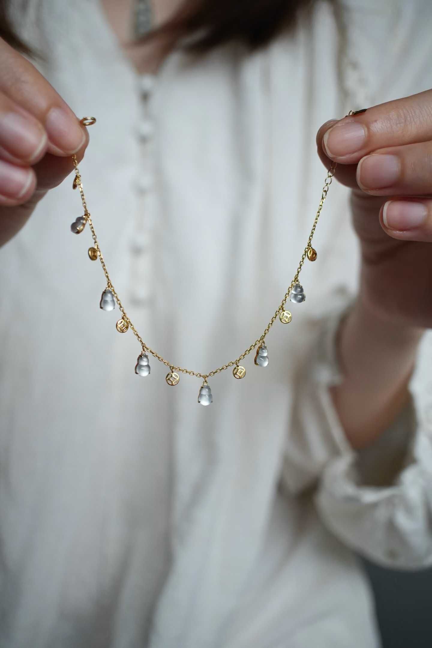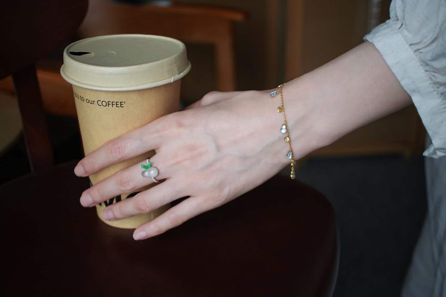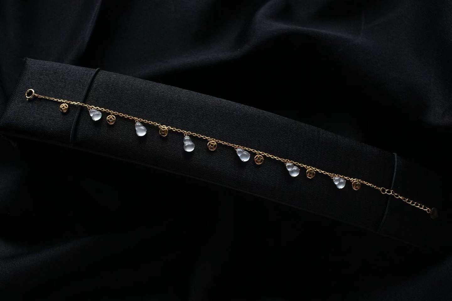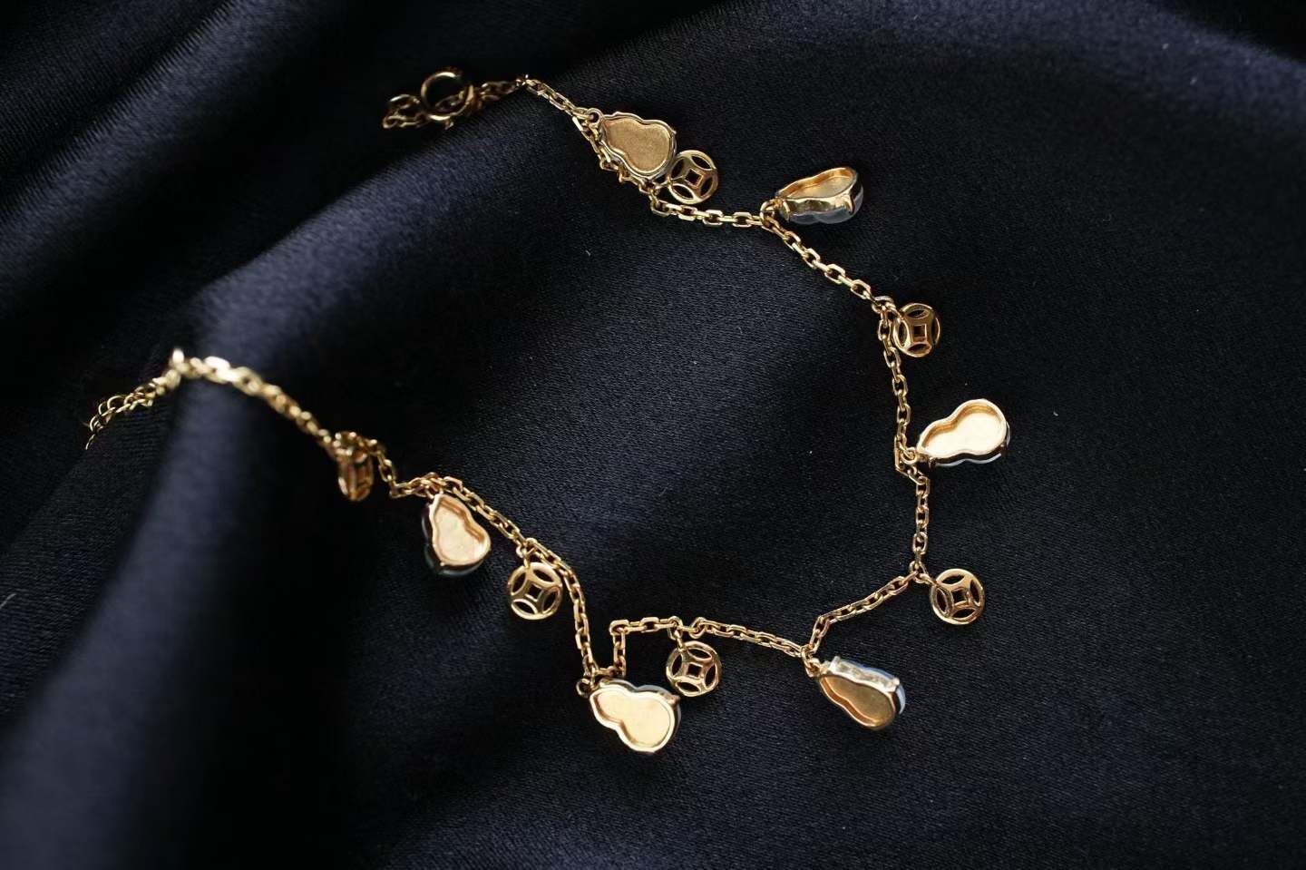18K重金鑲嵌,中間以古典銅錢銜接,寓意“福祿”,上手靈動精致。