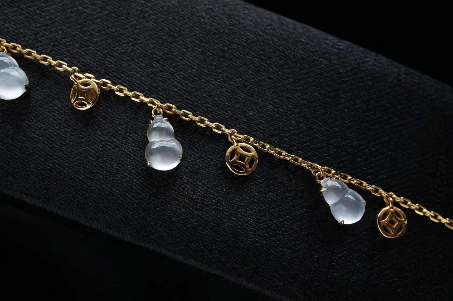 • 翡翠玻璃種葫蘆手鏈,天然翡翠A玉, 緬甸玉, Jade, Jadeite