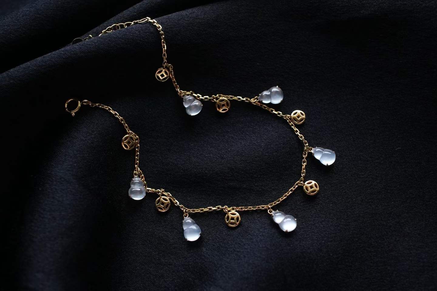 天然翡翠A玉,緬料,玻璃種翡翠葫蘆手鏈,每一顆葫蘆都在發光的即視感,起鋼光,靈氣滿滿。