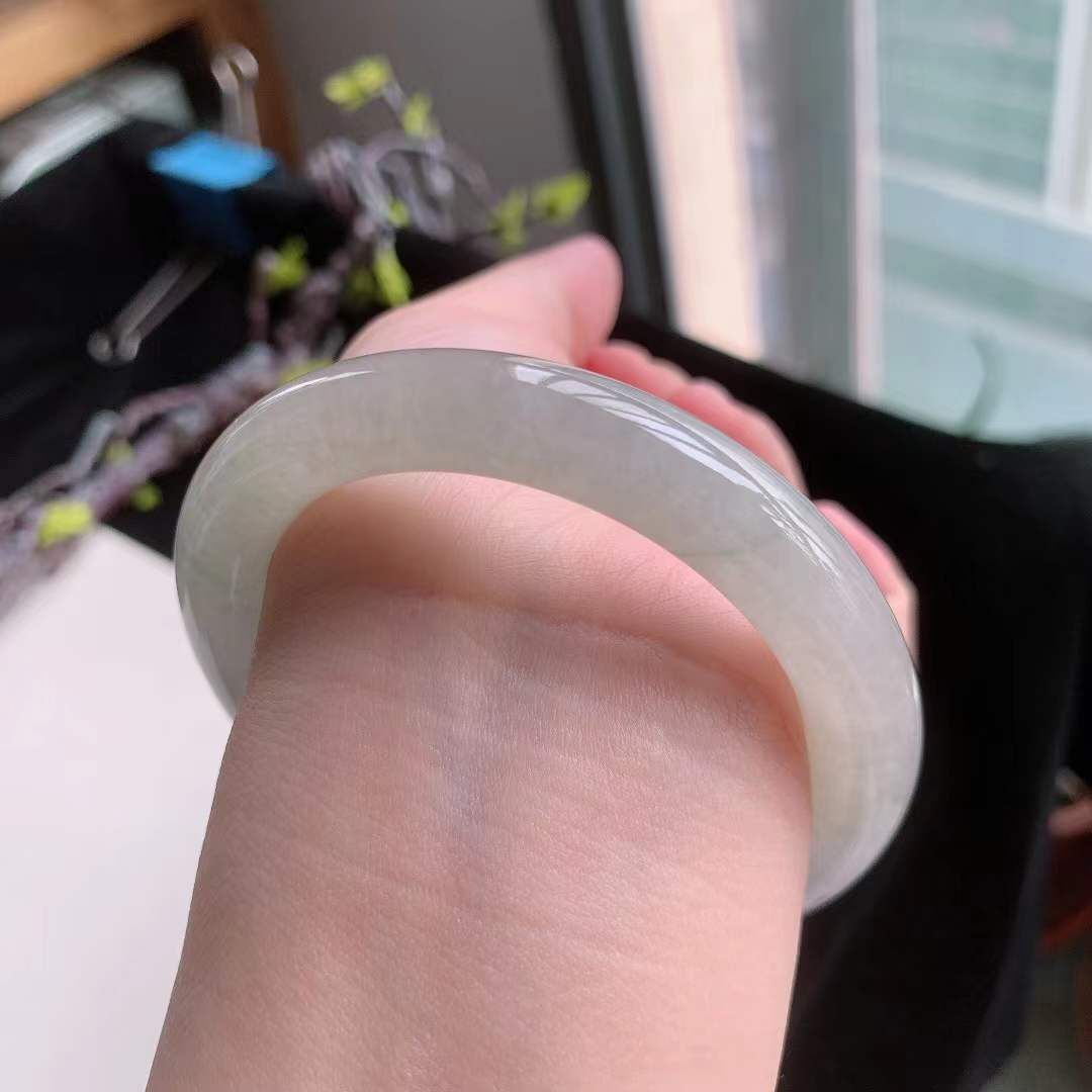 • 冰種帶底色翡翠圓條手鐲,天然翡翠A玉, 緬甸玉, Jade, Jadeite