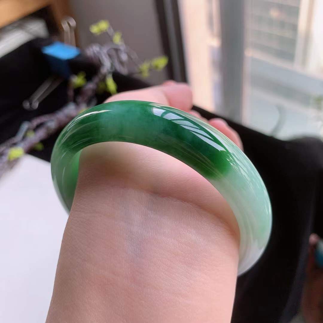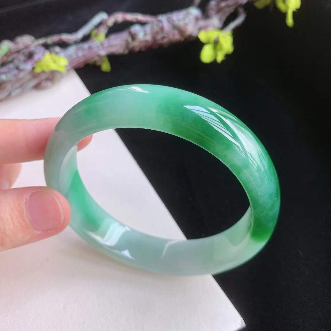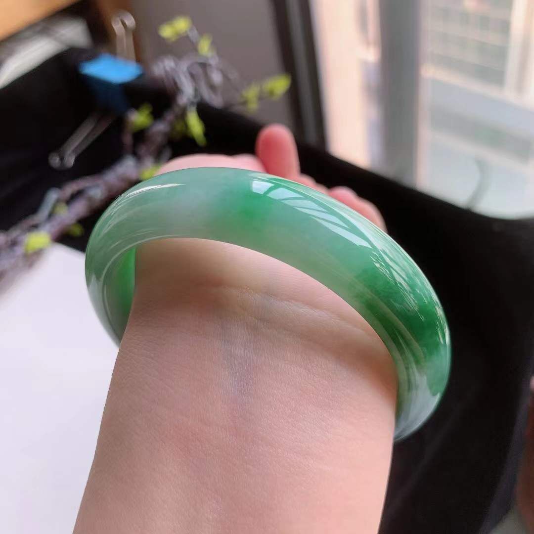 • 冰種膠潤飄陽綠翡翠正圈手鐲,天然翡翠A玉, 緬甸玉, Jade, Jadeite
