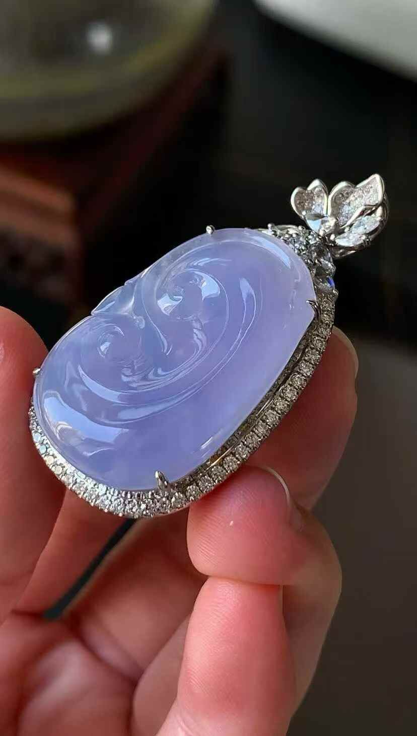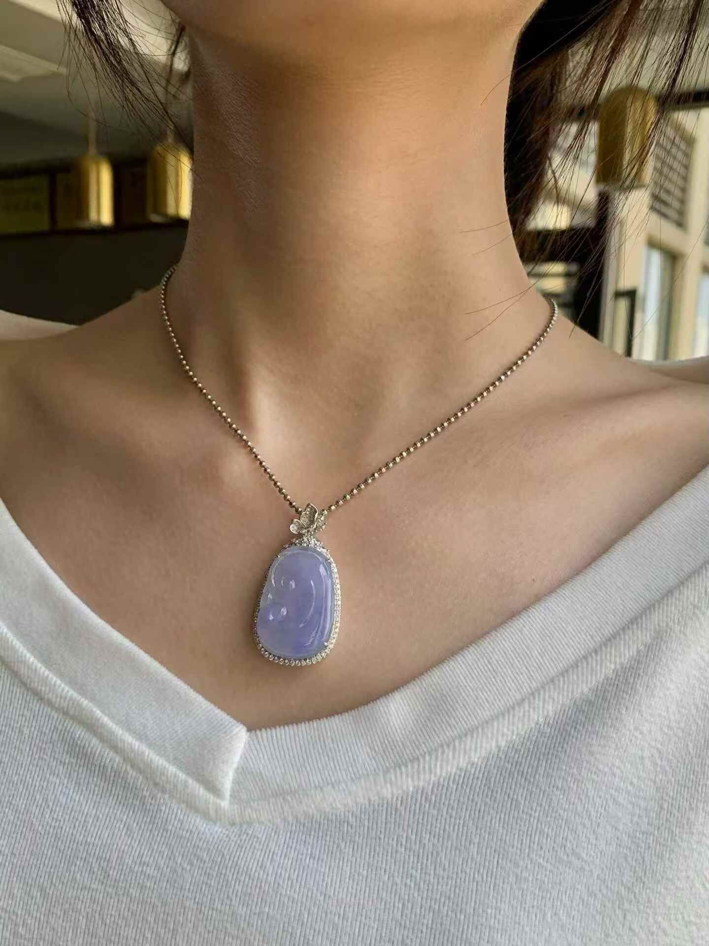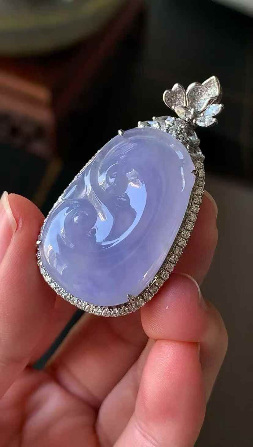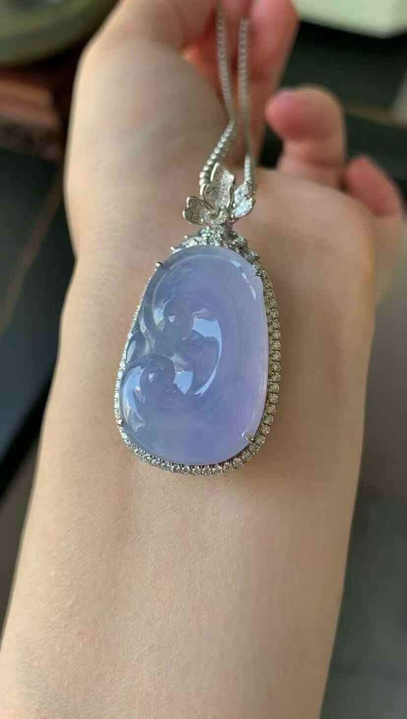 • 翡翠紫羅蘭如意吊墜,天然翡翠A玉, 緬甸玉, Jade, Jadeite