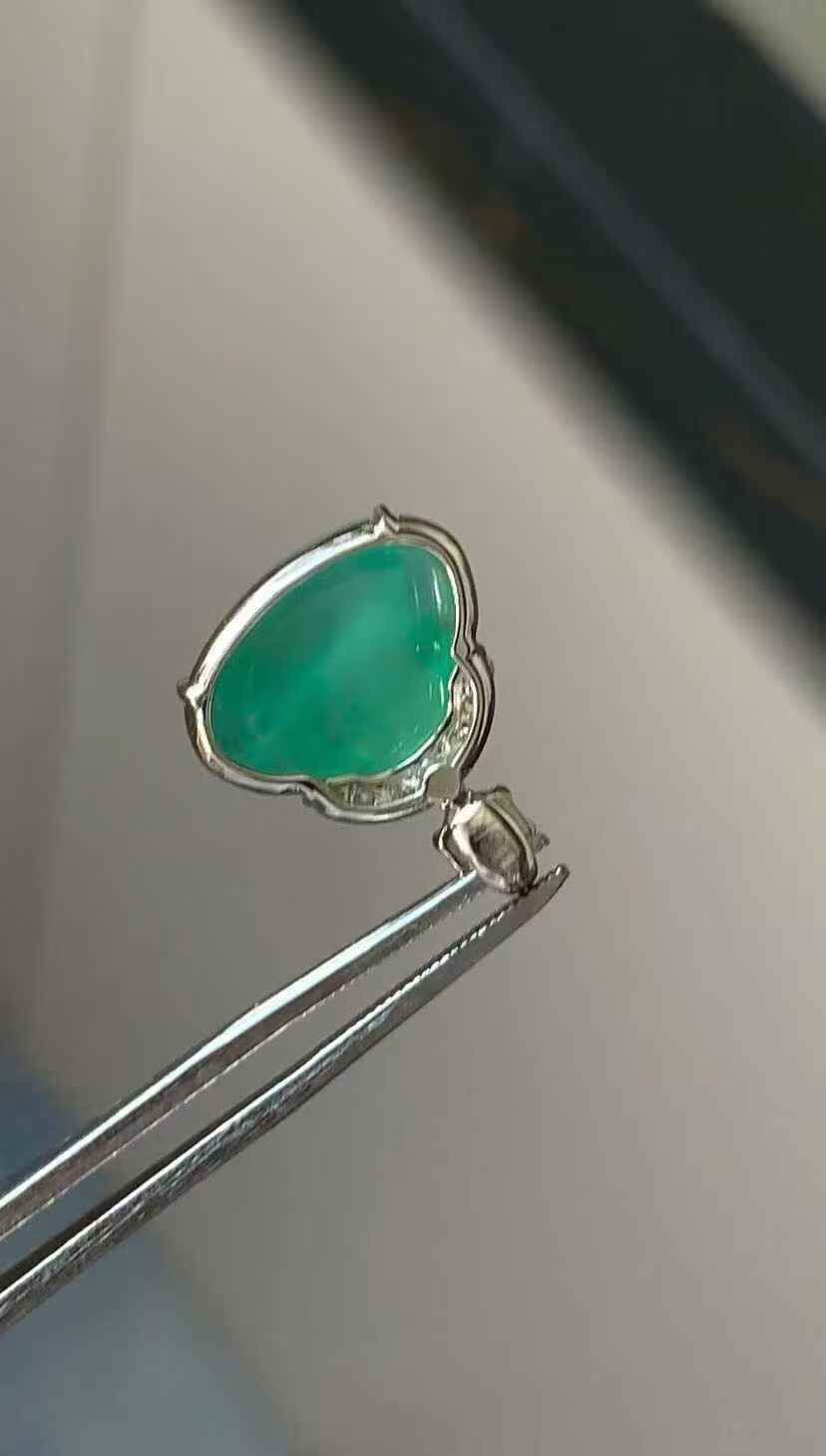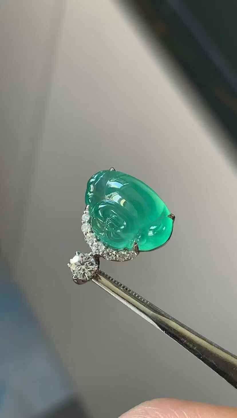 天然翡翠A玉,晴水清新淡雅,底細膩透亮,18K金鑲嵌。