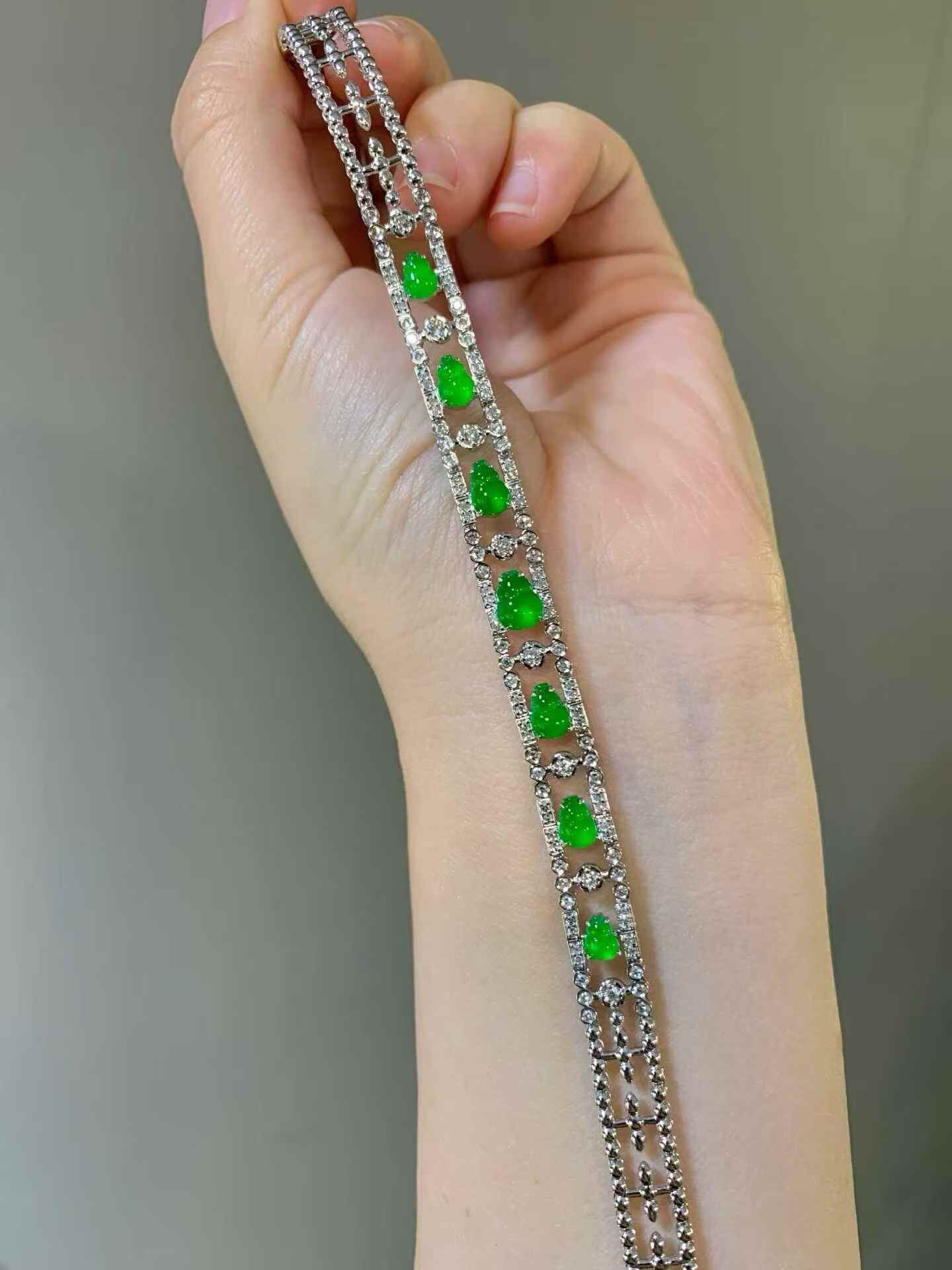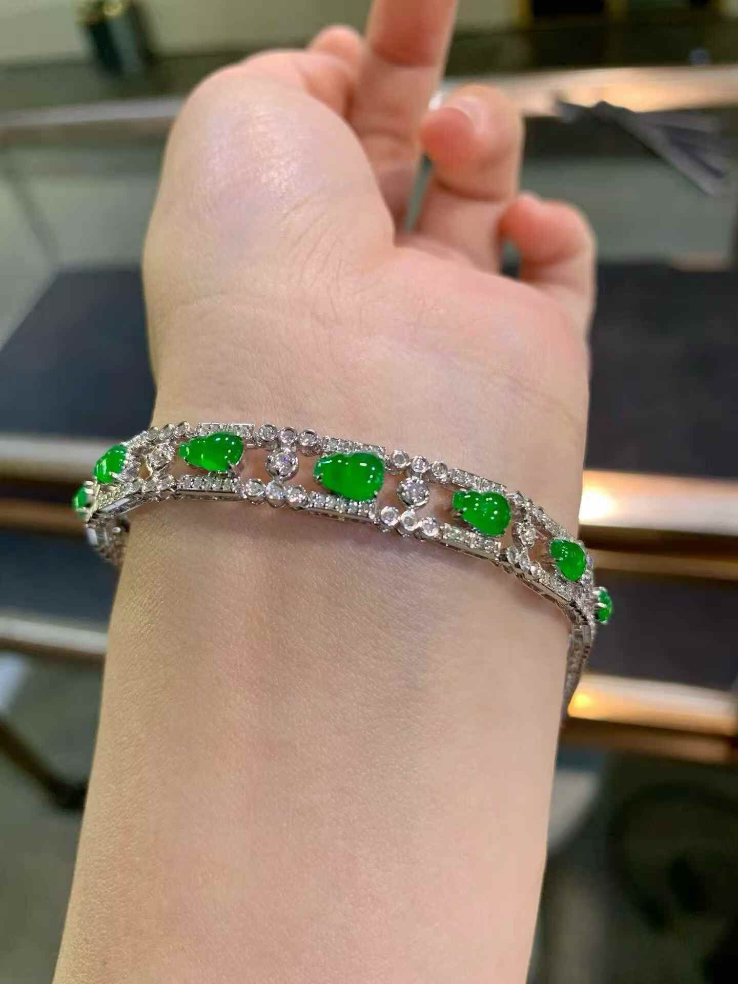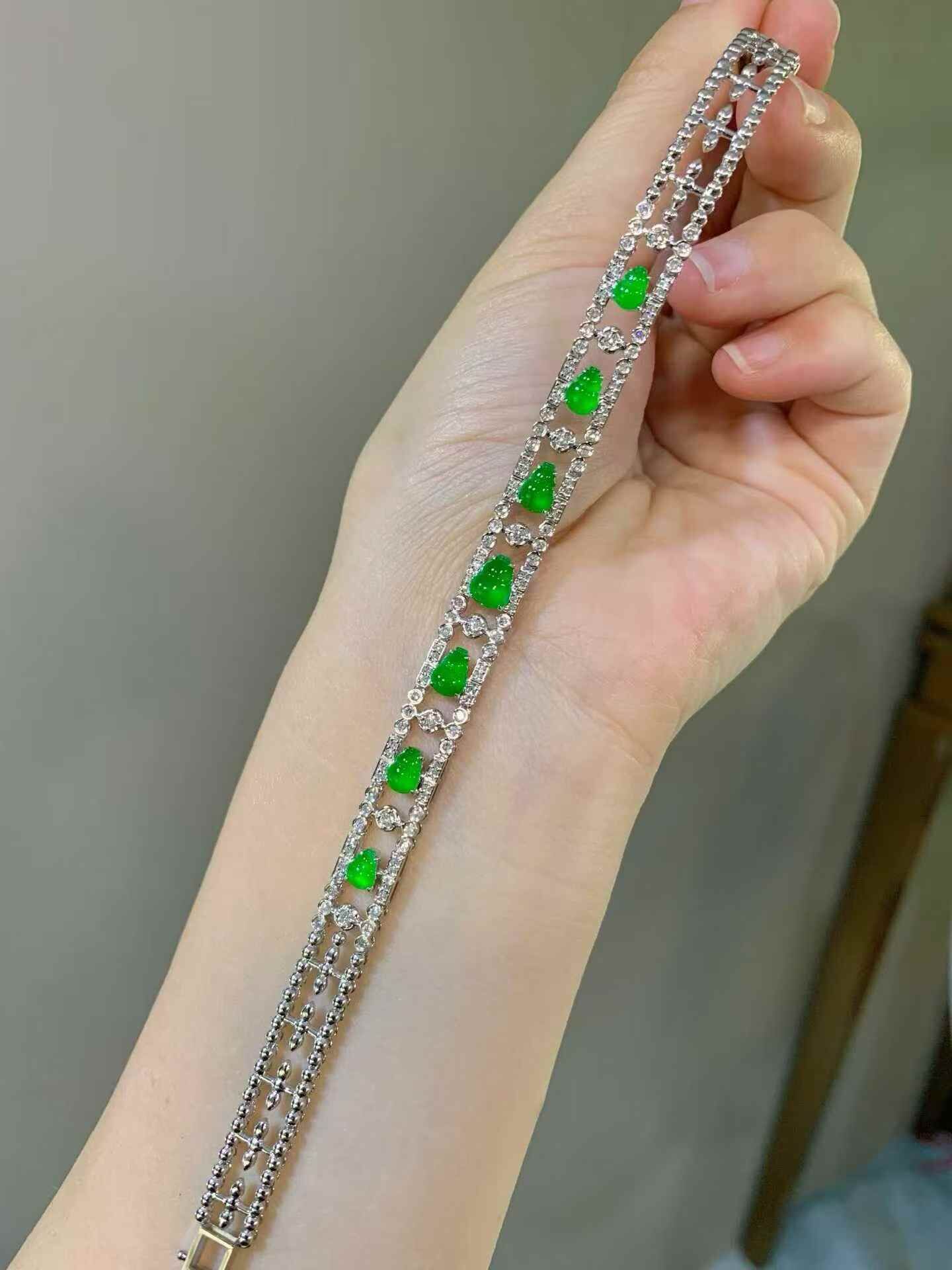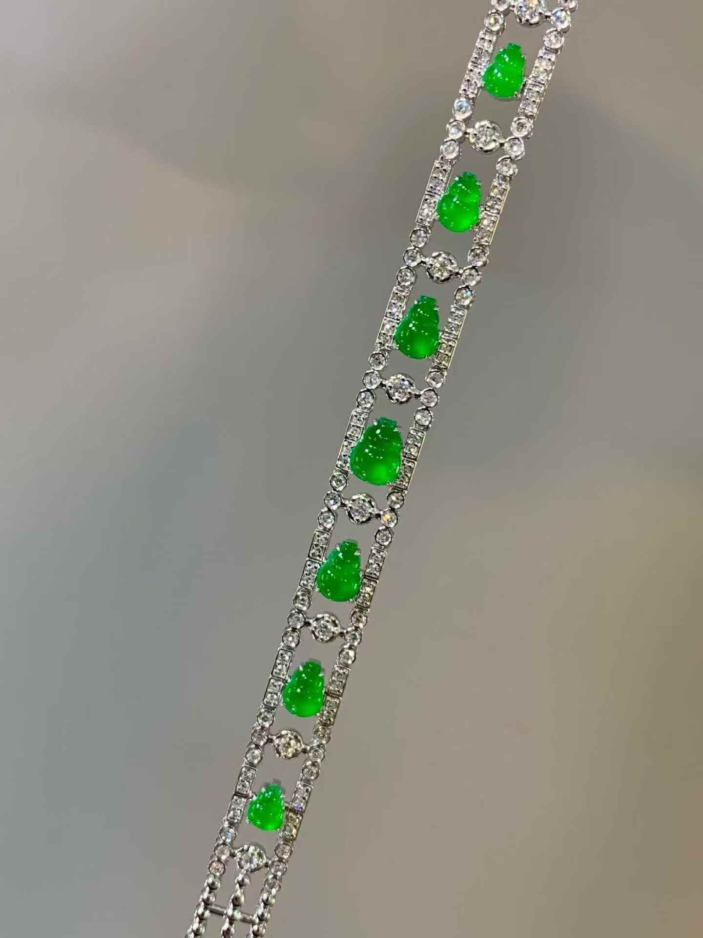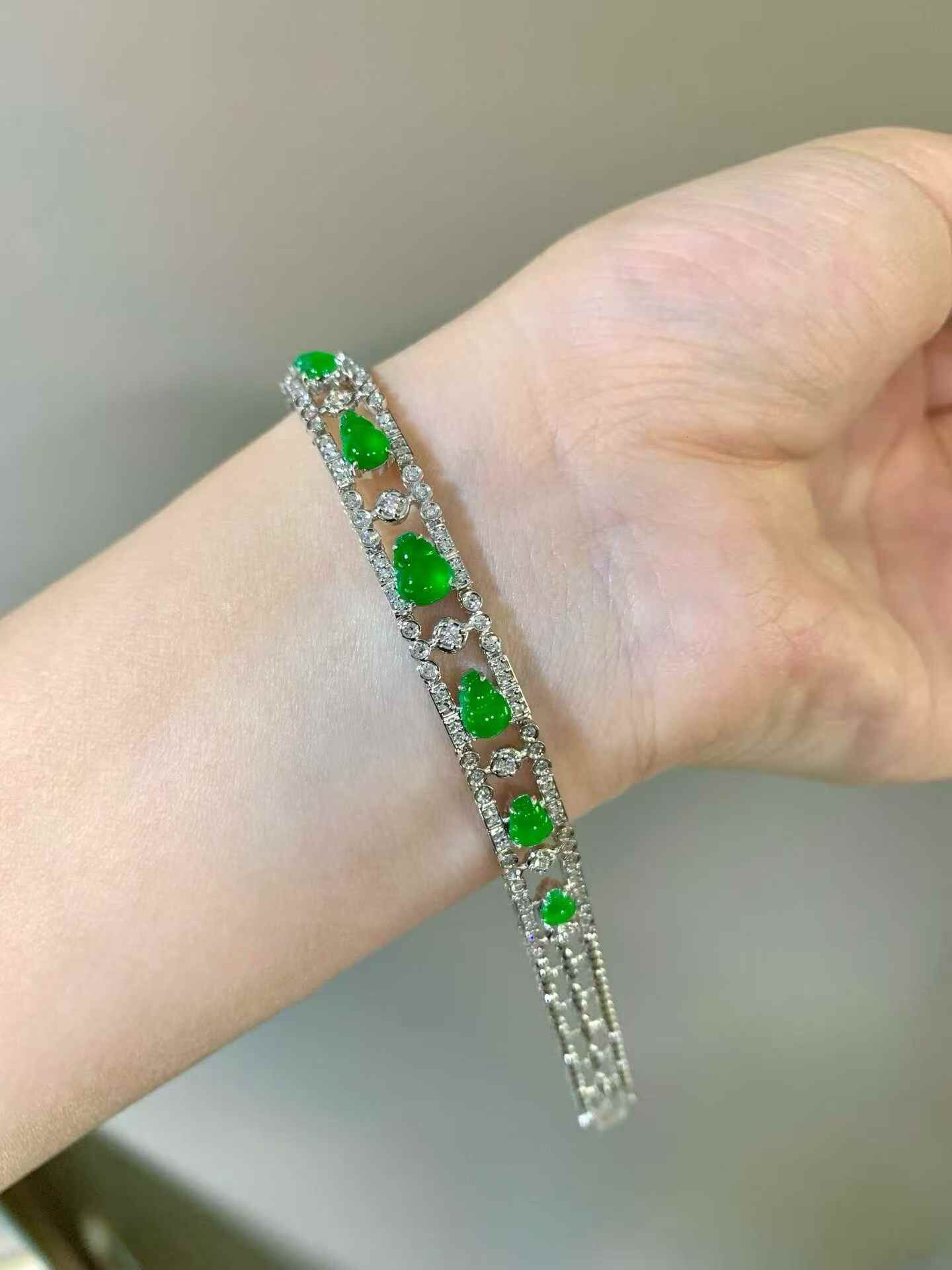 • 翡翠葫蘆手鏈,天然翡翠A玉, 緬甸玉, Jade, Jadeite