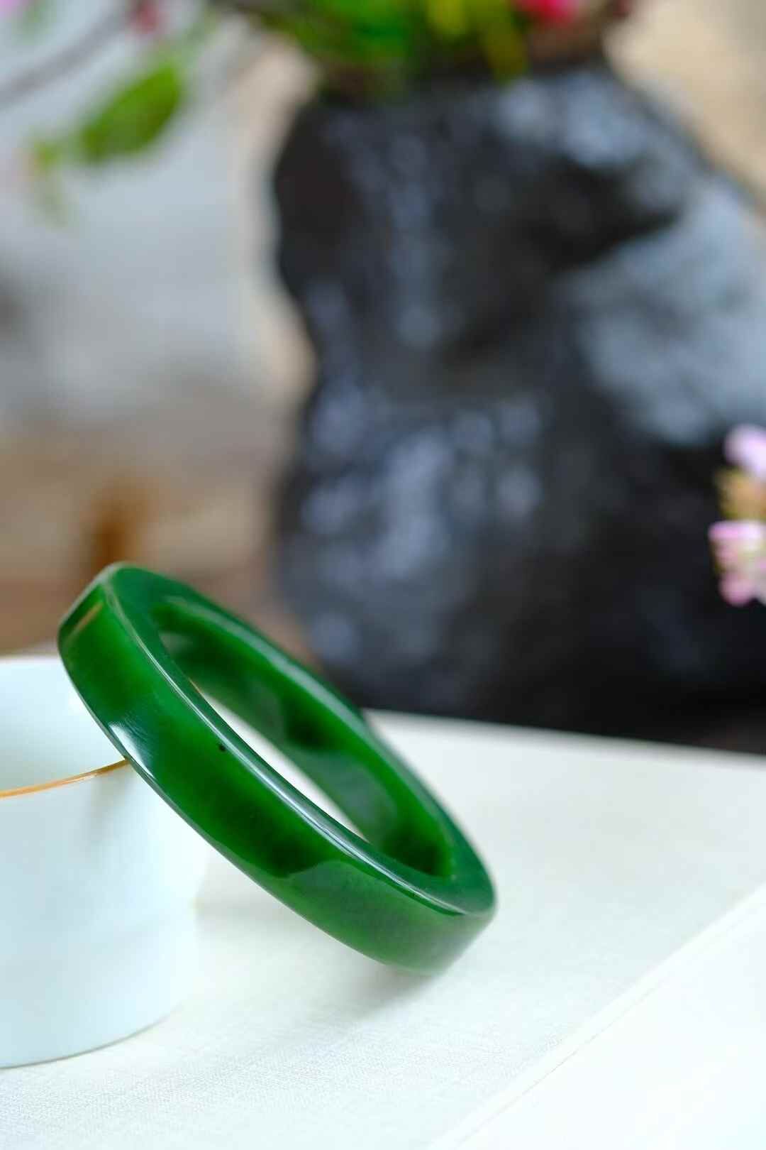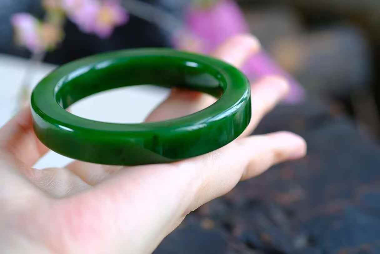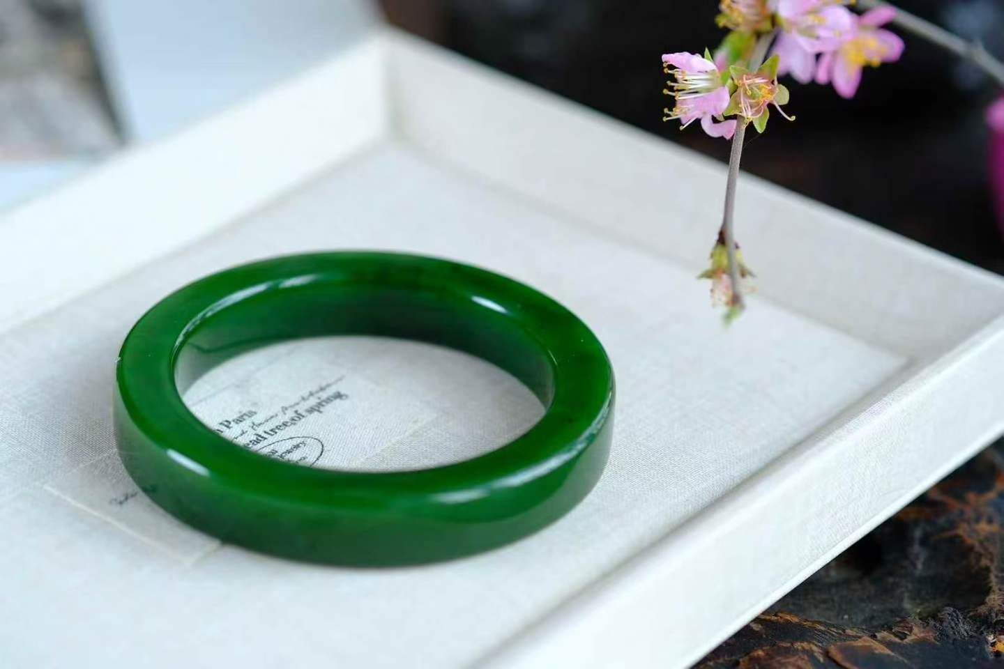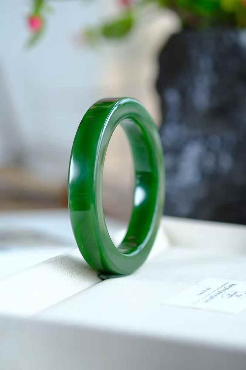 玉質細膩得像凝脂,綠色是那種高級的沉潤碧綠,上手溫溫的。戴在腕間瞬間有了東方韻味,歲月靜好的感覺這不就來了嘛!