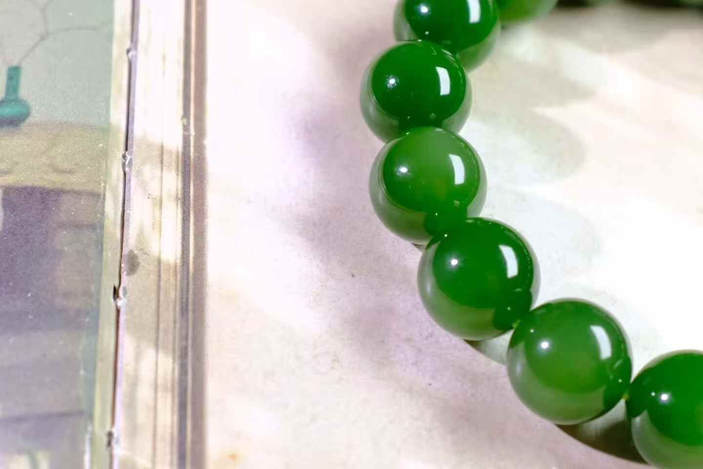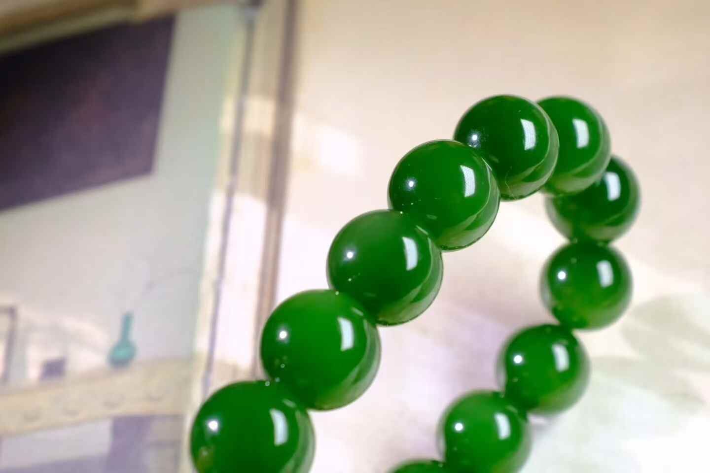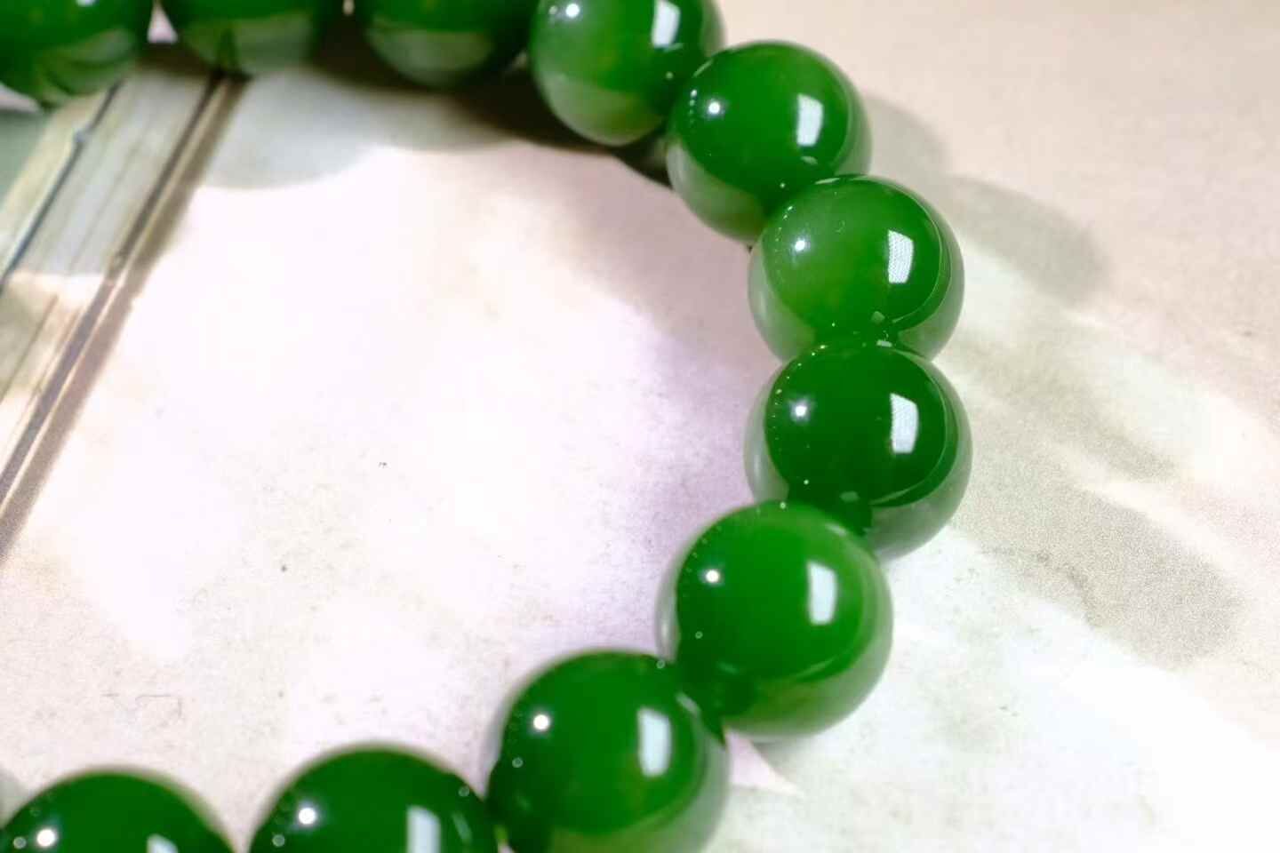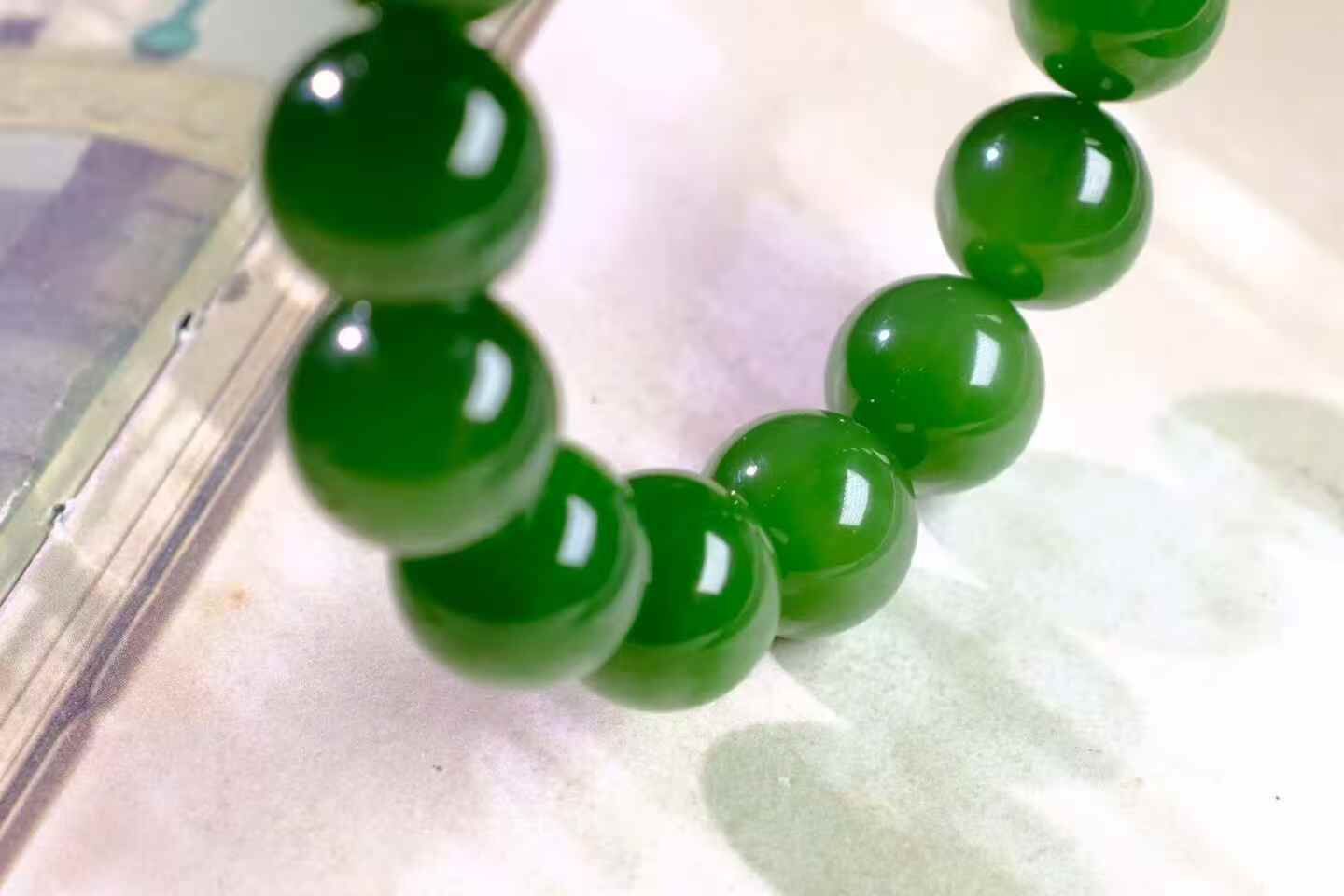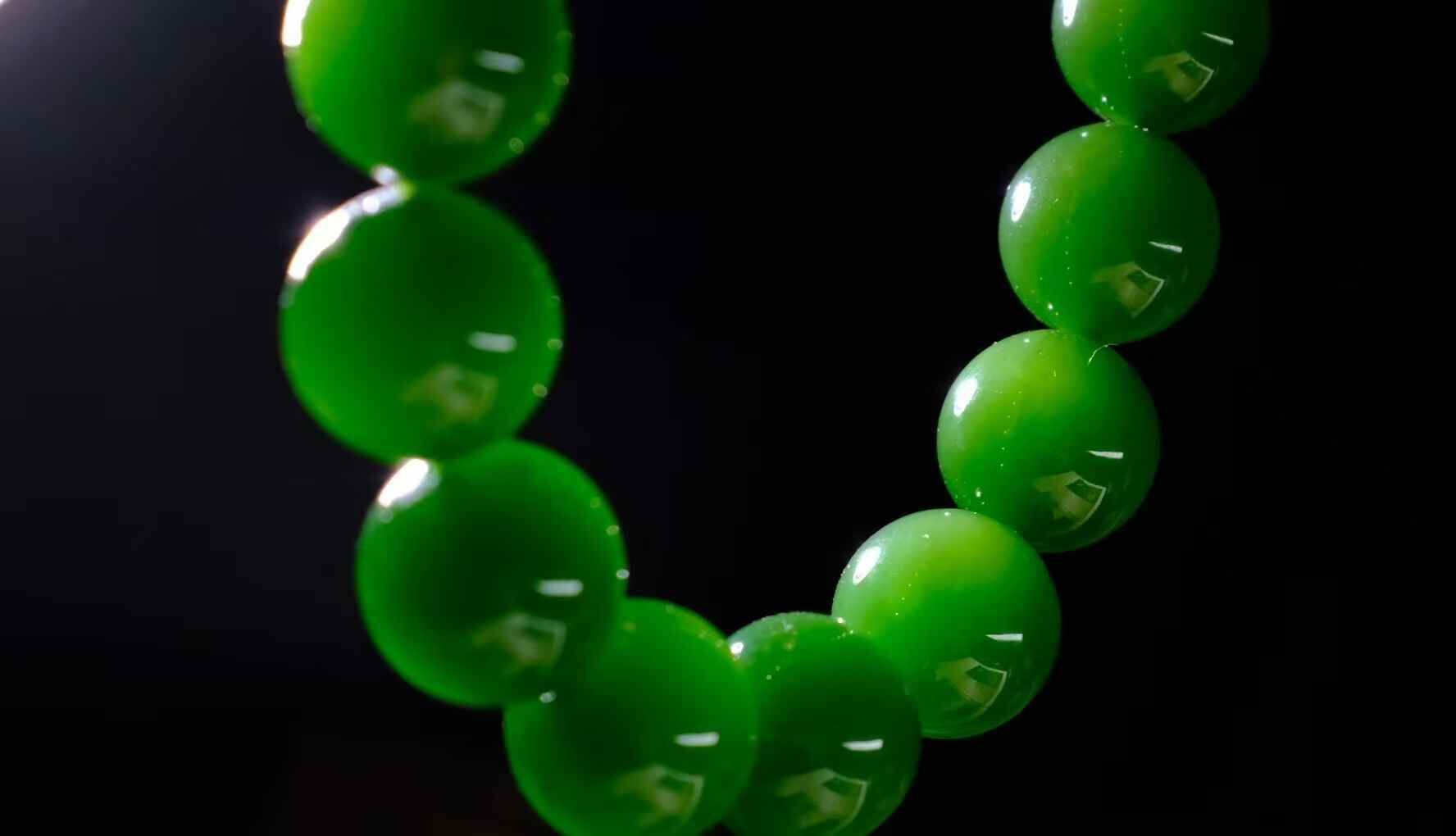 天然和田玉,收藏級碧玉七號礦滿綠手串,精光內斂,油潤細膩,高品質。