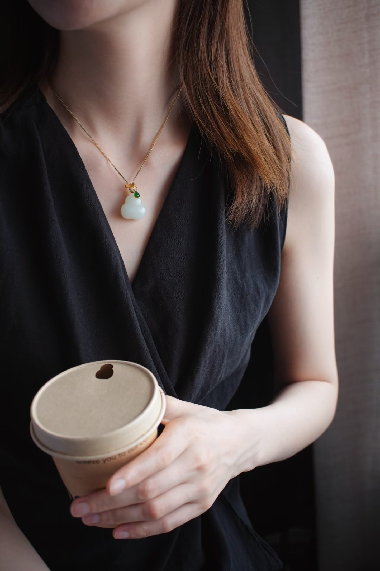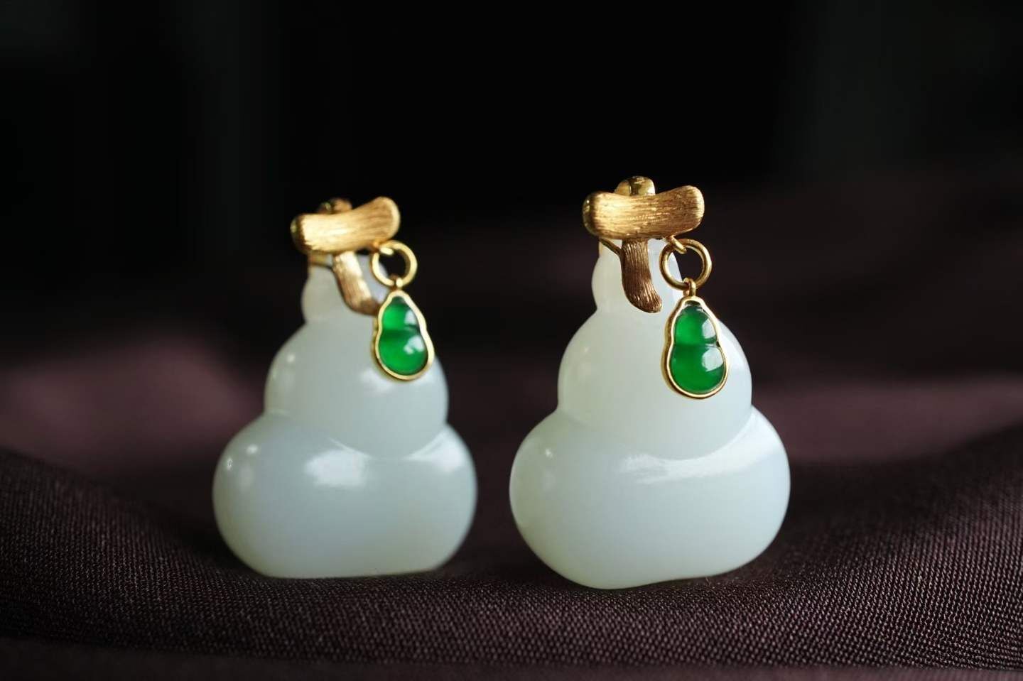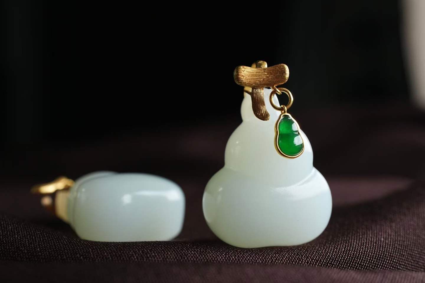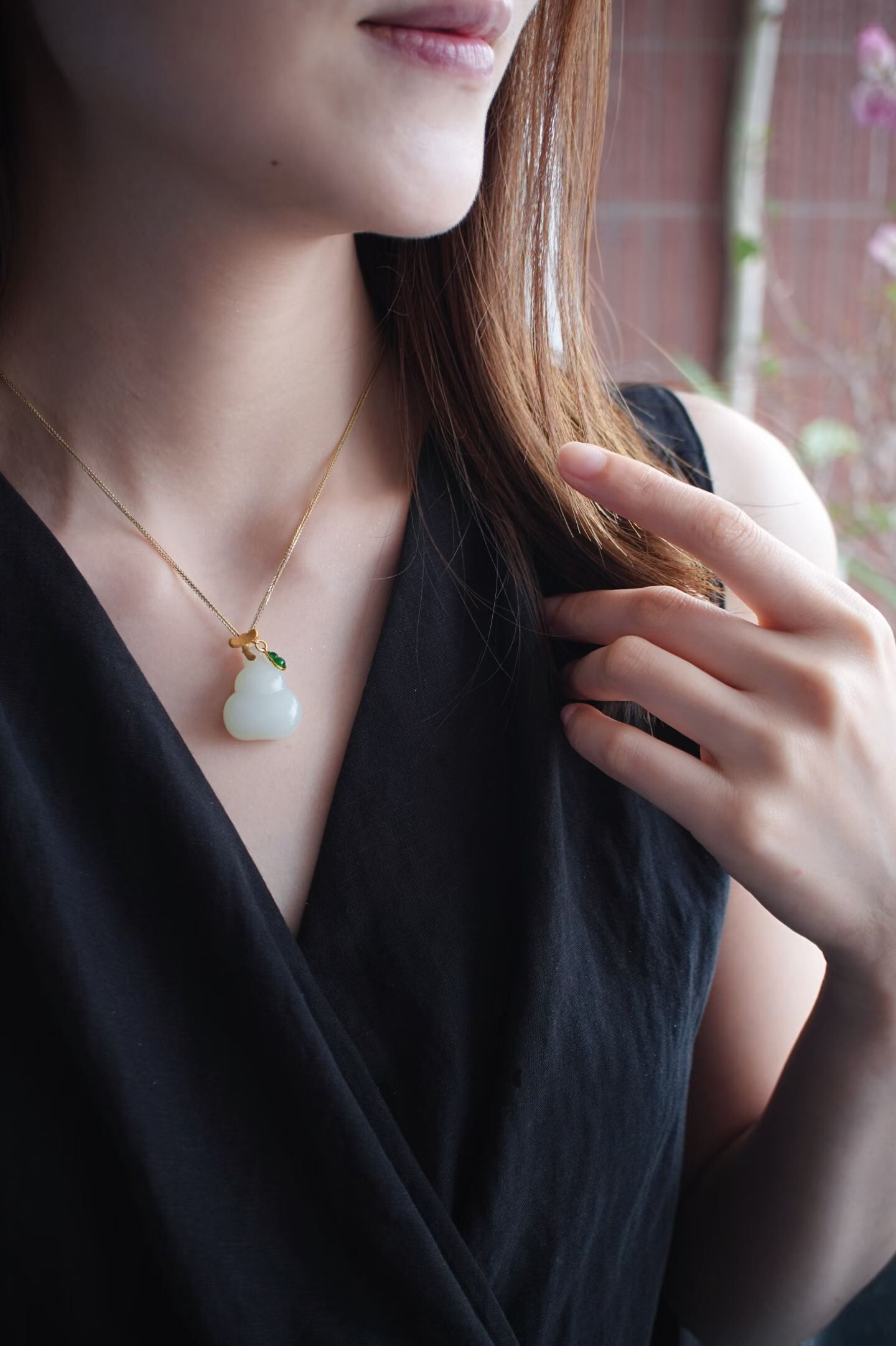 18K厚金拉絲工藝枝條扣頭,天然翡翠小葫蘆點綴,猶如天然生長,精致靈動,上身福祿疊buff。