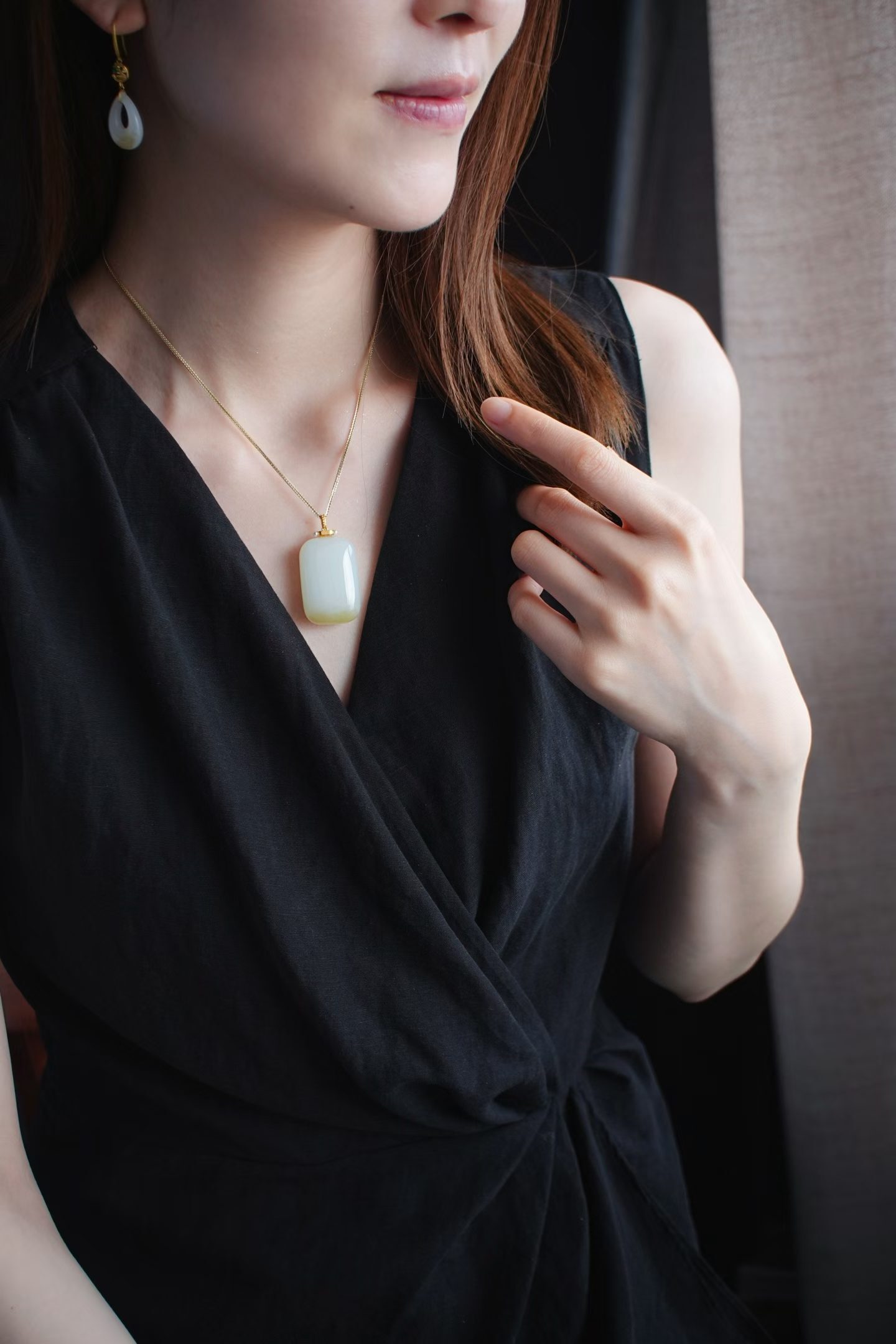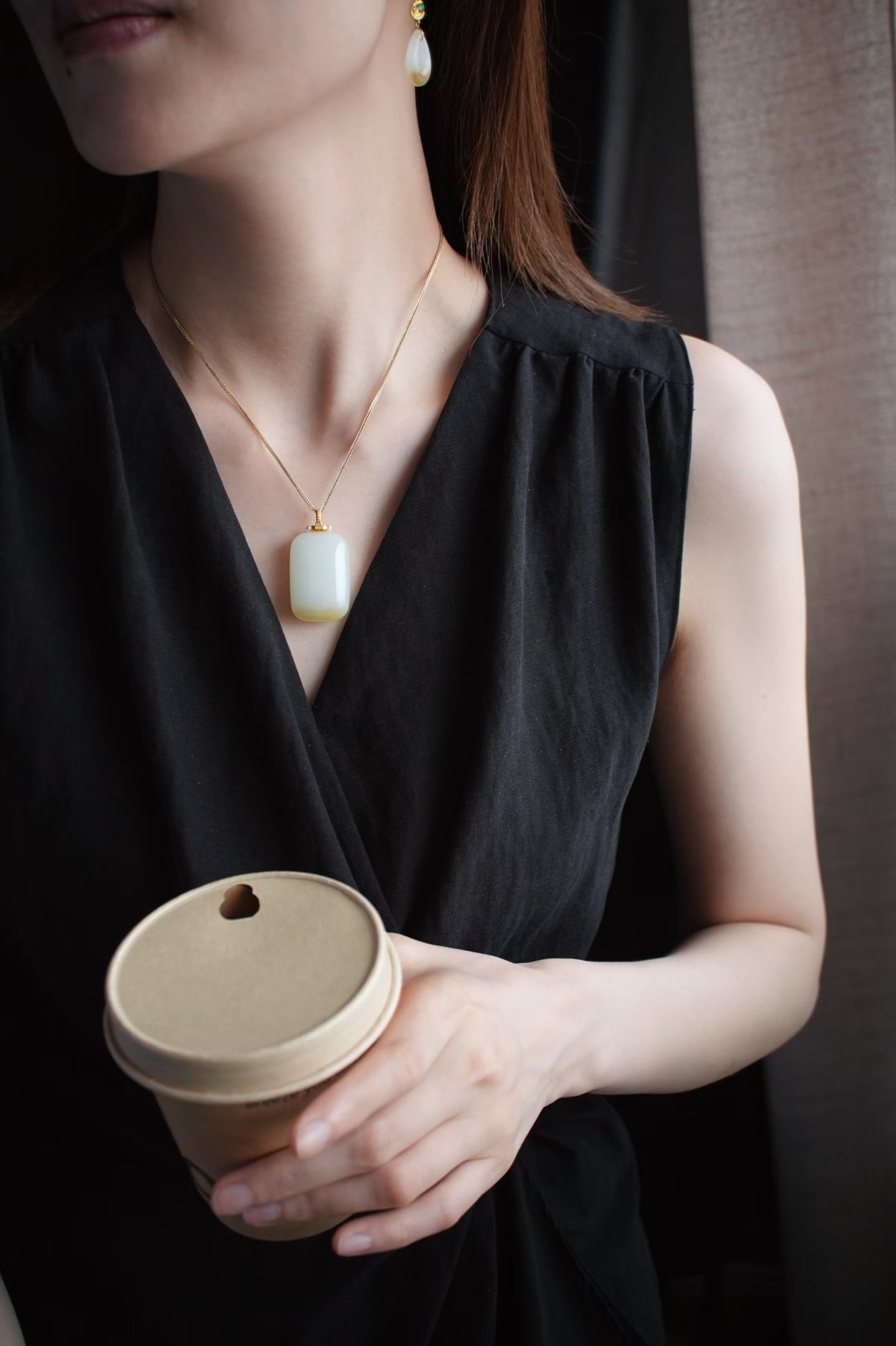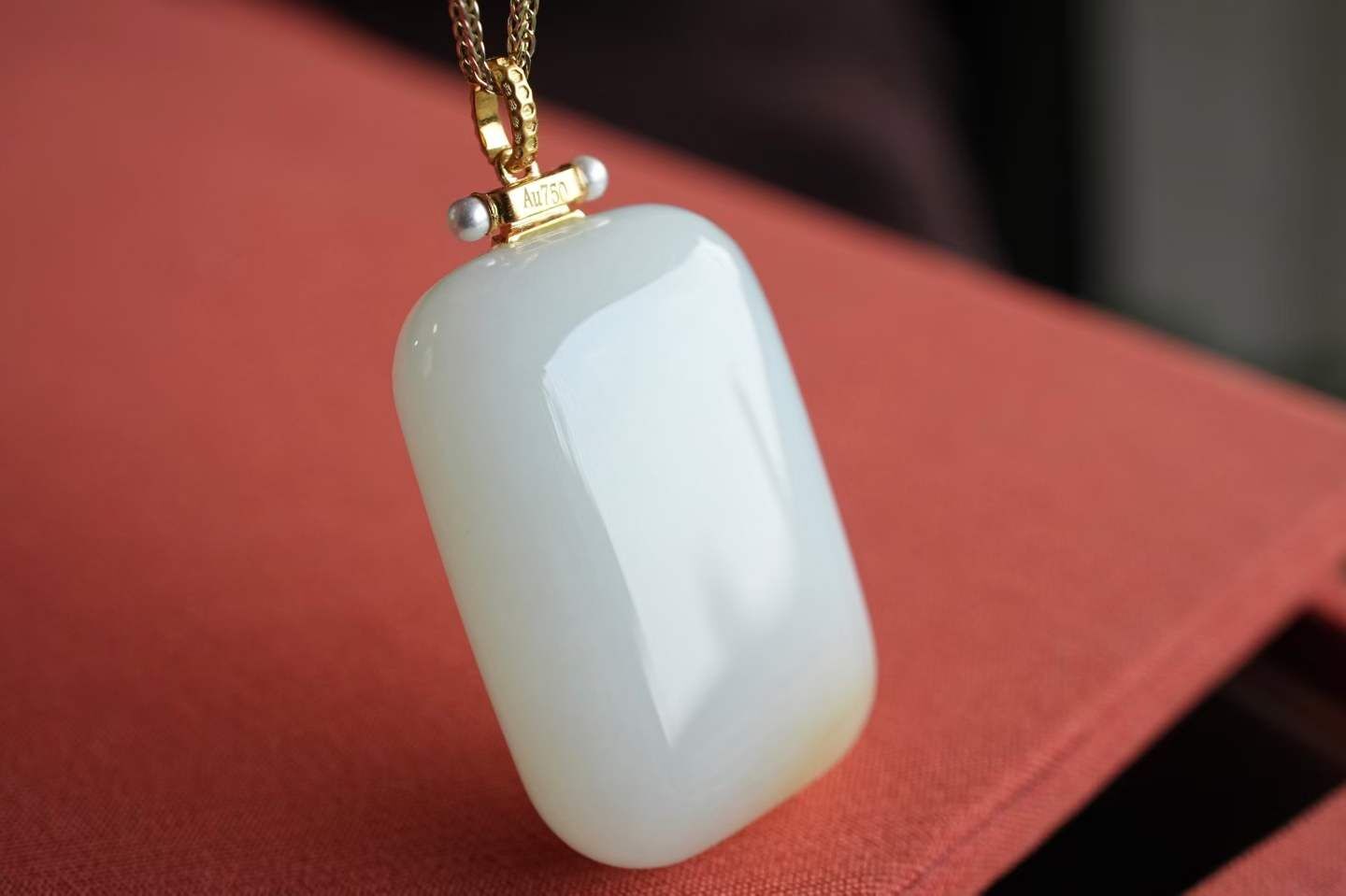 • 和田玉老坑糖白無事牌吊墜,天然和田玉軟玉