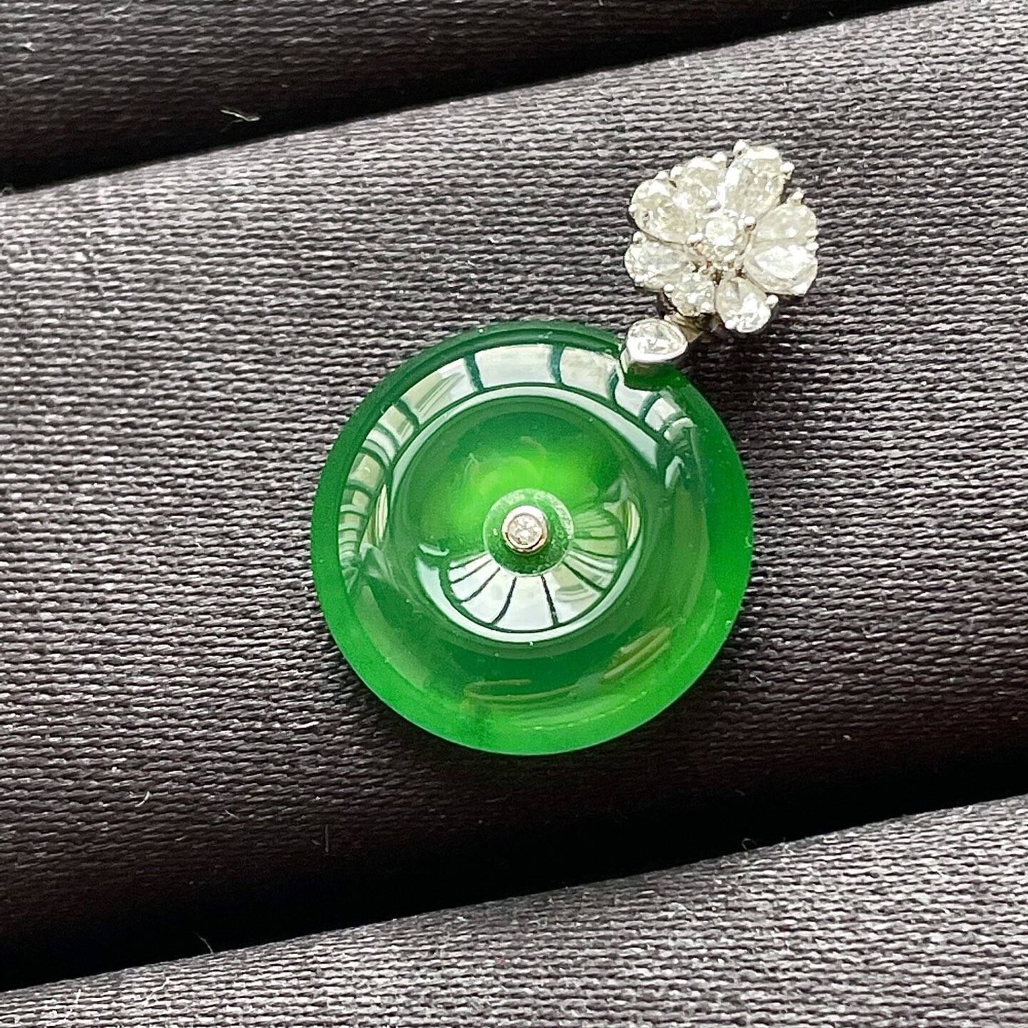 • 翡翠高冰帝王綠平安扣吊墜 (15.7mm直徑),天然翡翠A玉, 緬甸玉, Jade, Jadeite