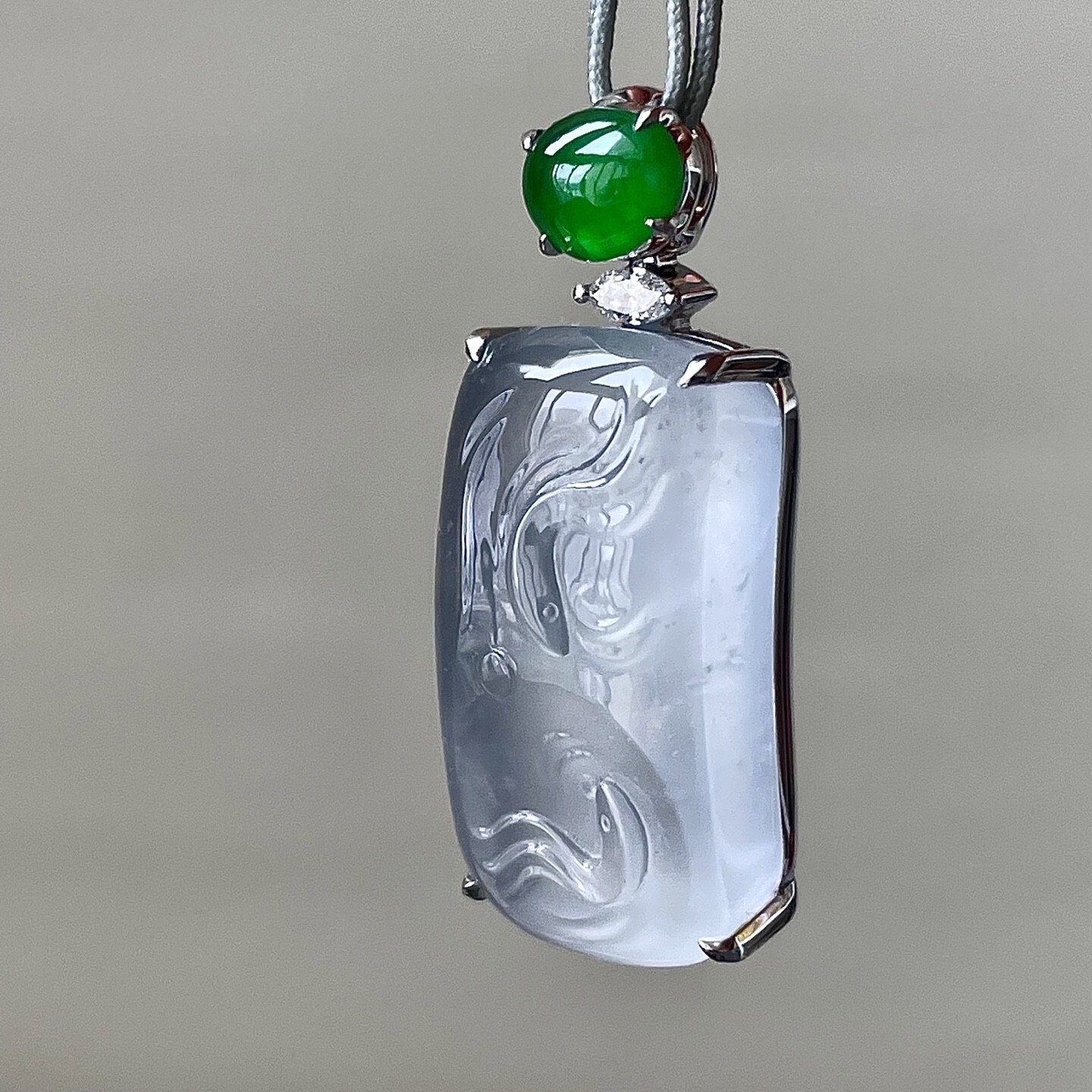 • 翡翠玻璃種雙魚吊墜,天然翡翠A玉, 緬甸玉, Jade, Jadeite