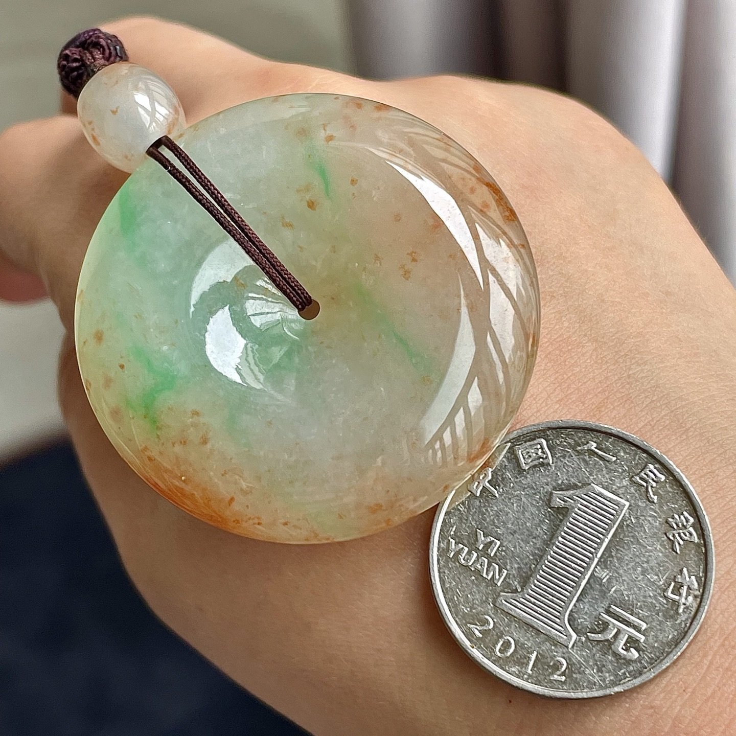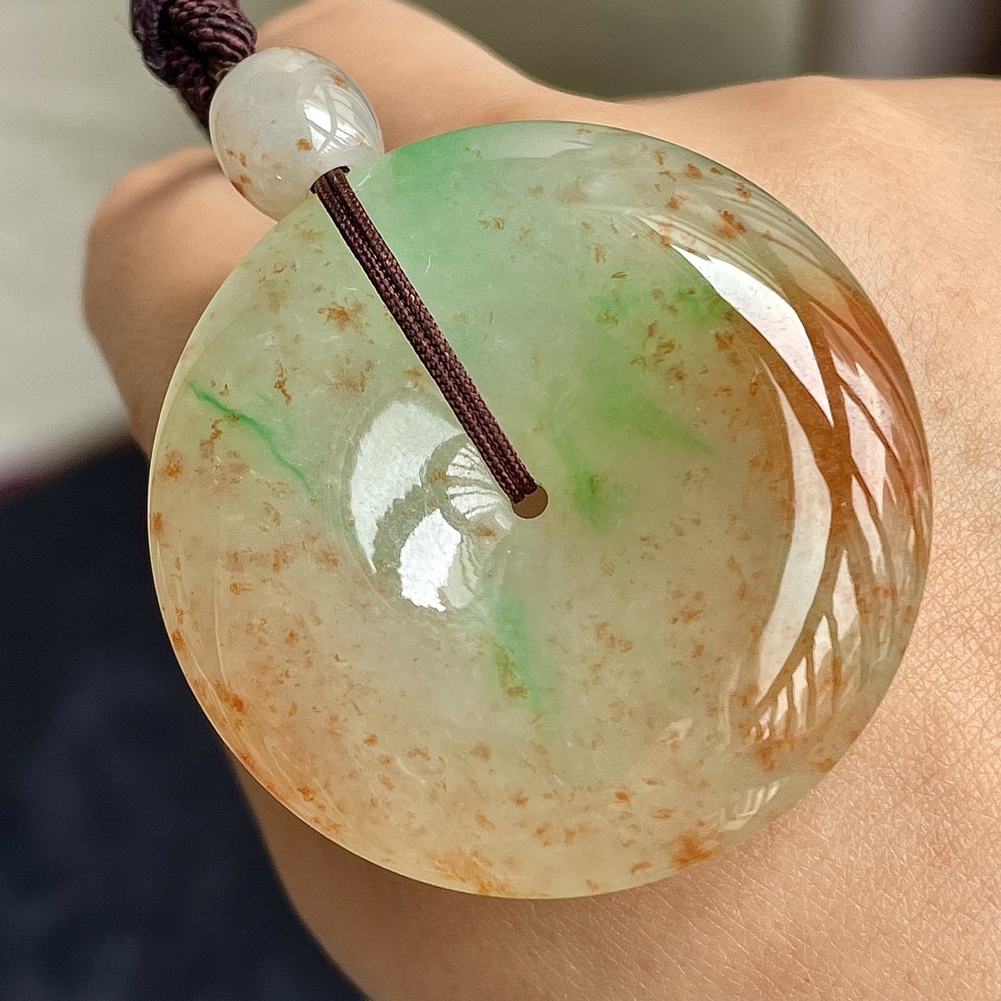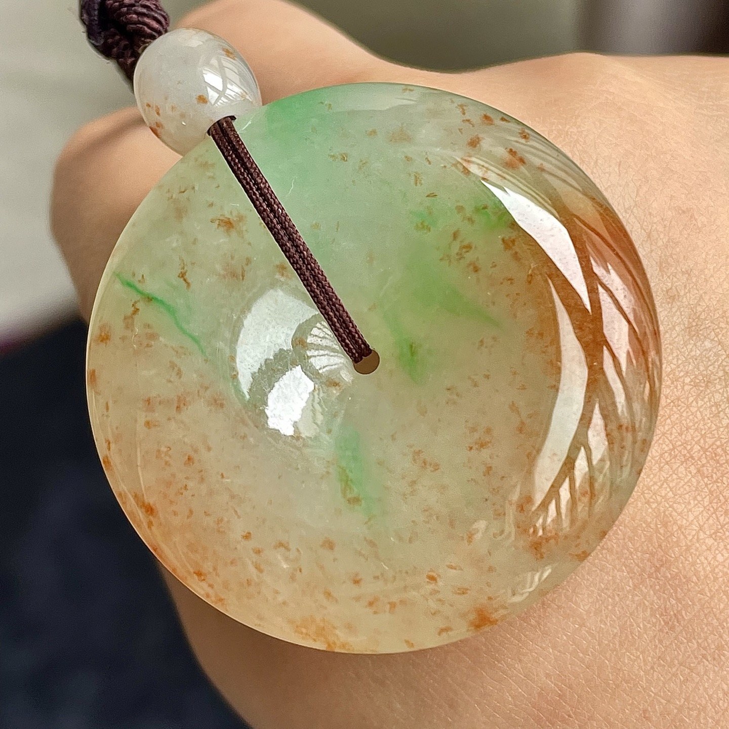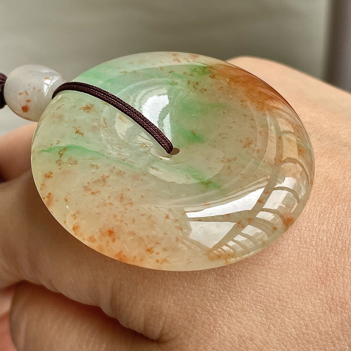 329134 翡翠冰三彩灑金平安扣吊墜