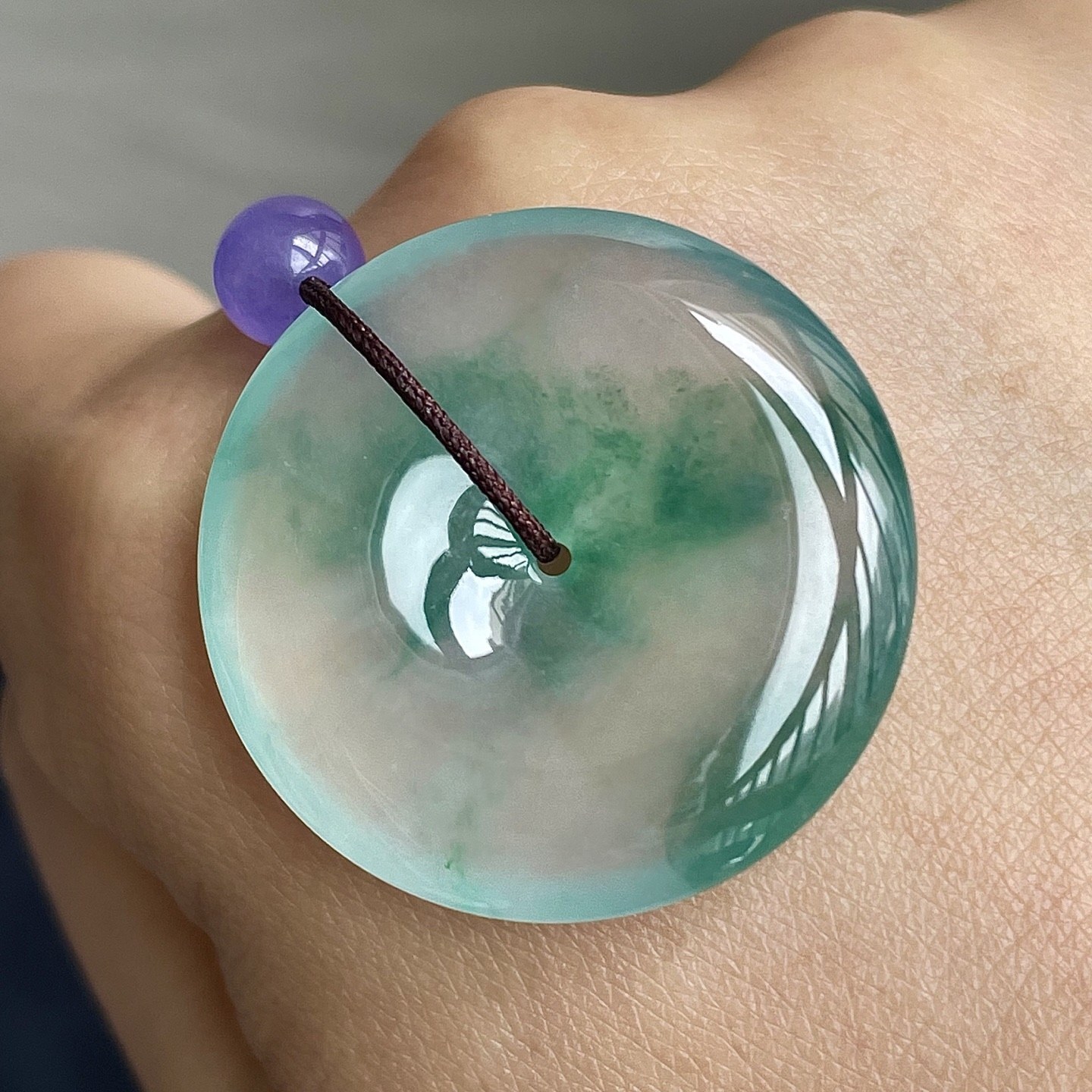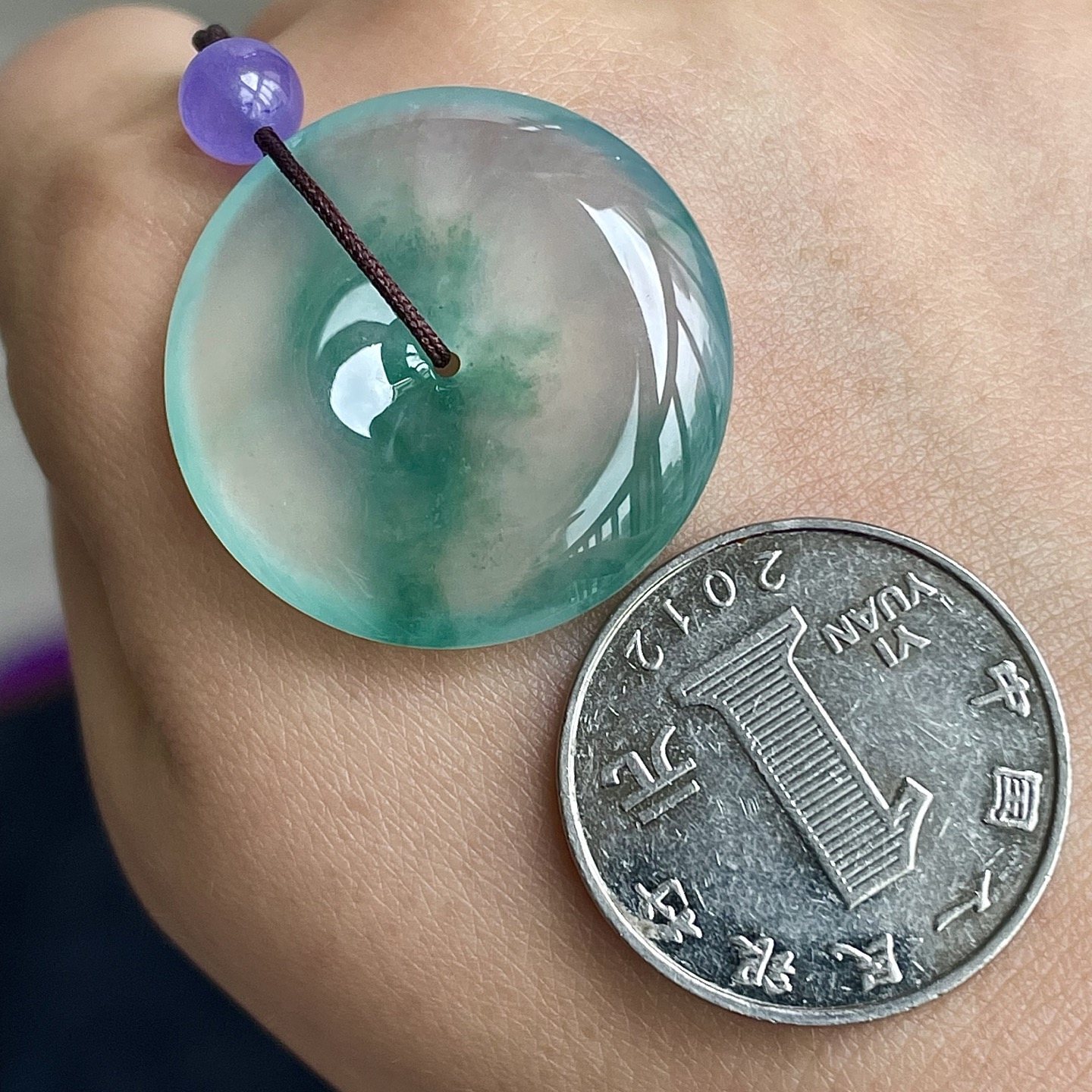 • 翡翠高冰飄花平安扣吊墜 (28.8mm直徑),天然翡翠A玉, 緬甸玉, Jade, Jadeite