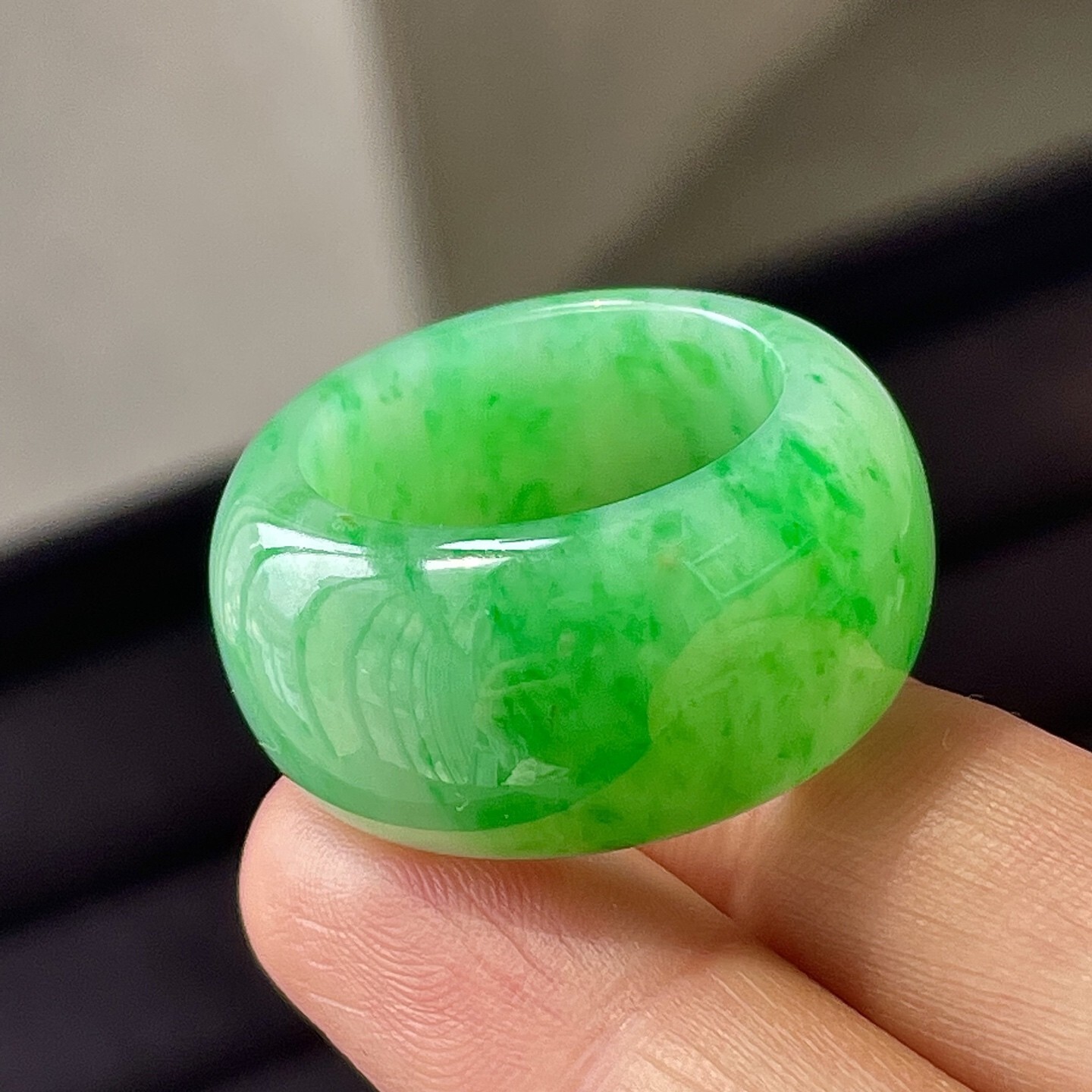 • 翡翠冰陽綠指環 (圈口 18mm),天然翡翠A玉, 緬甸玉, Jade, Jadeite