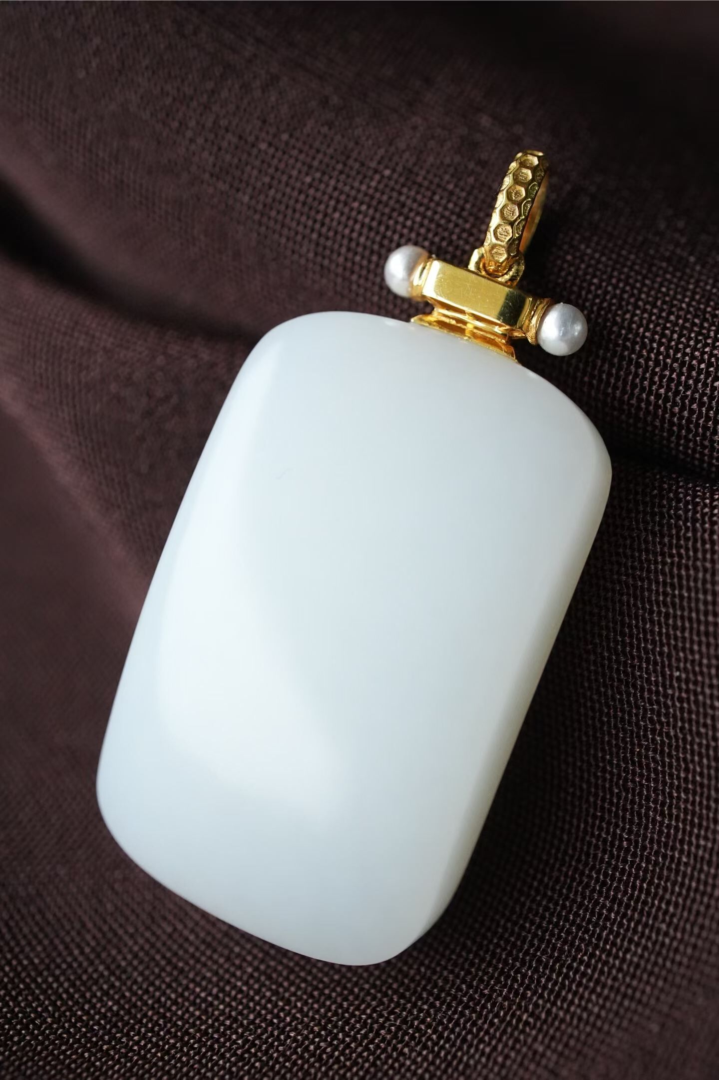 天然和田玉,這枚超適合貼身佩戴,俄料羊脂玉,白度高,質感溫潤細膩,油性充沛,牌面“無飾”即“無事”,寓意平安順遂、無病無災,過燈純淨,無棉無水線,無雜裂,小而精。