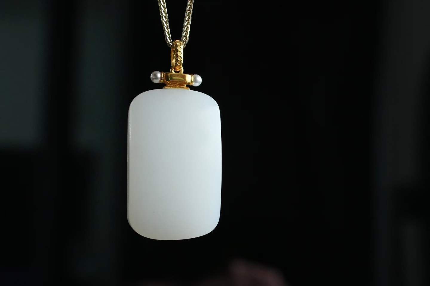 • 和田玉羊脂玉平安無事牌吊墜,天然和田玉軟玉