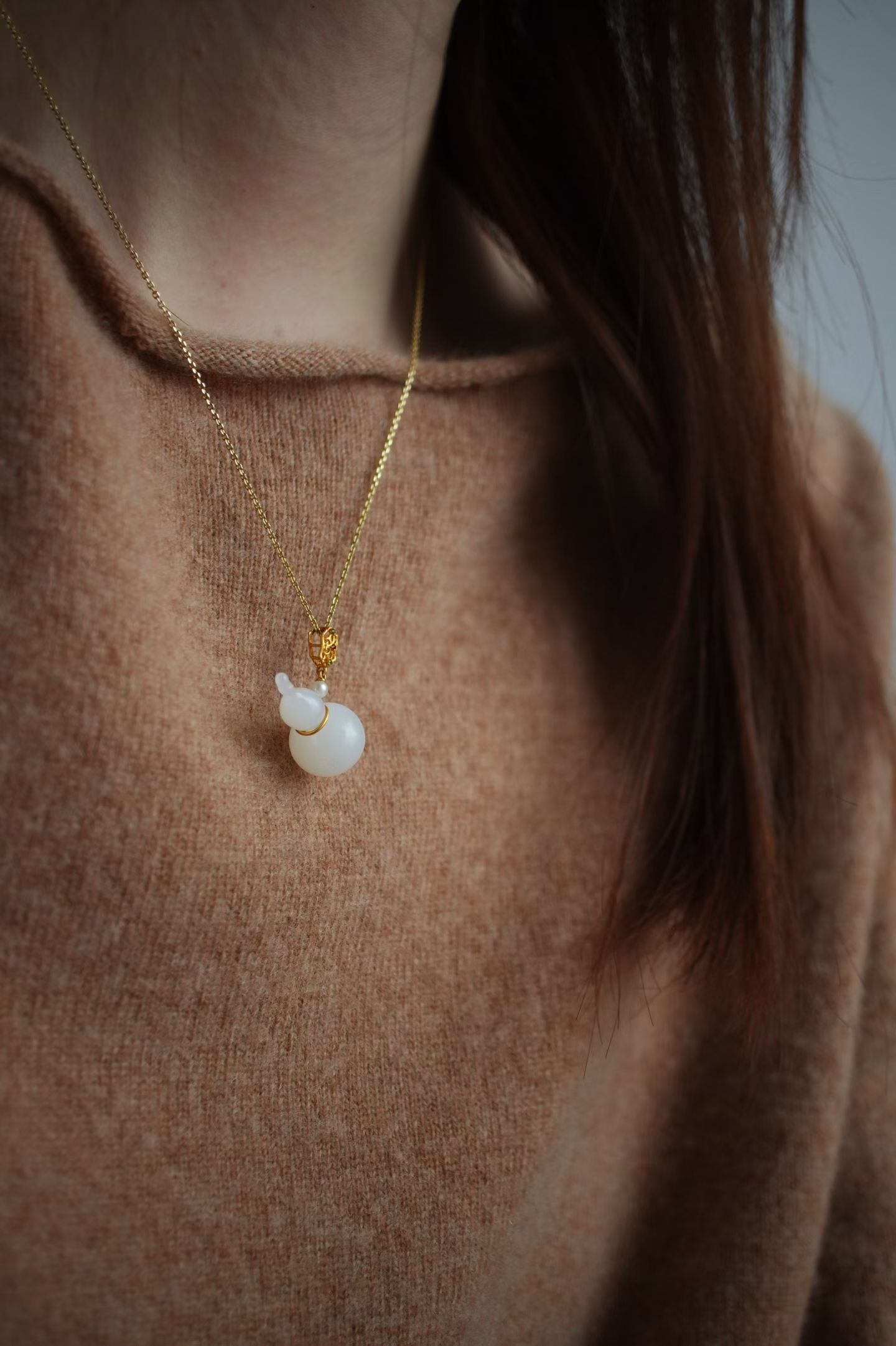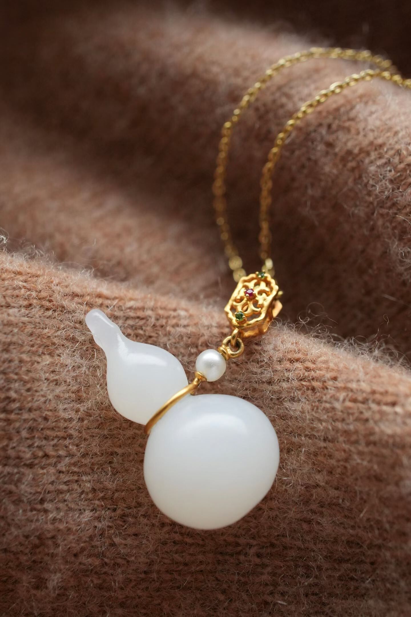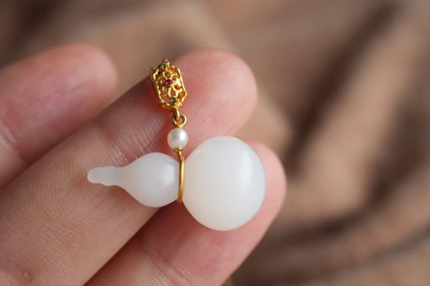 • 和田玉羊脂玉立體“福祿雙全”葫蘆吊墜,天然和田玉軟玉