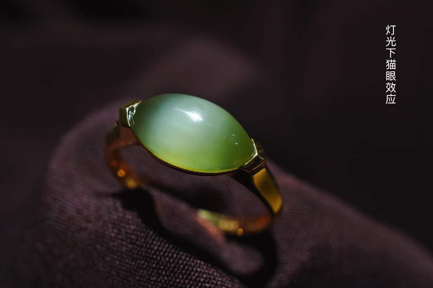 • 和田玉碧玉冰底貓眼馬眼戒指,天然和田玉軟玉