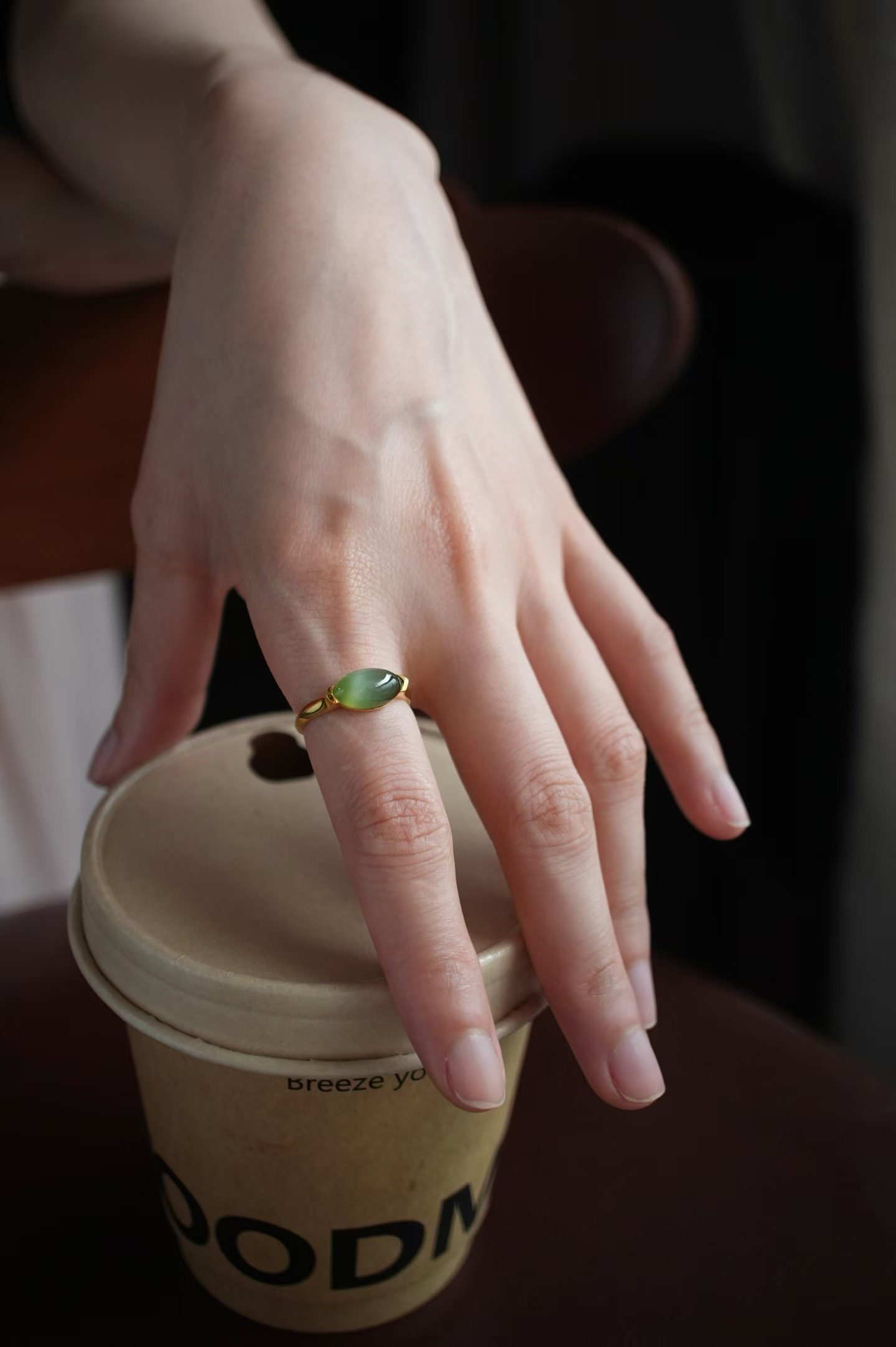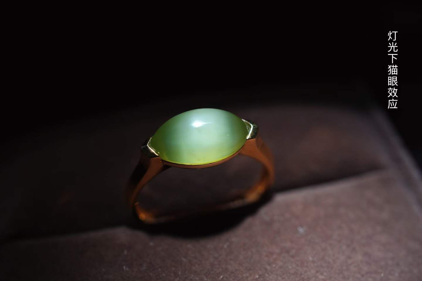 天然和田玉,高品質馬眼碧玉貓眼蛋面,瑩潤通透,無棉無裂,自然光下貓眼活靈活現,完全不用找光,底子夠冰才有這般效果,極簡設計高級耐看,完美凸顯貓眼的品質。