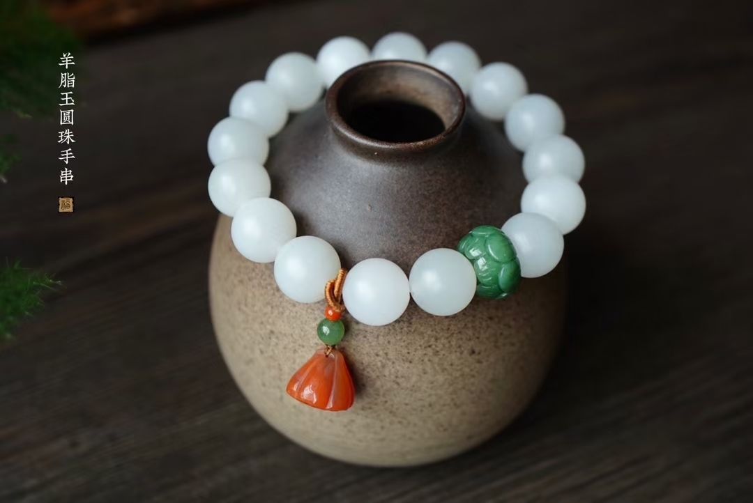 331421 和田玉羊脂玉圓珠手串 (12mm直徑)