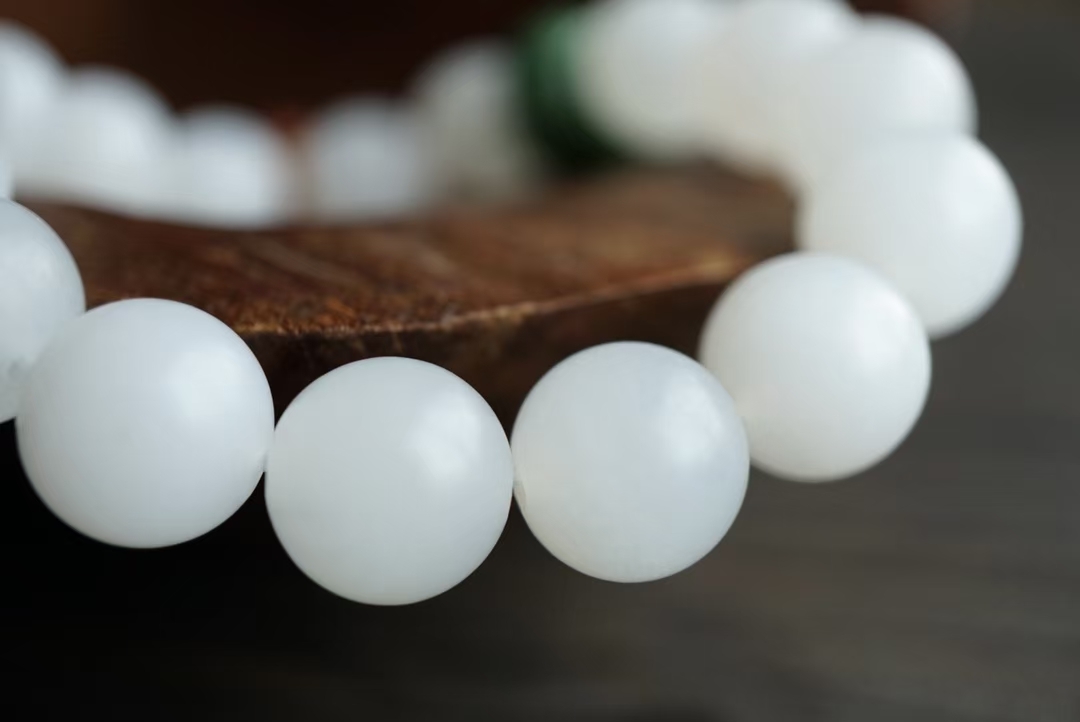 • 和田玉羊脂玉圓珠手串 (12mm直徑), 天然和田玉軟玉
