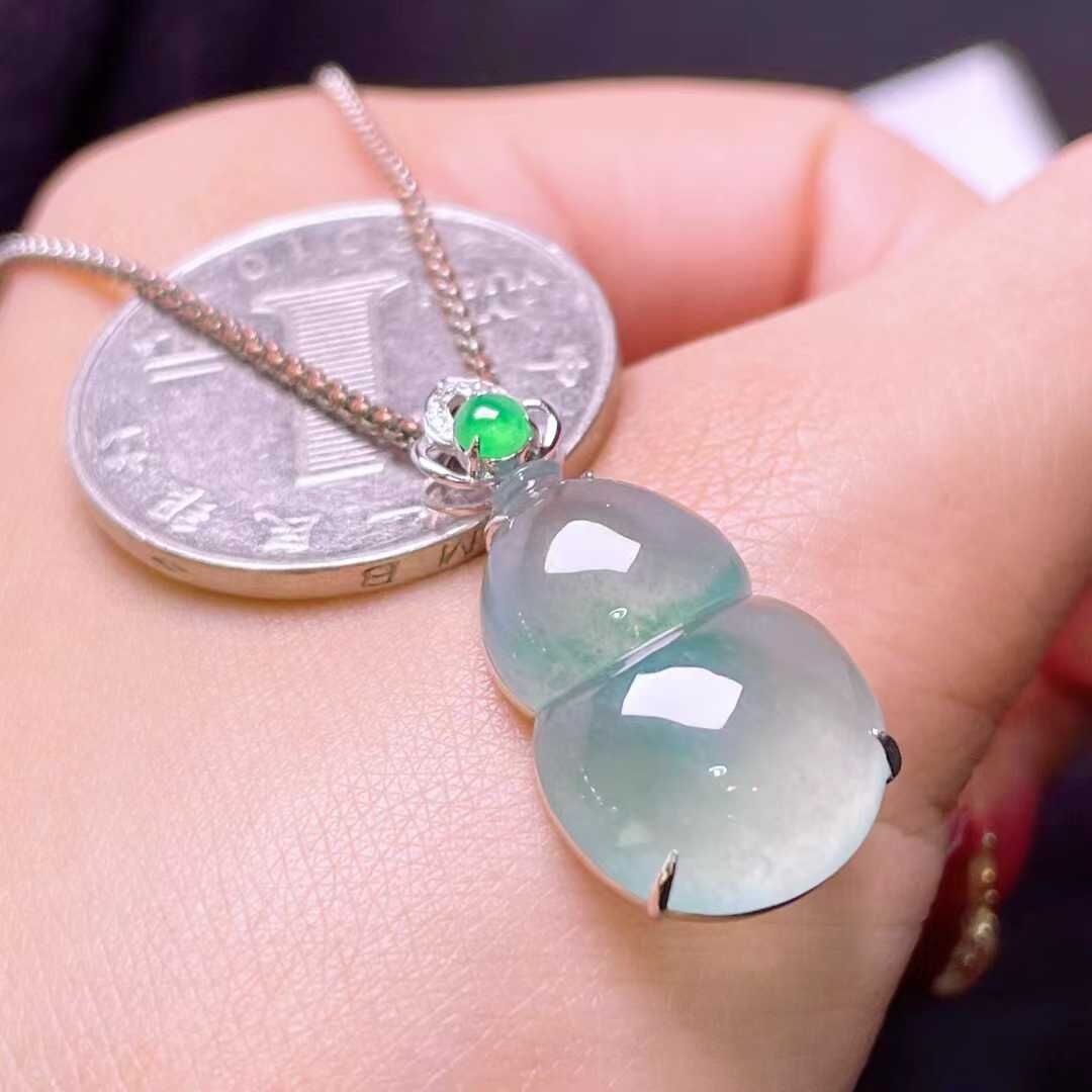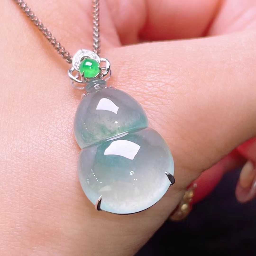 • 翡翠葫蘆吊墜,天然翡翠A玉, 緬甸玉, Jade, Jadeite