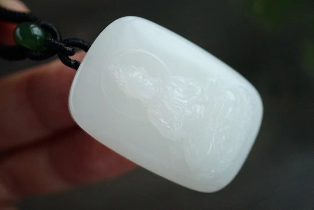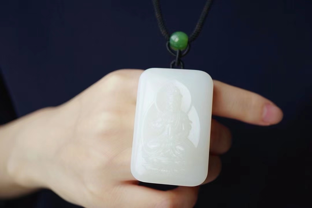 • 和田玉羊脂玉“妙法蓮華”觀音掛件,天然和田玉軟玉