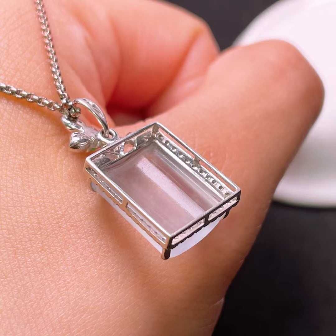 天然翡翠A玉,緬料,老坑高冰種,冰透水潤,18K金鑲嵌。