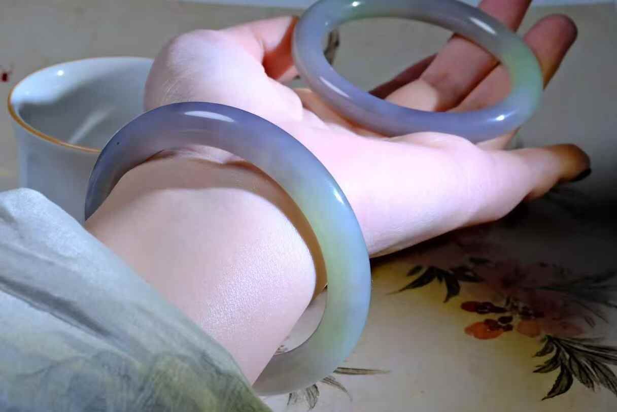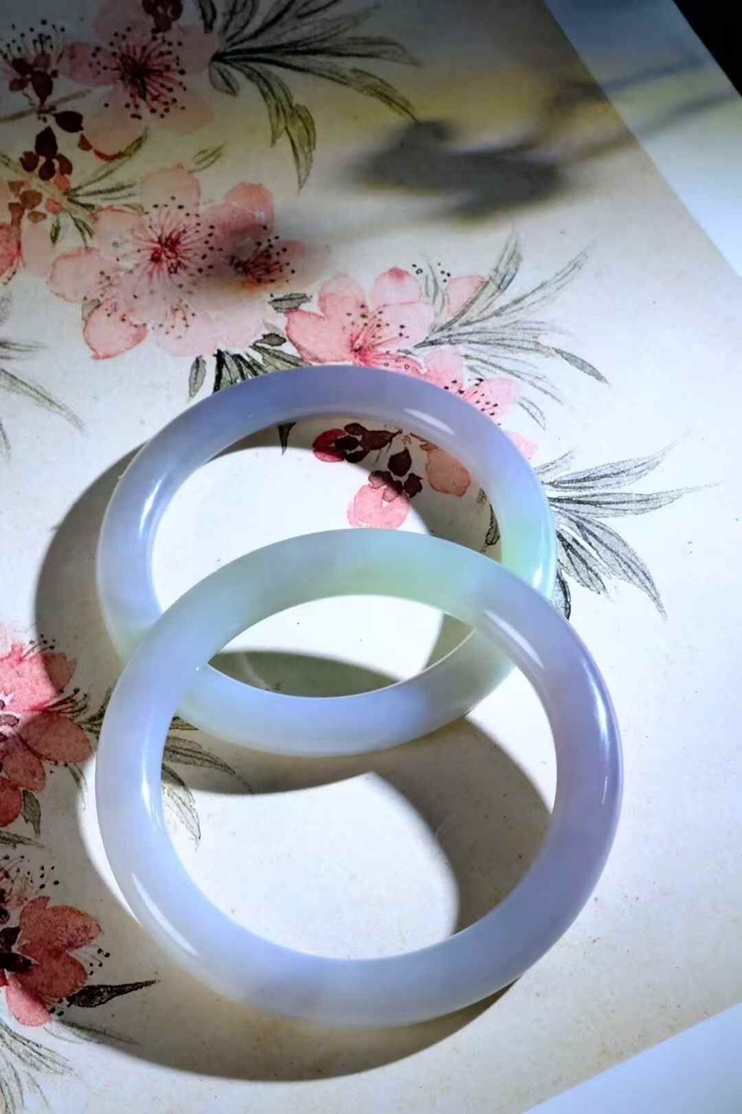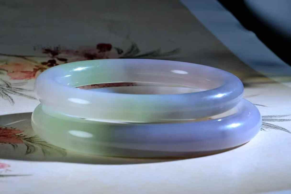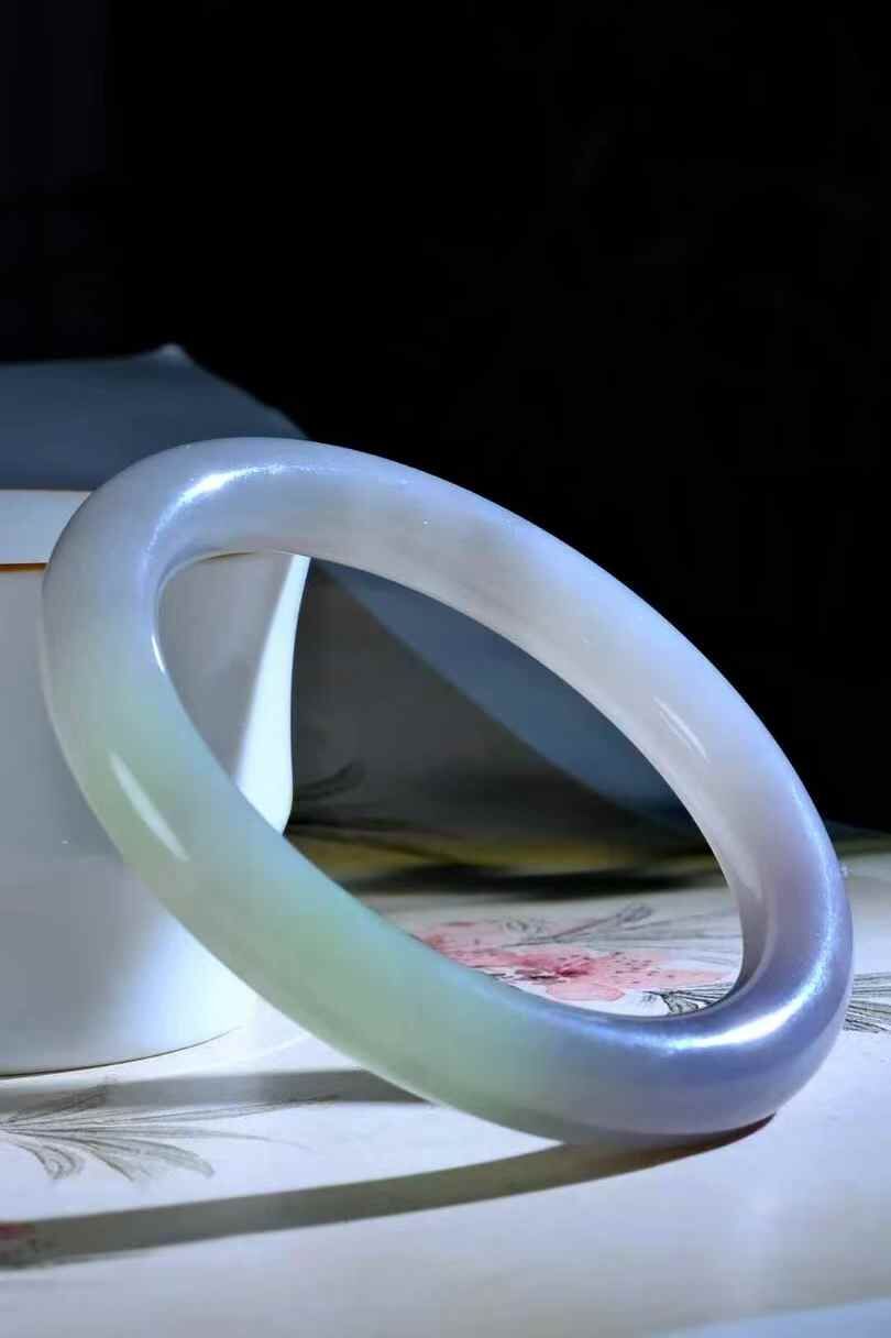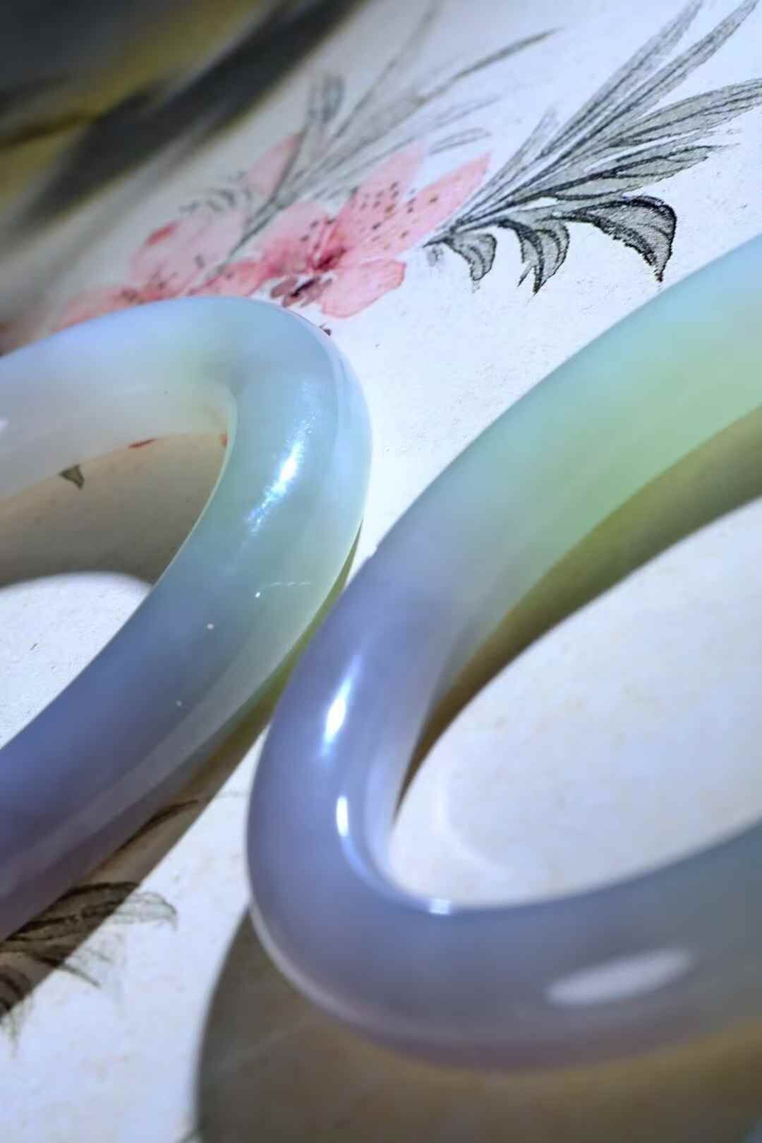 天然和田玉,紫羅蘭的部分如暮春傍晚薰衣草田的薄霧,朦朧雅致在光影里流轉著溫柔的夢,翠色的段落似盛夏溪澗邊青苔的新綠、鮮活靈動,每一絲色澤都像被山風揉碎的玉流光。性價比極高的兩隻。