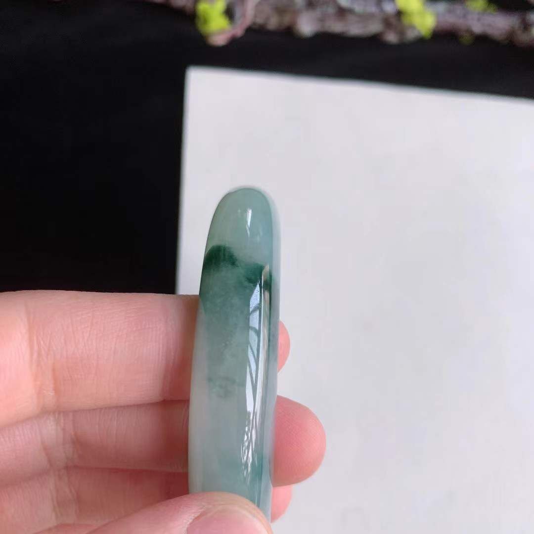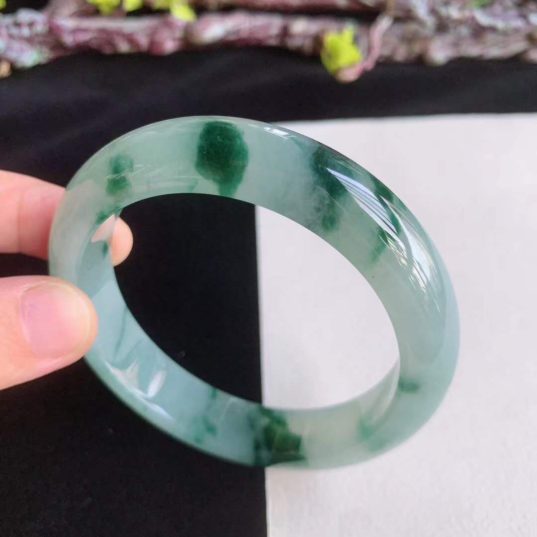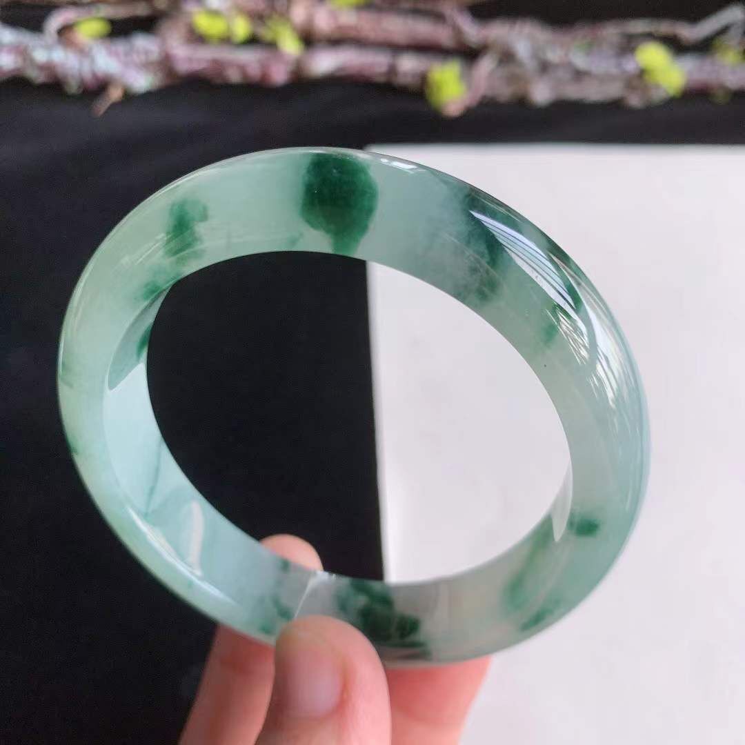 372657 55.2mm翡翠冰糯冰飄綠花正圈手鐲