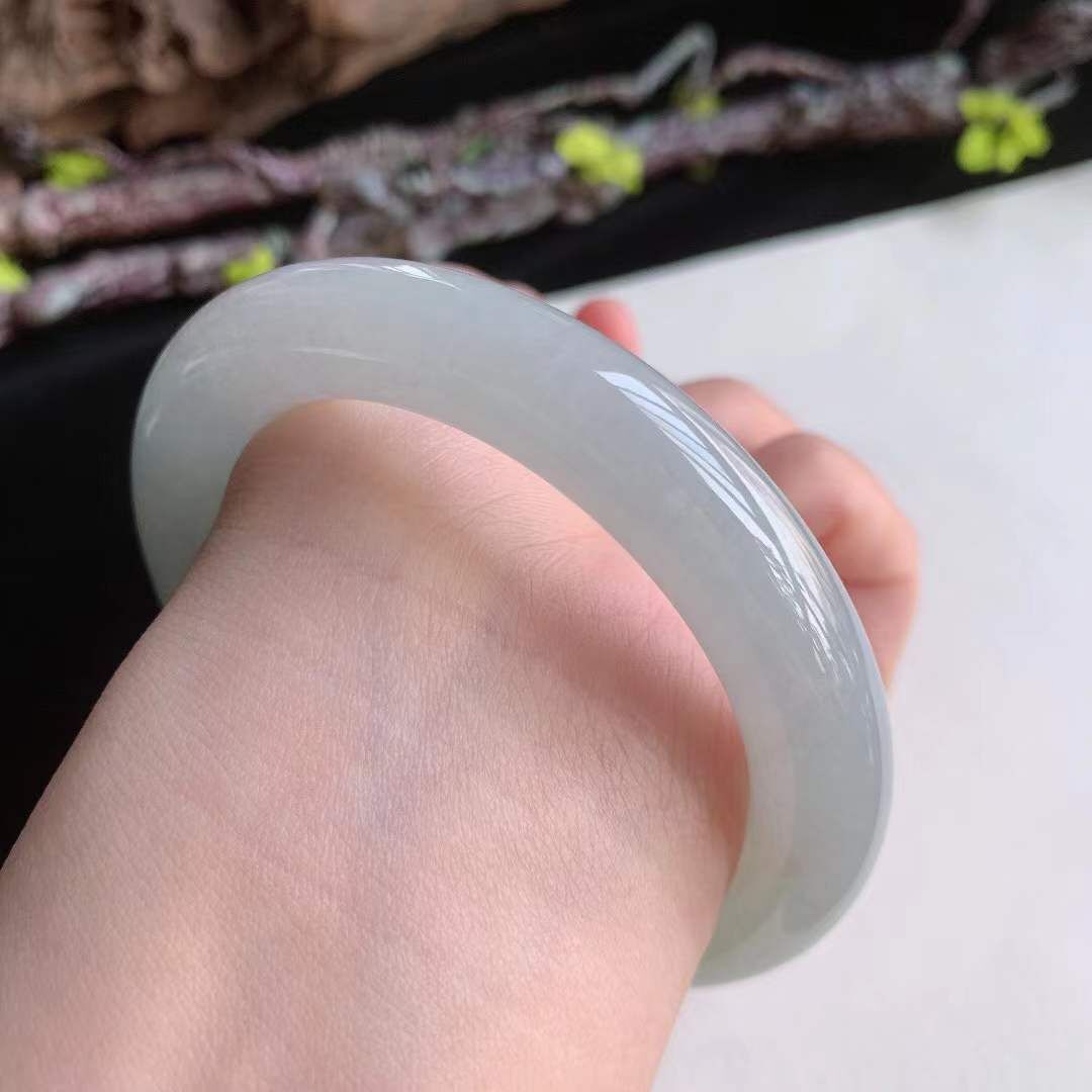• 翡翠冰種冰潤晴水圓條手鐲,天然翡翠A玉, 緬甸玉, Jade, Jadeite