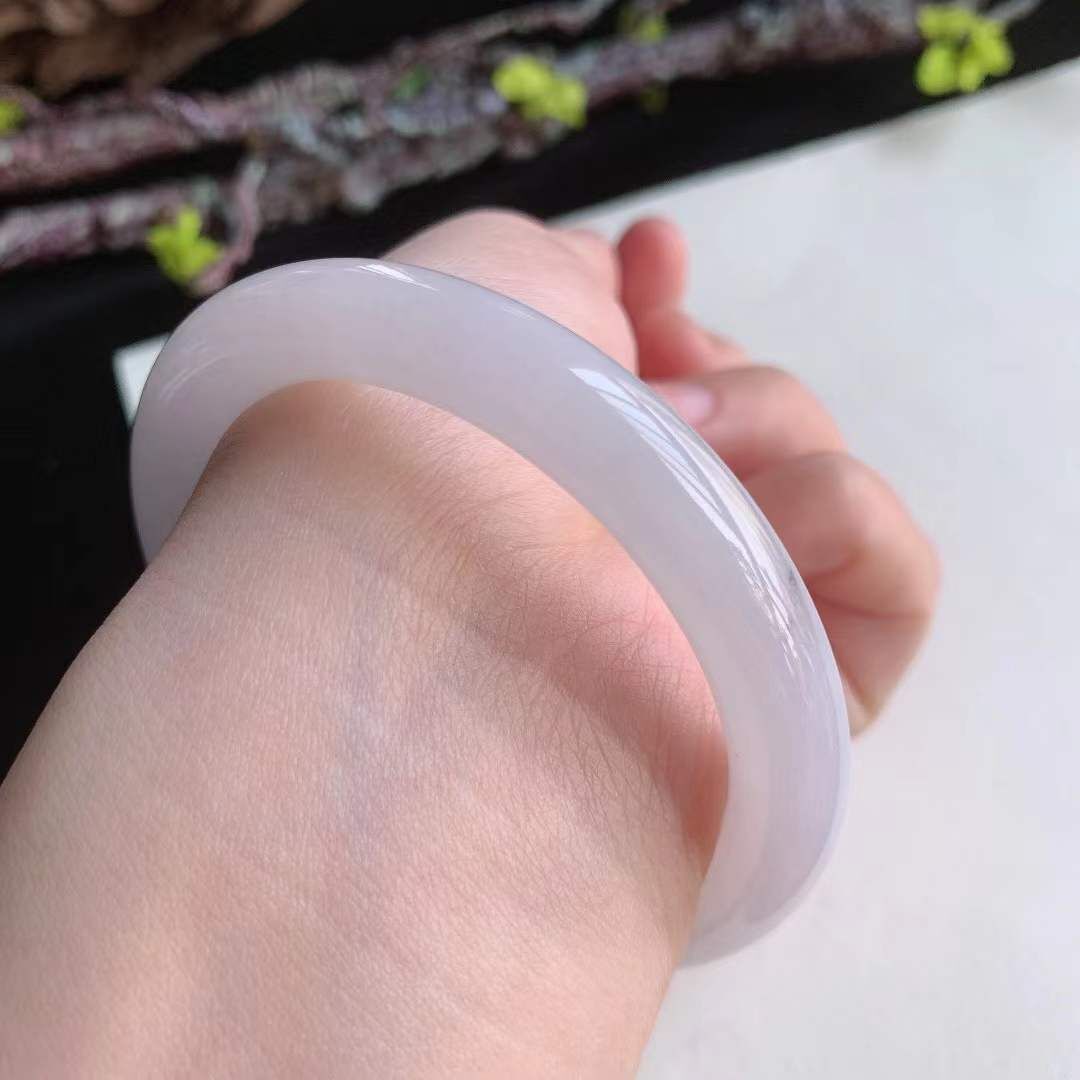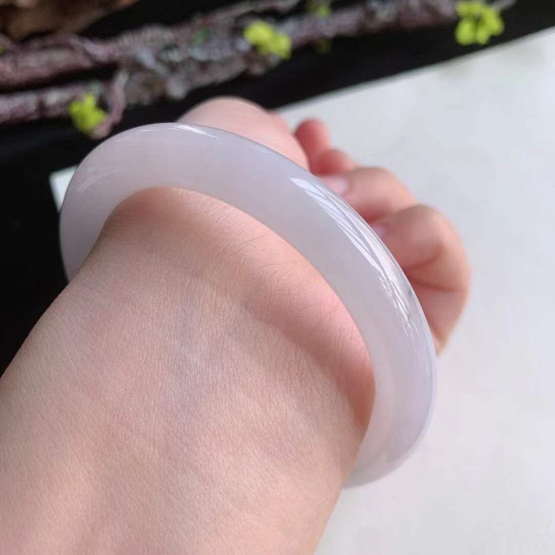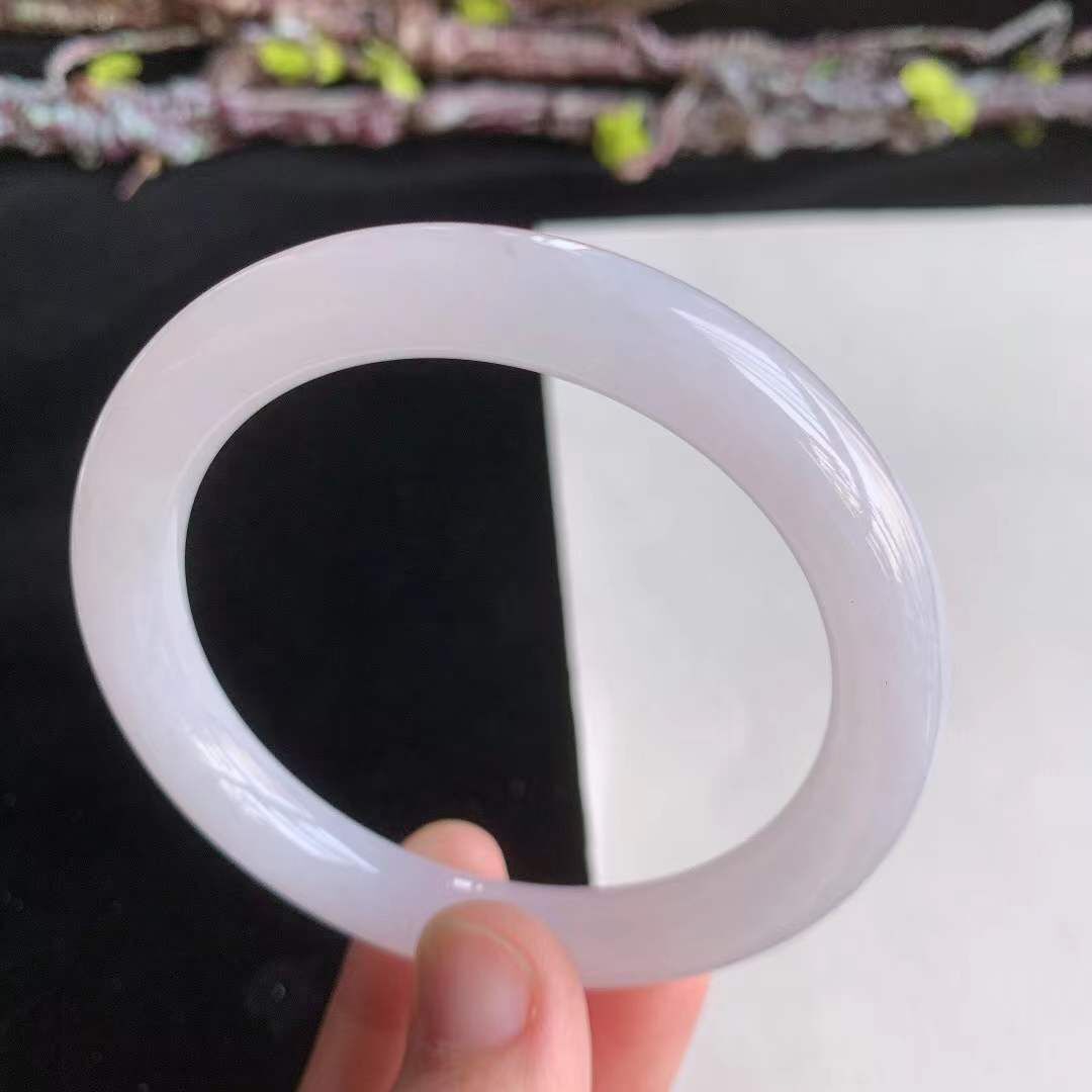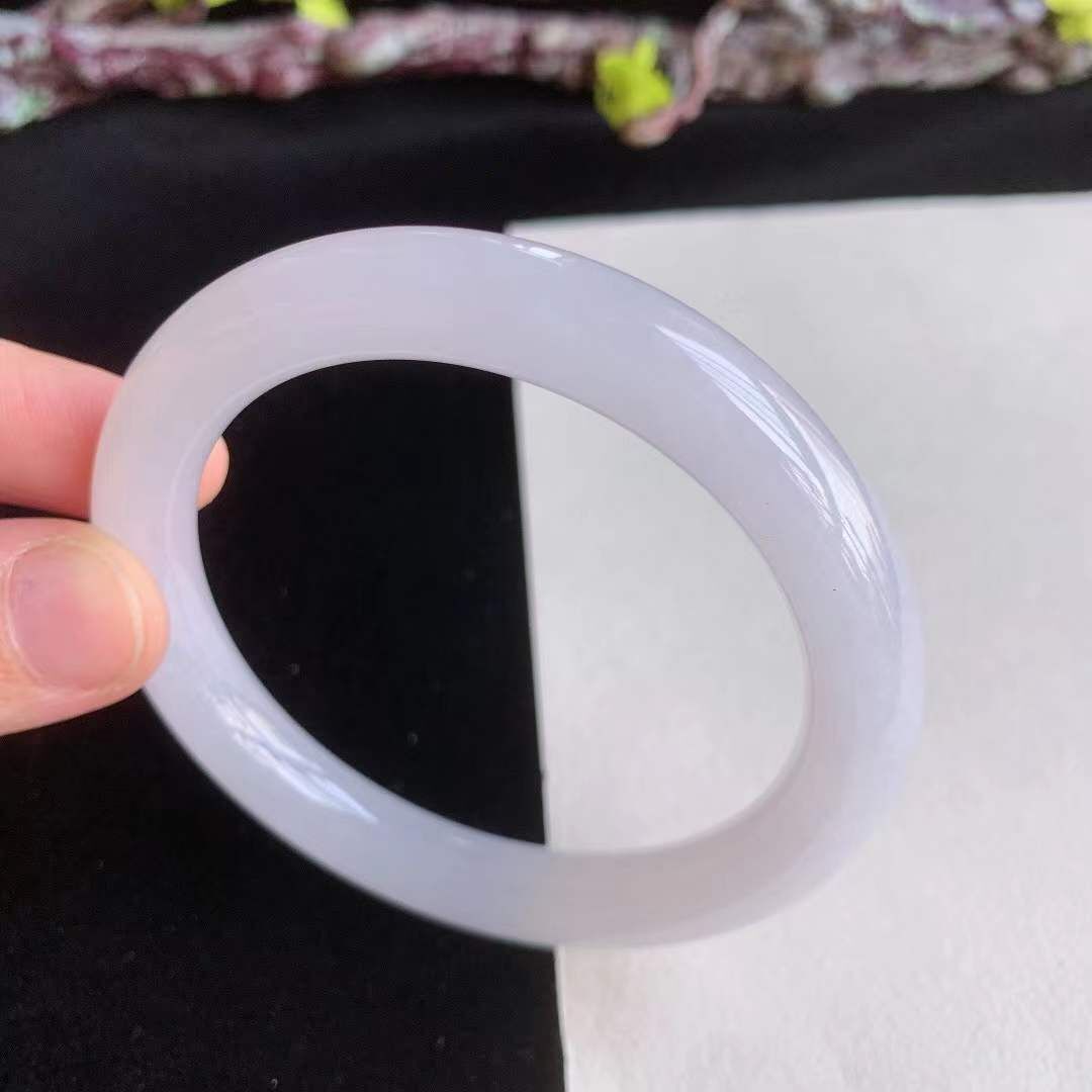 372659 55.3mm翡翠冰糯水潤紫底圓條手鐲