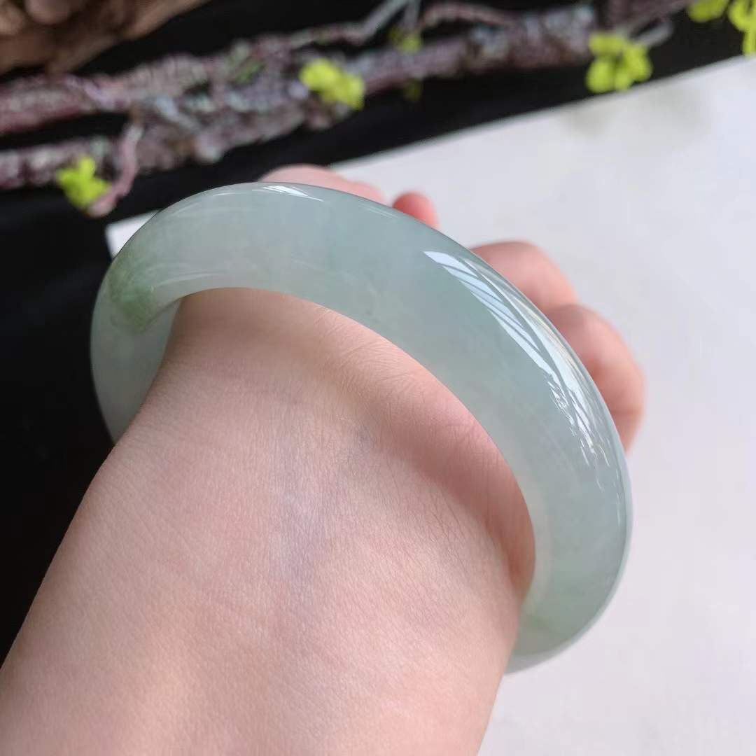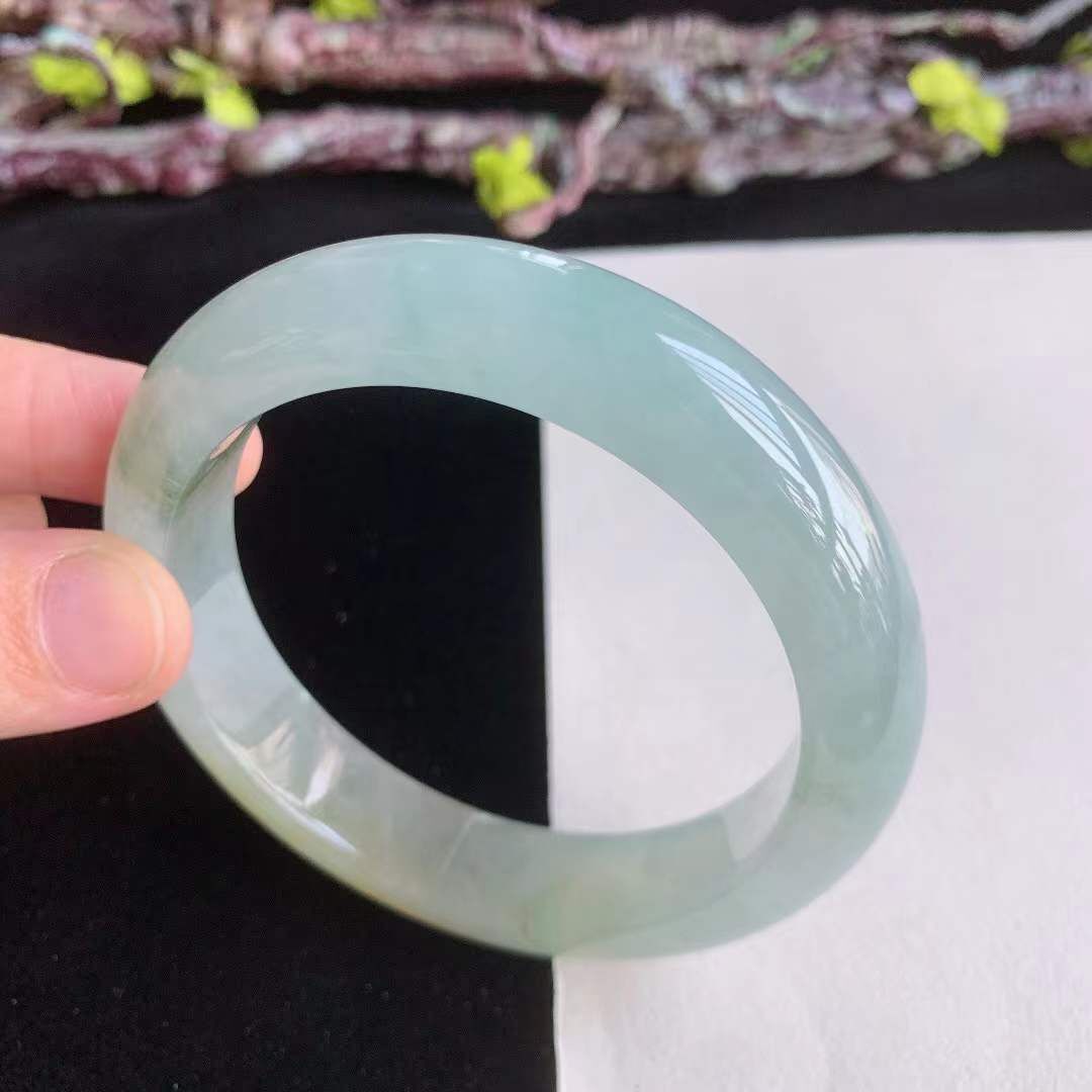372661 58mm翡翠冰種冰潤飄黃翡正圈手鐲