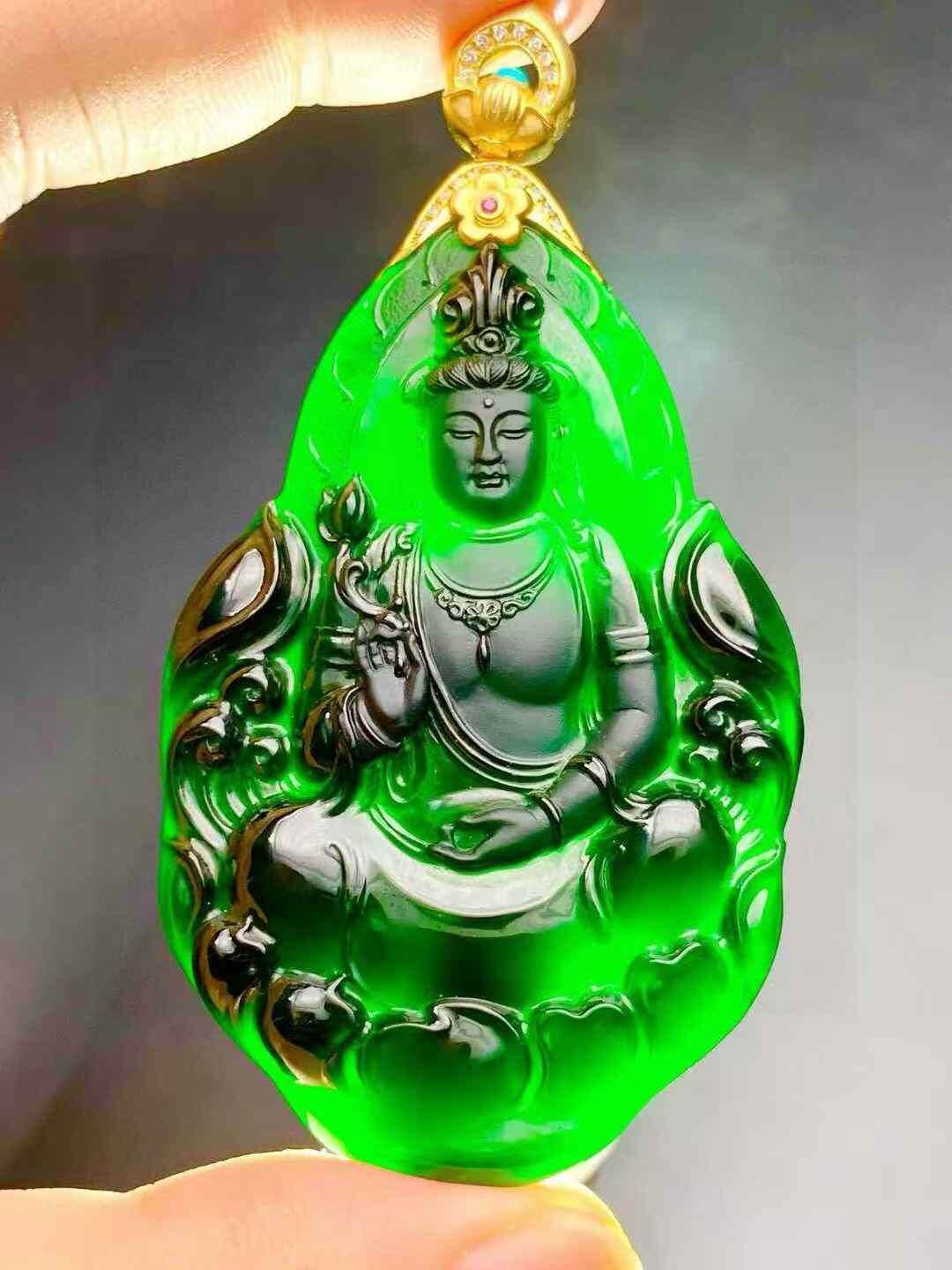 天然翡翠A玉,緬料,燈照透綠,雕工精美,完美無紋裂。