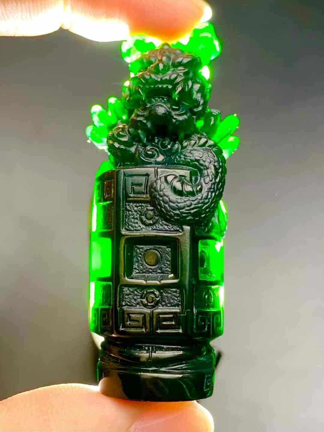 • 翡翠墨翠龍柱,天然翡翠A玉, 緬甸玉, Jade, Jadeite