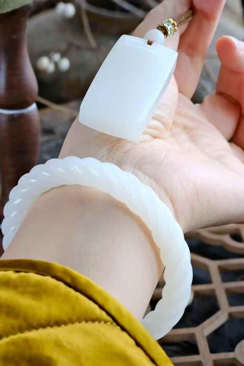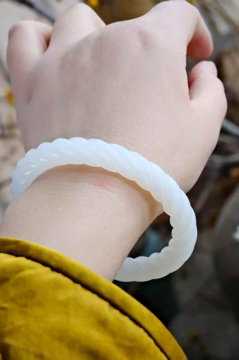 37732 和田玉白玉絞絲紋鐲+無事牌