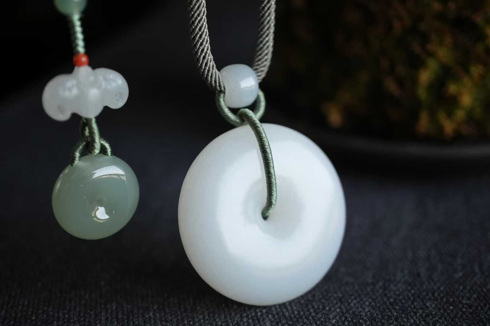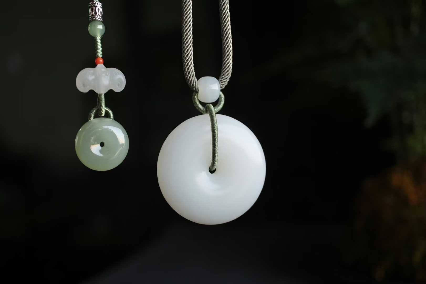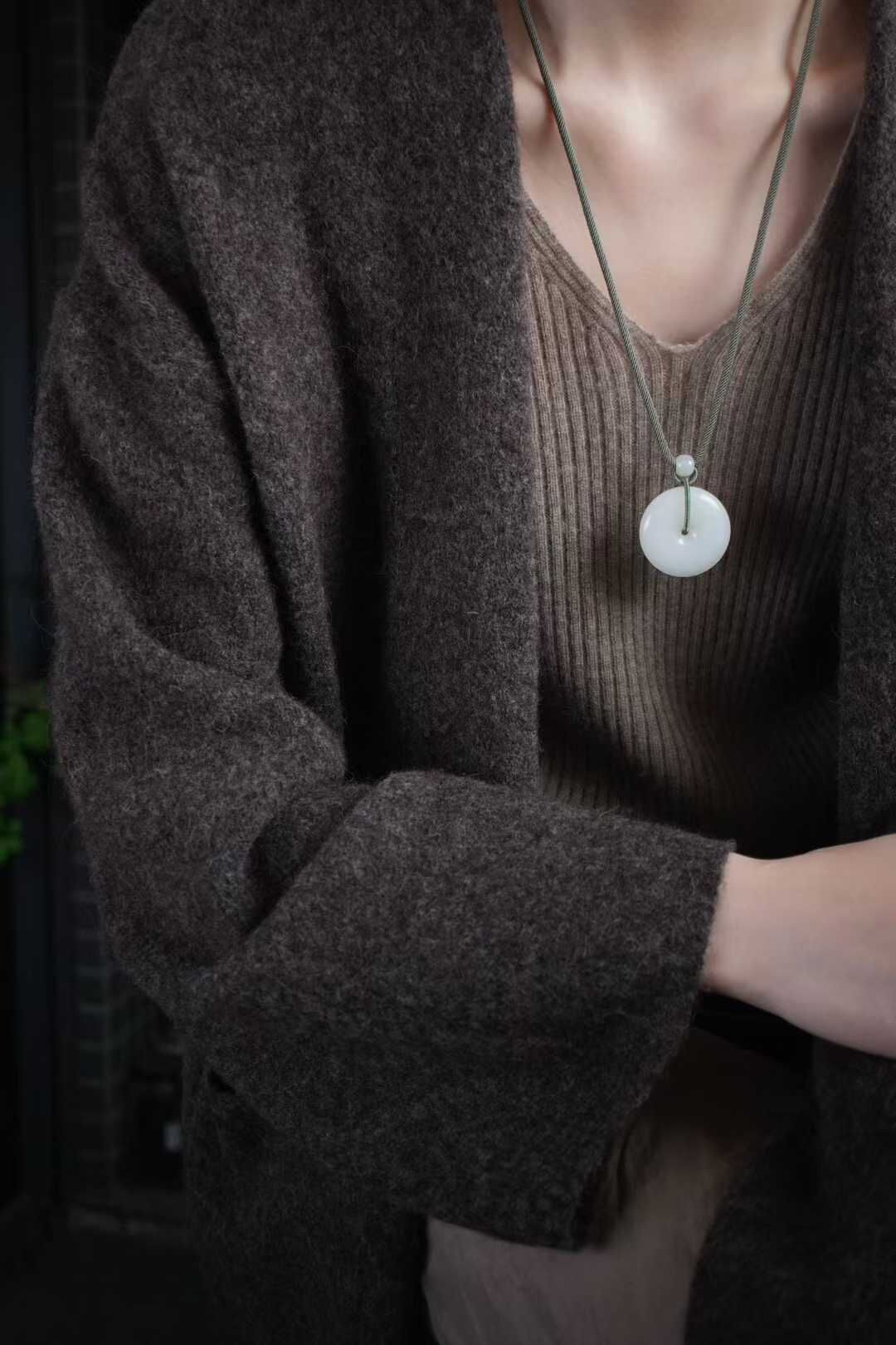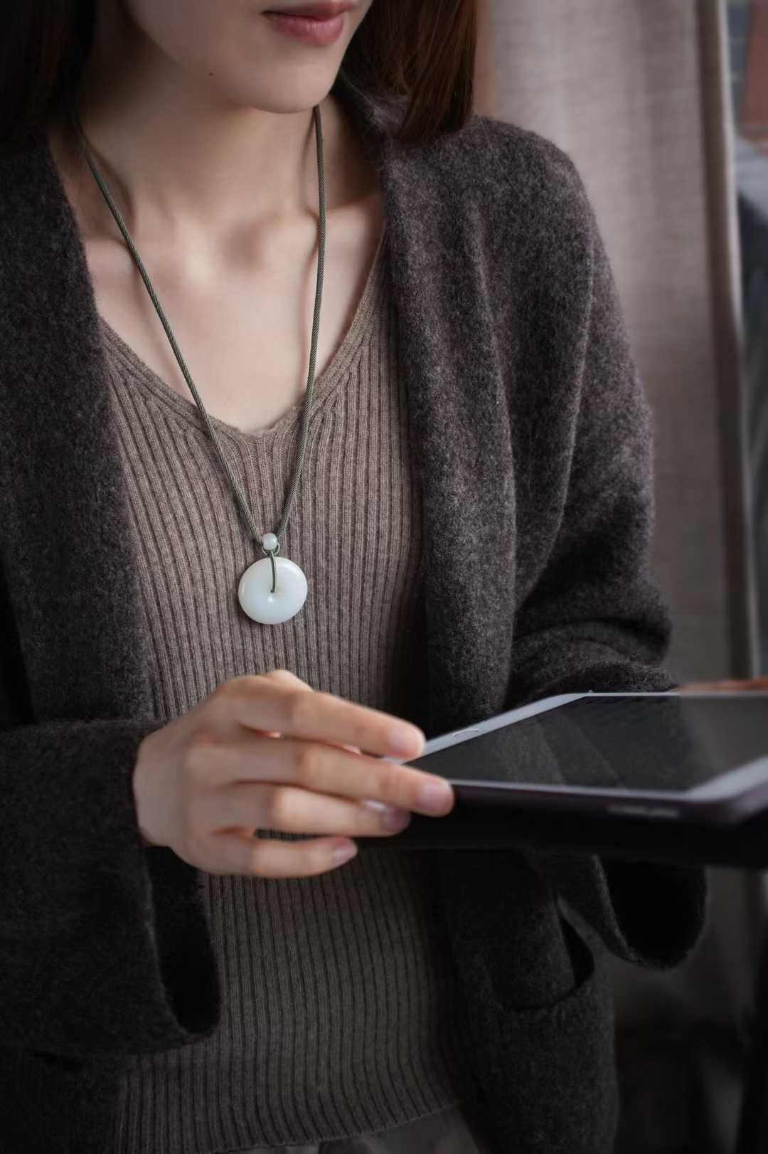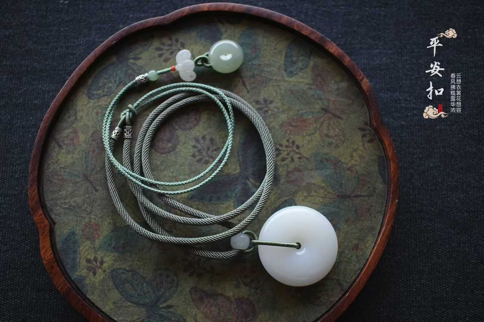 平安扣內圓外圓寓意平平安安,事事圓滿,自留送禮皆為心意之選。搭配純手工制作進口繩,點綴和田玉平安扣、白玉蝙蝠、白玉路路通等配飾,上身雅致大方。