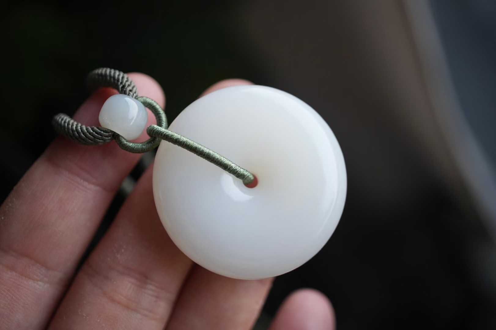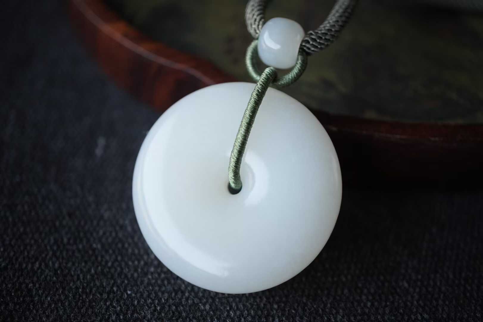 • 和田玉羊脂玉平安扣掛件 (34.6mm直徑),天然和田玉軟玉