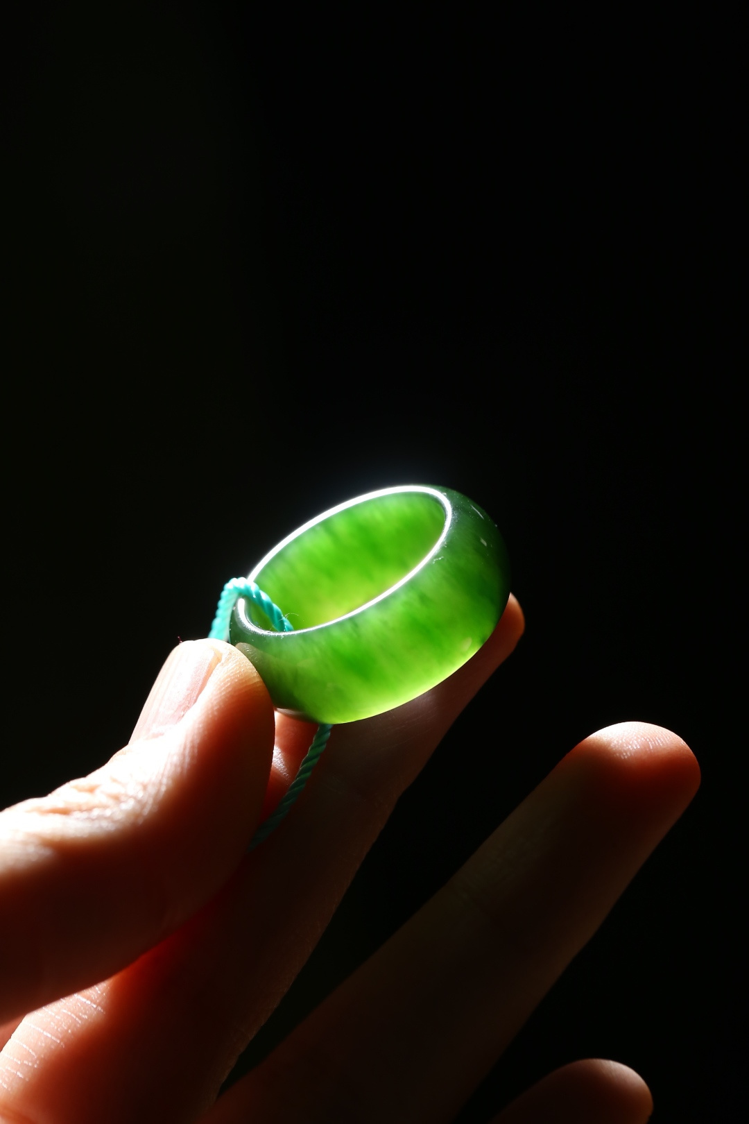 天然和田玉碧玉,玉質溫潤細膩,脂粉渾厚油性十足。巧妙設計,指尖雅,妙趣橫生。常戴指上撫摸把玩,招財納瑞,闢邪消災,樂趣無窮。
