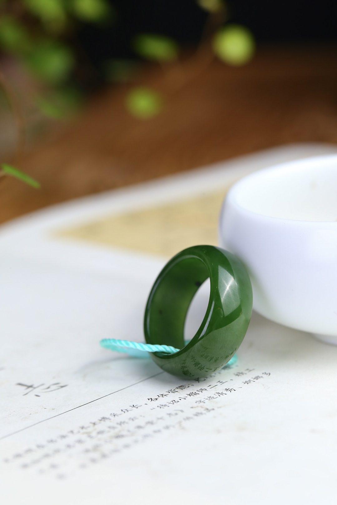 • 和田玉碧玉扳指 (內徑 20mm),天然和田玉軟玉