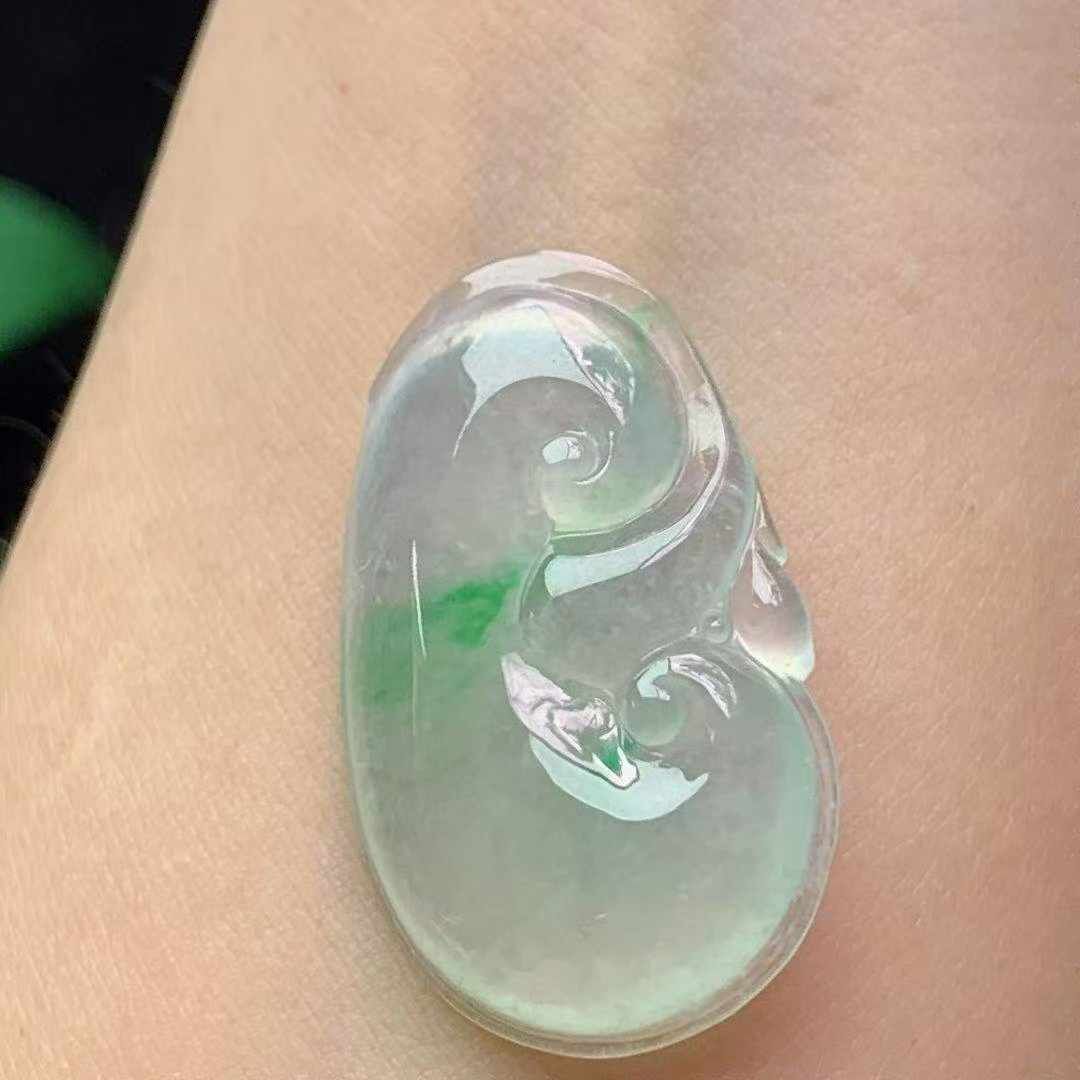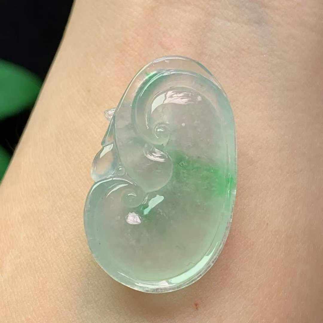 天然翡翠A玉,冰種飄綠起光飽滿。