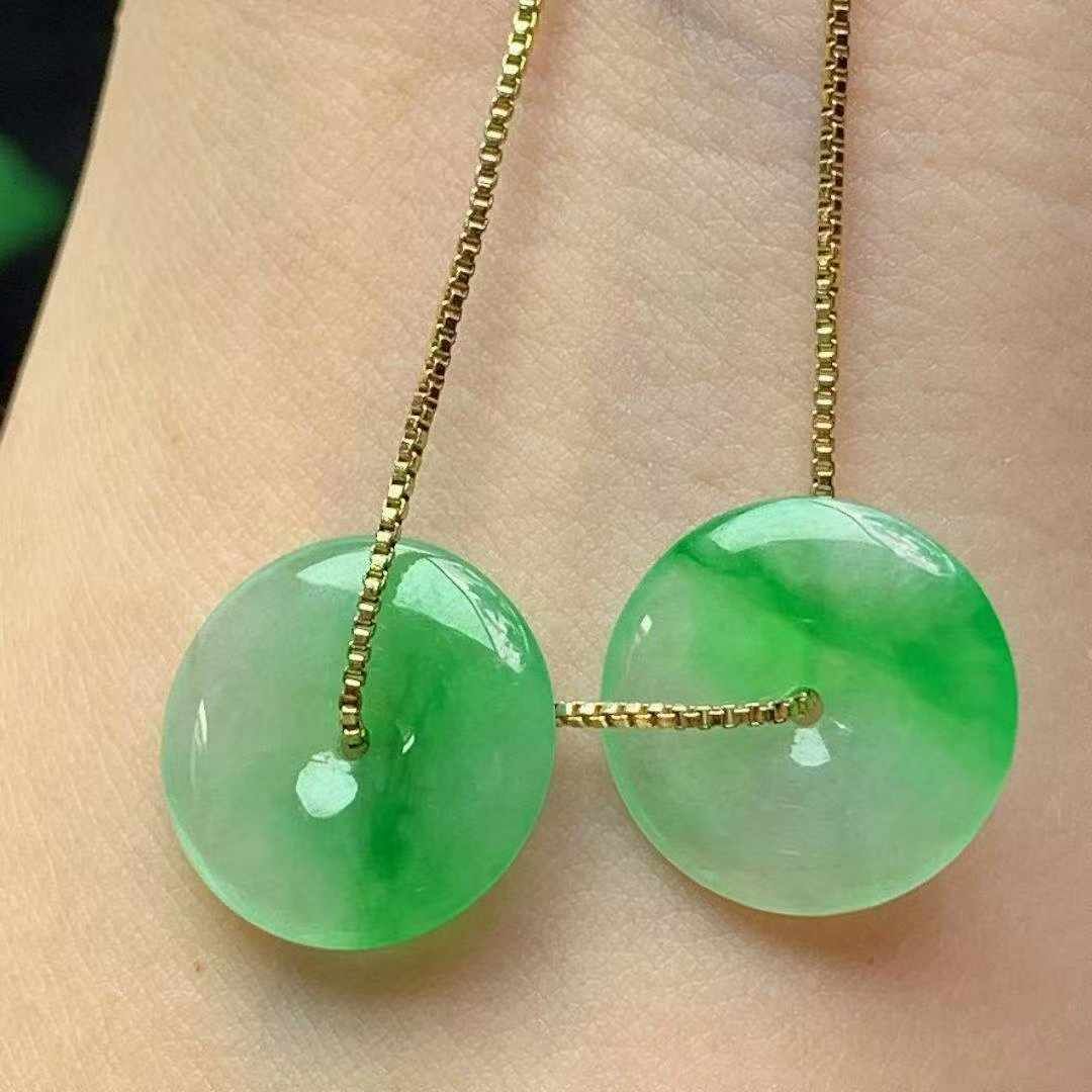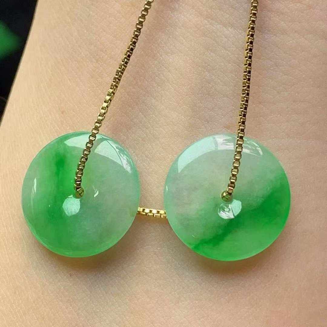 • 翡翠冰種飄綠平安扣一對 (15.2mm直徑),天然翡翠A玉, 緬甸玉, Jade, Jadeite