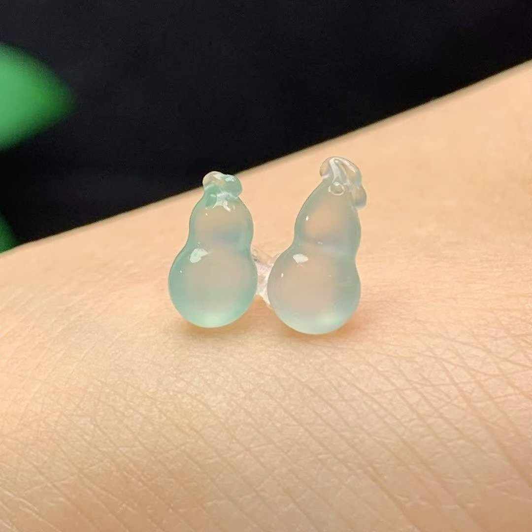 • 翡翠冰種葫蘆一對,天然翡翠A玉, 緬甸玉, Jade, Jadeite