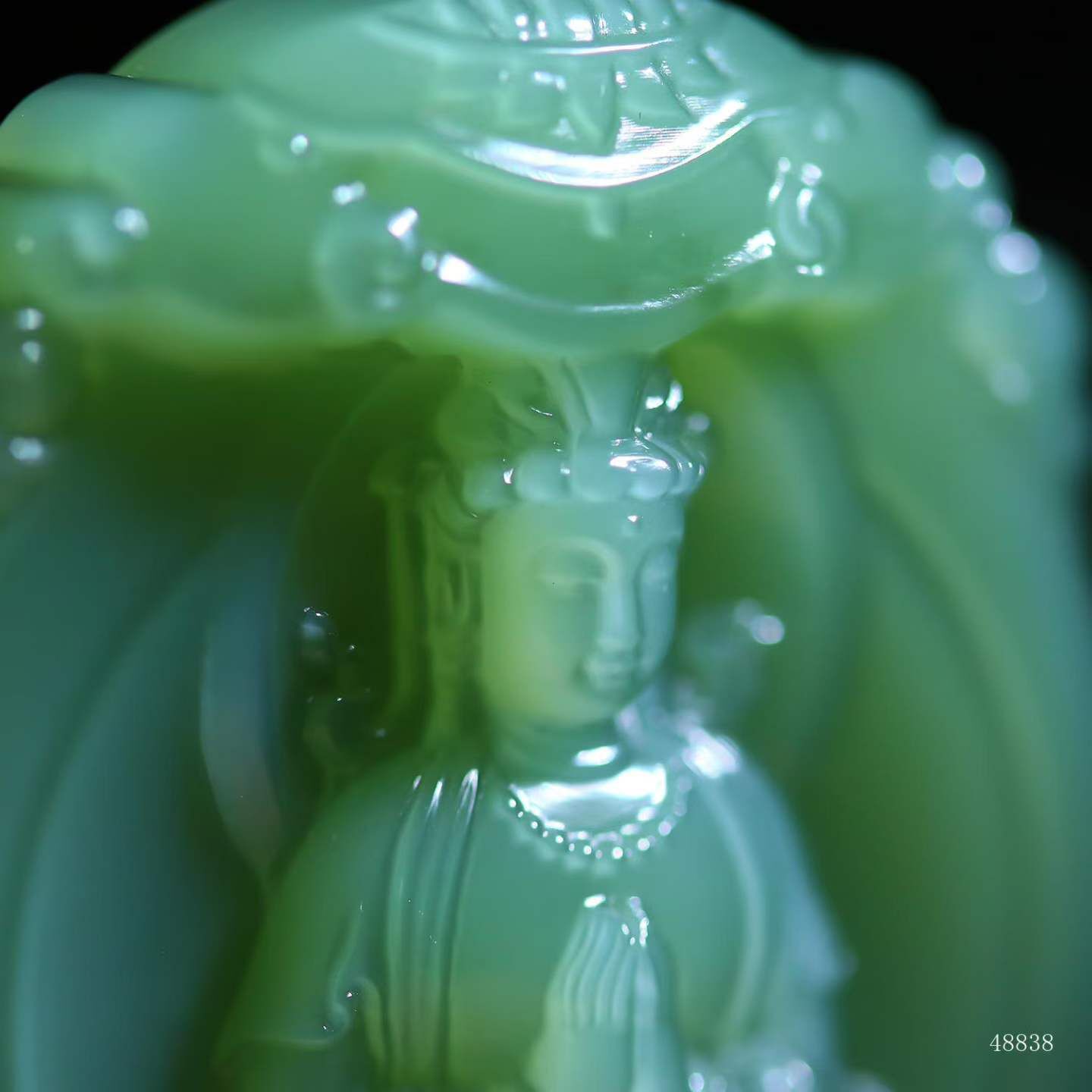 • 和田玉觀音·蓮心靜渡,天然和田玉軟玉