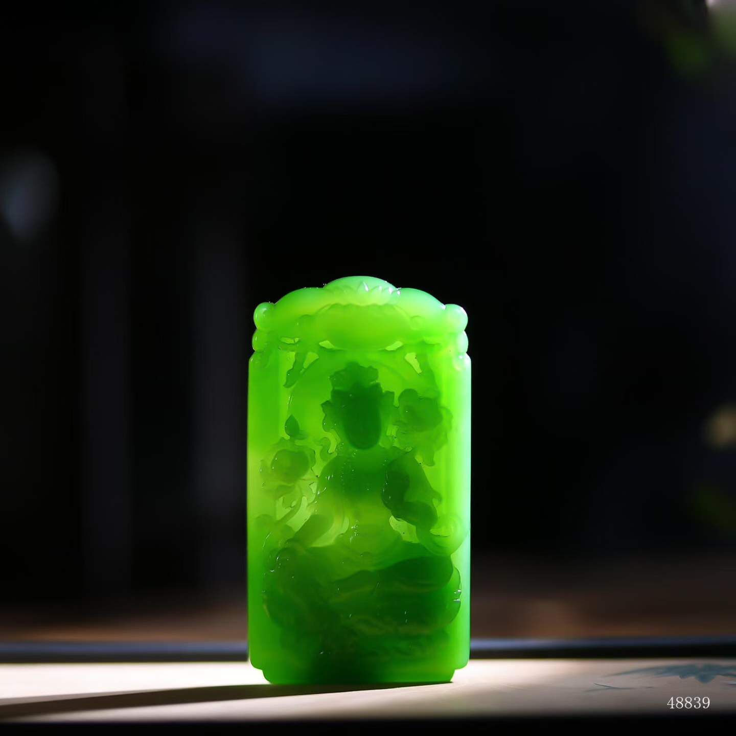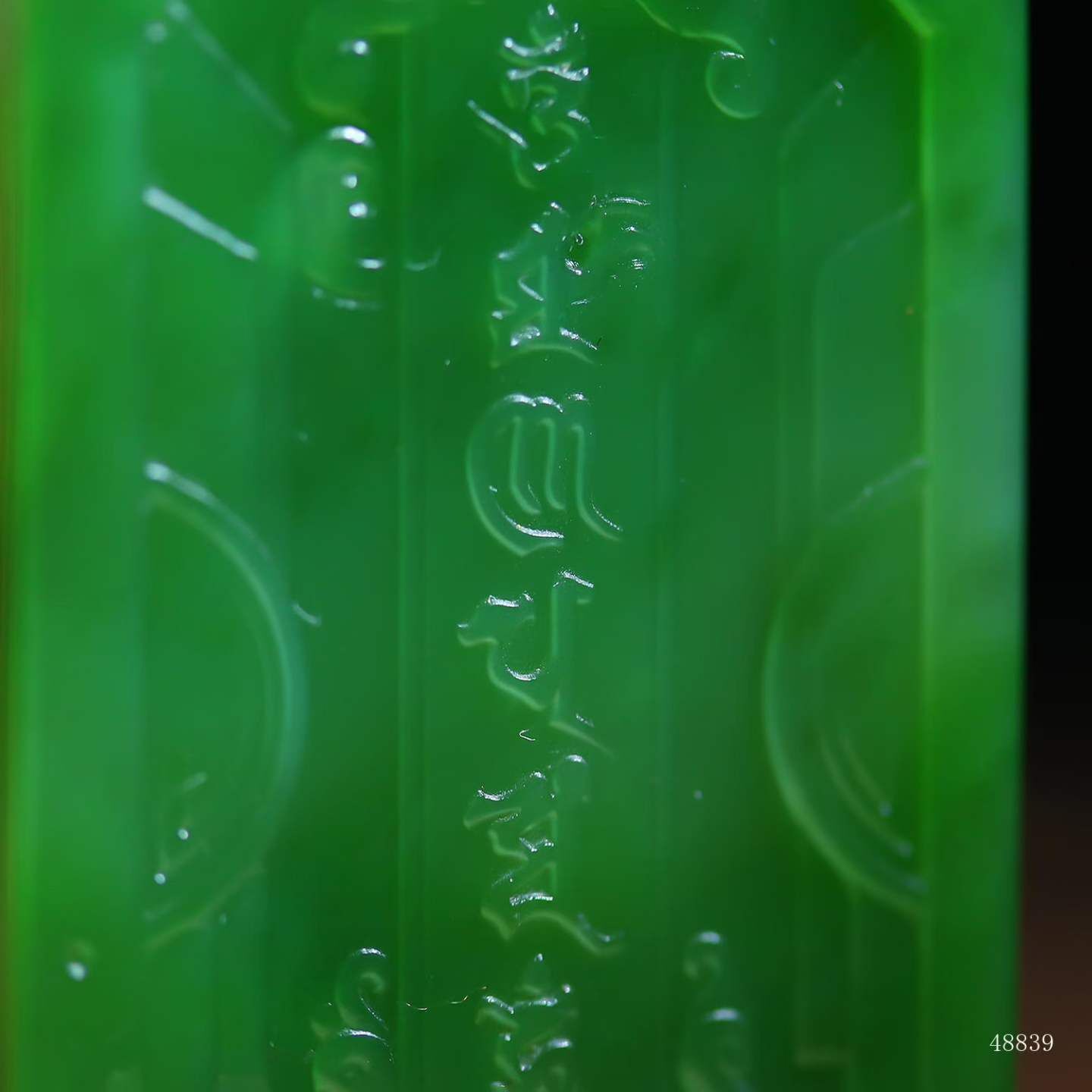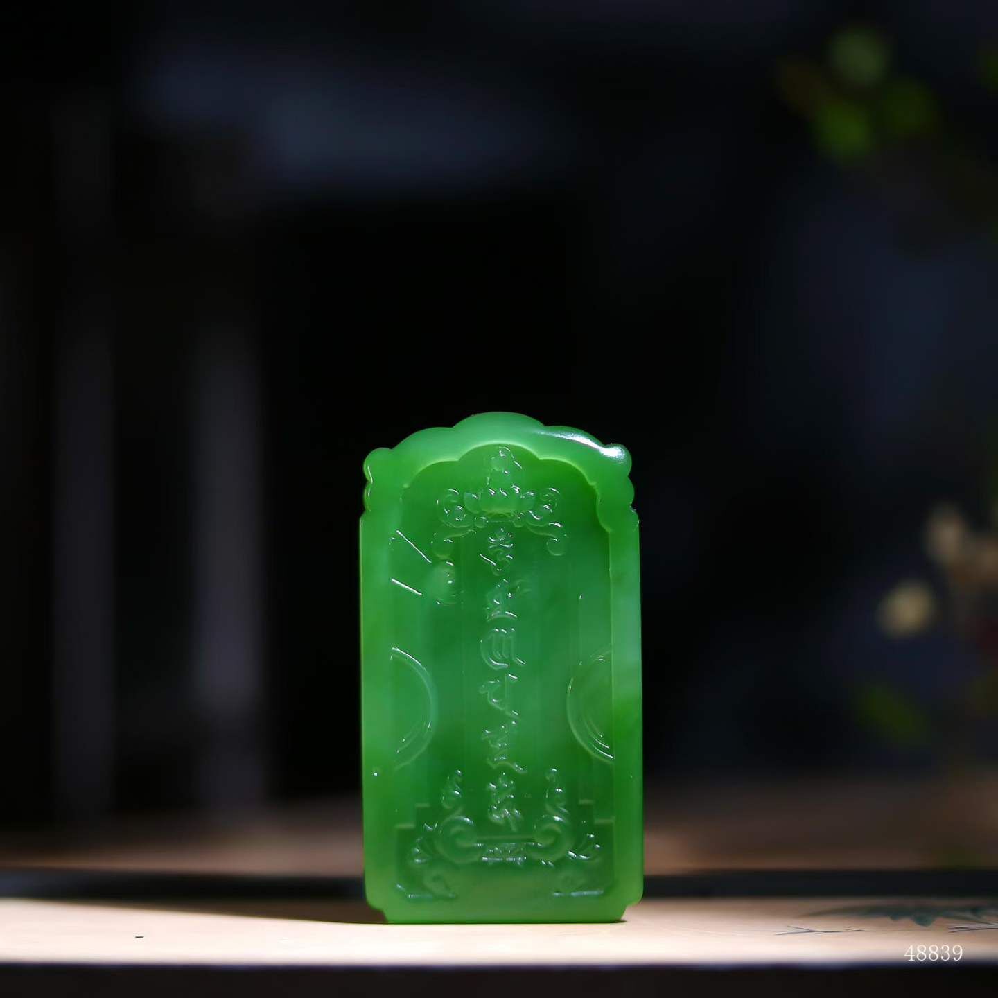 天然和田玉,碧玉蘋果綠方牌,碧色鮮若初陽染透青梅,脂光冰潤似凝凍春潭。