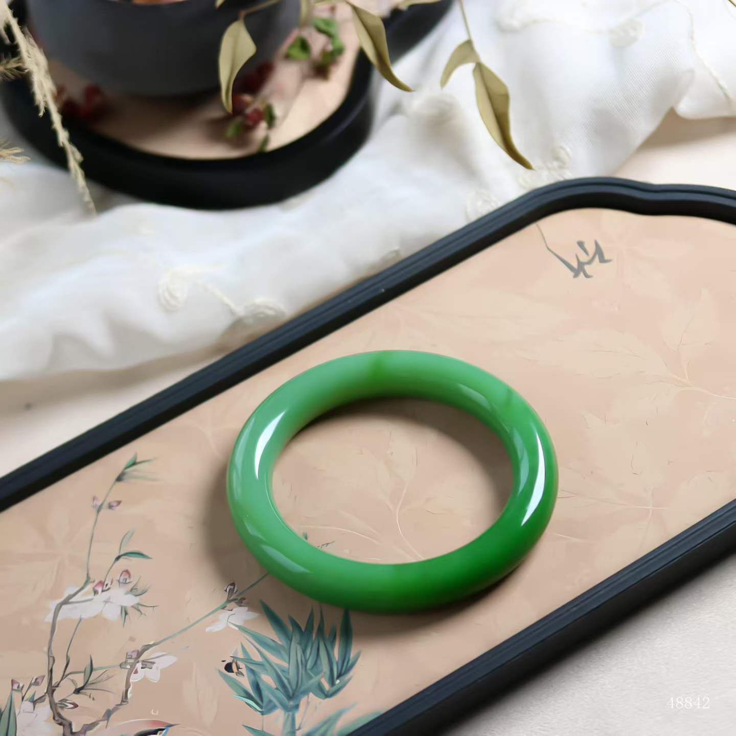 414159 56mm和田玉碧玉圓條手鐲 (54-56)