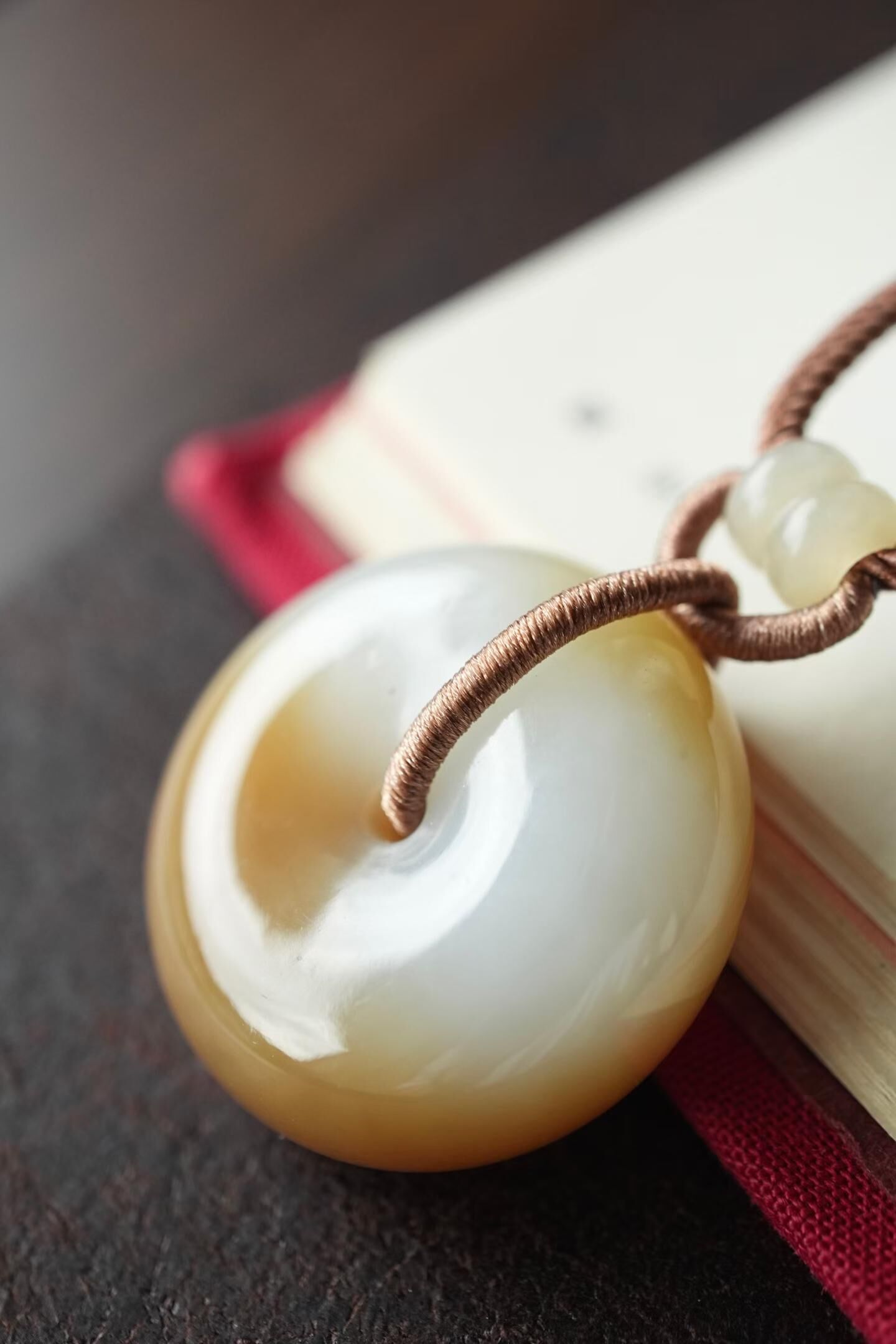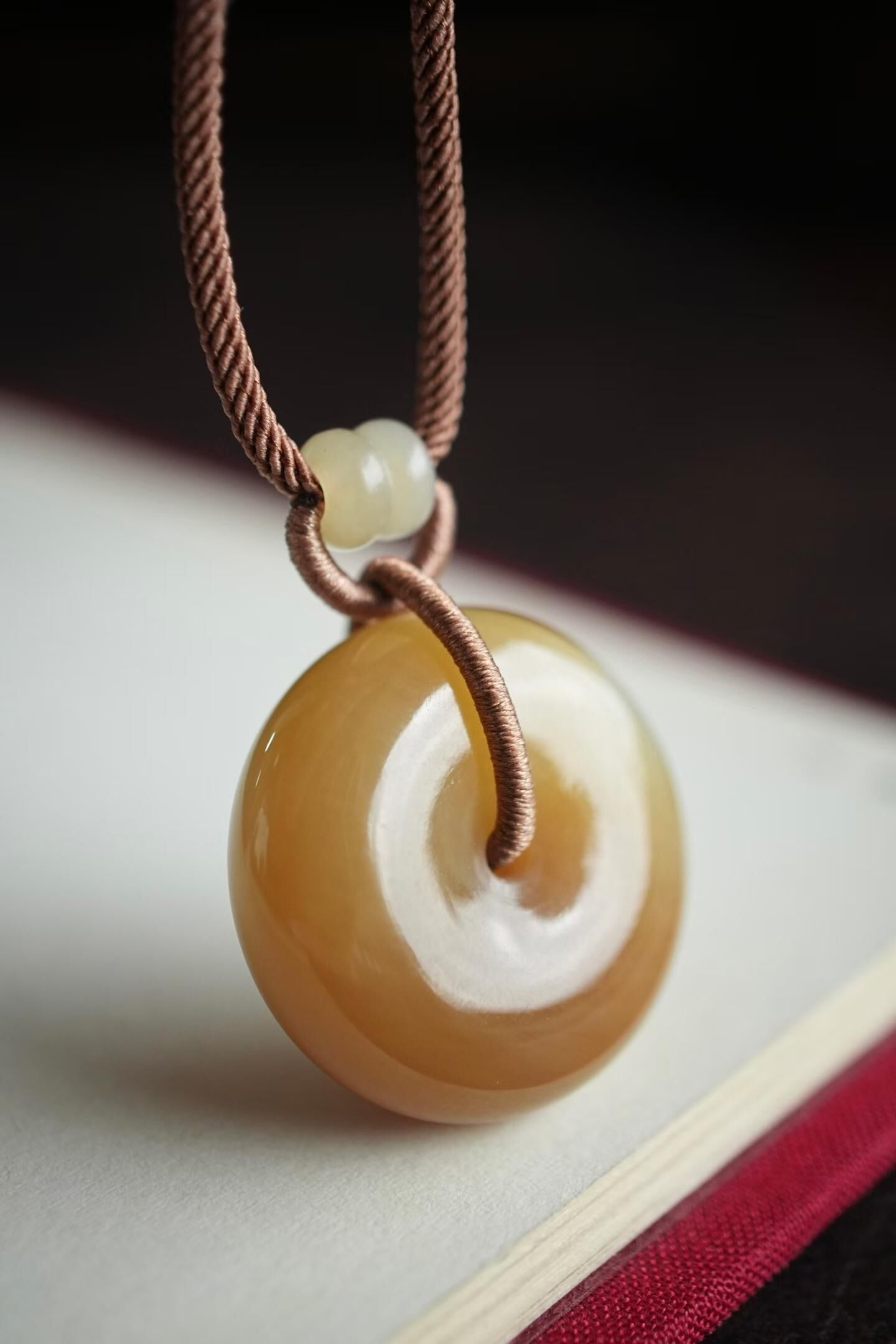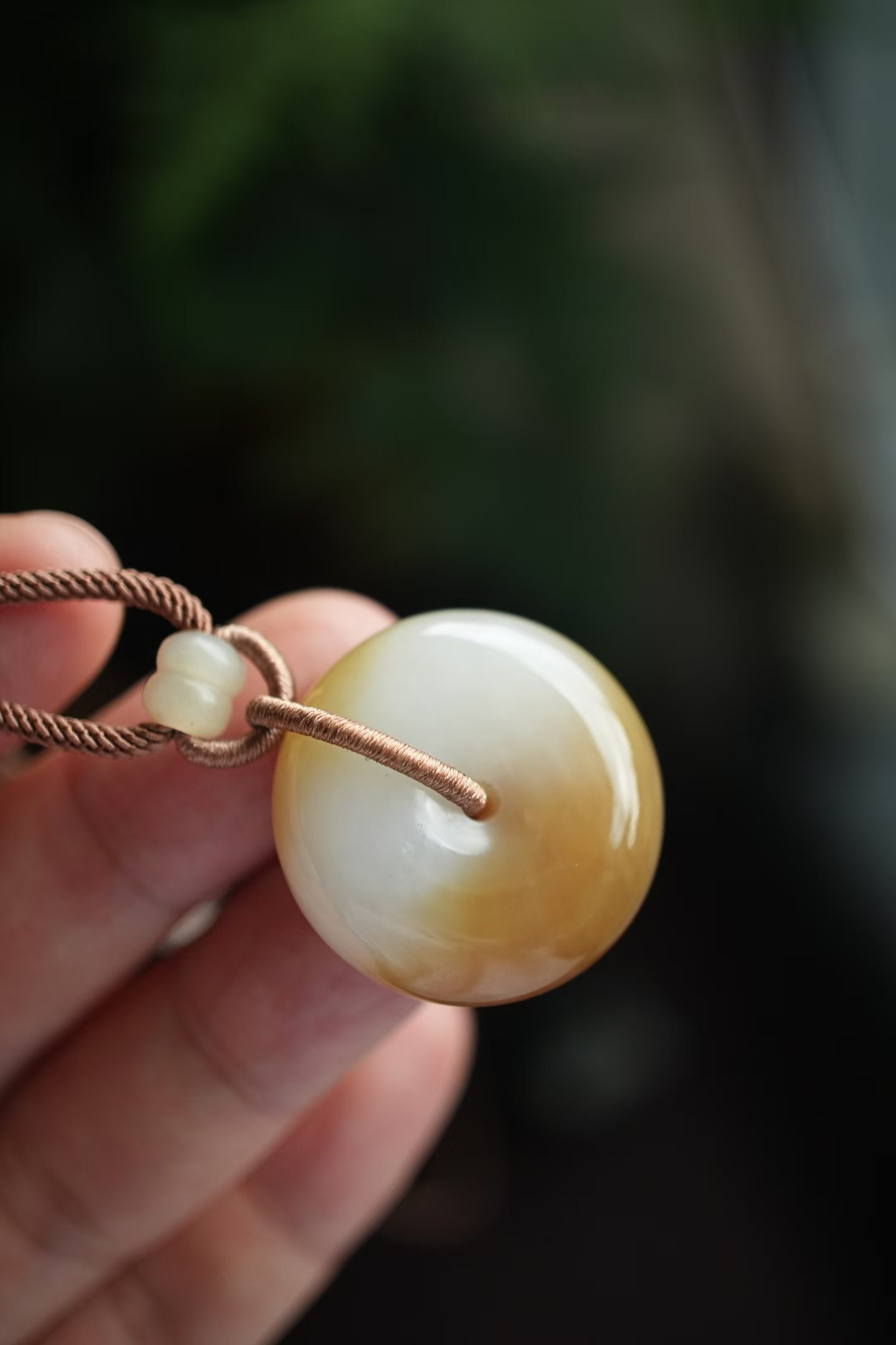 414447 和田玉老礦糖白平安扣掛件 (26mm直徑)